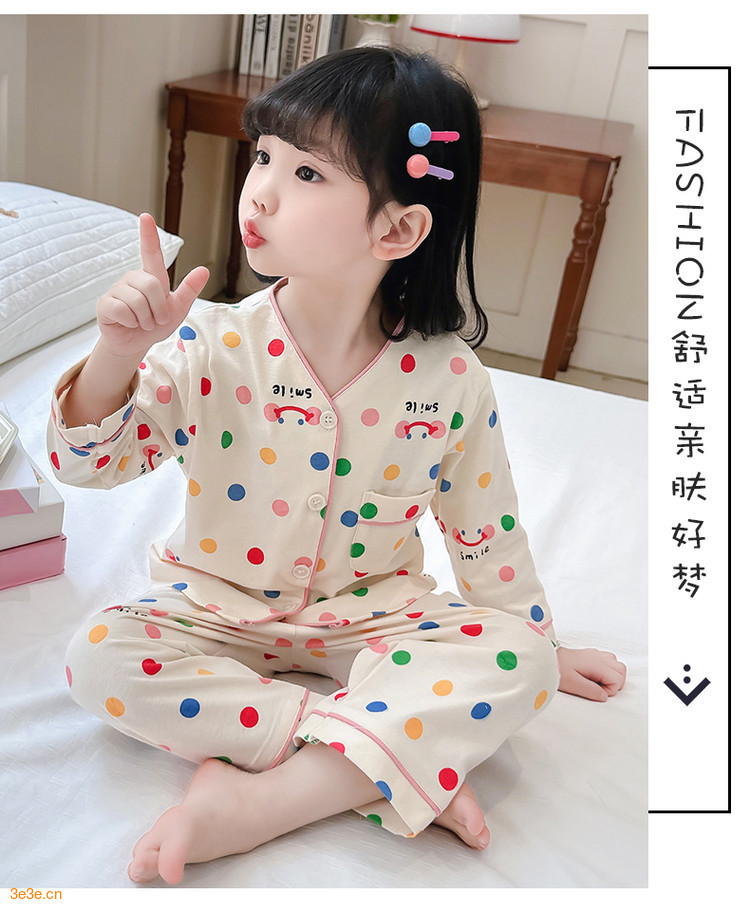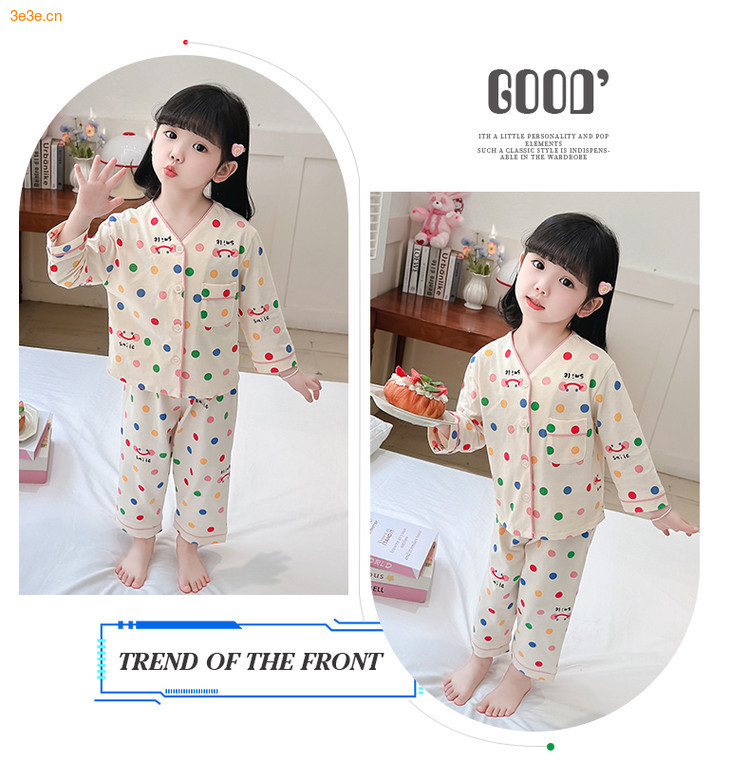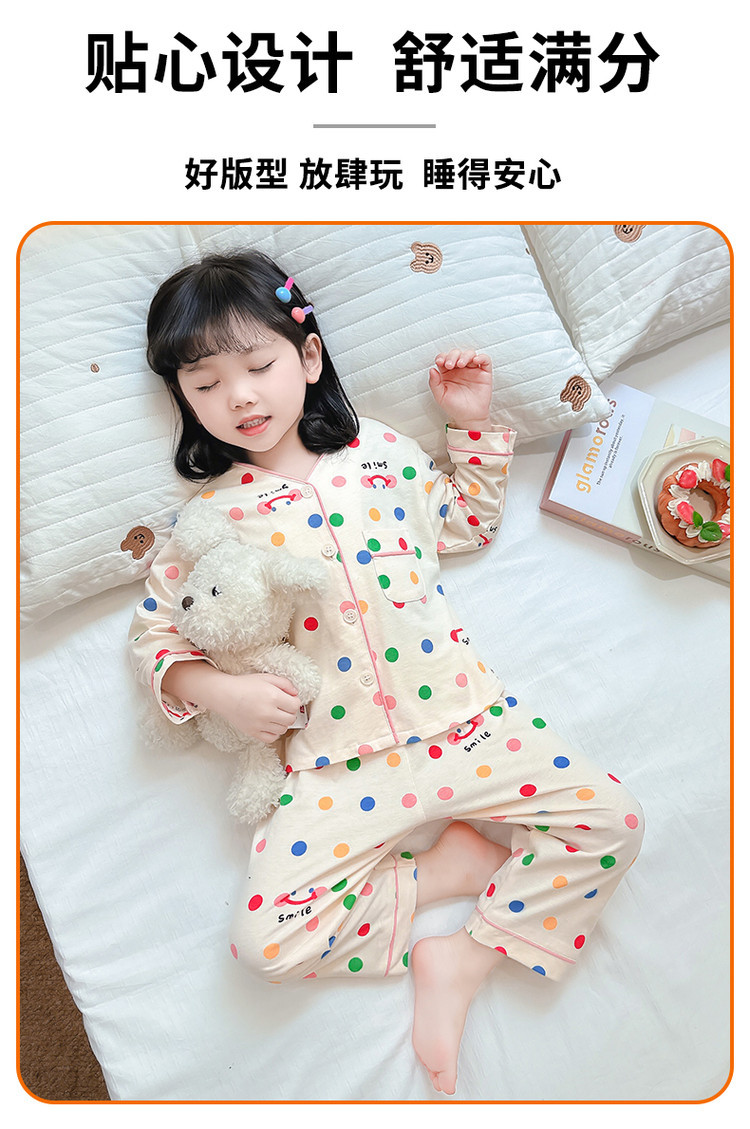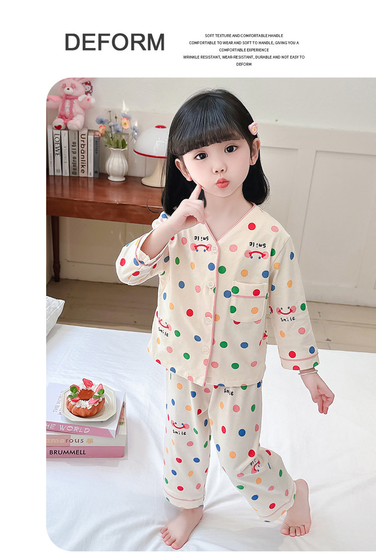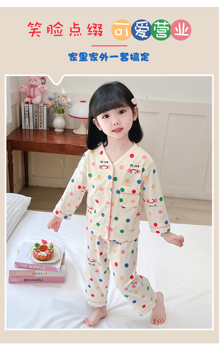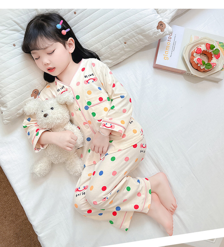 2025 어린이 잠옷 봄과 가을 다채로운 도트 아기 소녀 카디건 정장 가을 긴팔 에어컨 가정 의류스토어 가기
