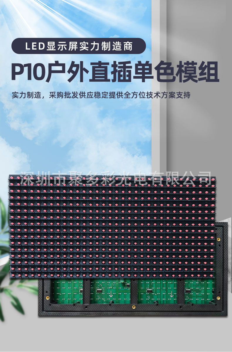 야외 방수 LED 디스플레이 모듈 P10 단색 직접 삽입 유닛 보드 야외 광고 화면 도어 헤드 롤링 스크린