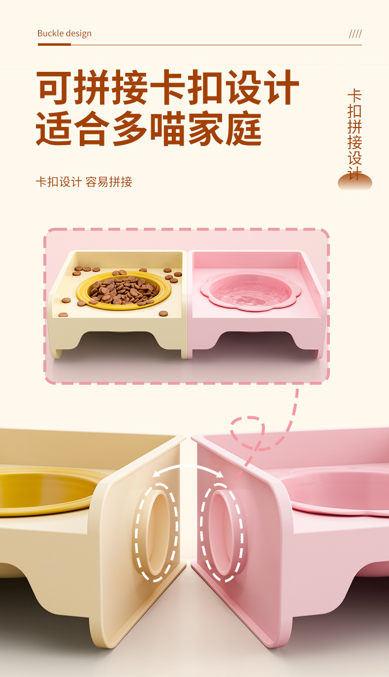 고양이 그릇, 세라믹 애완동물 그릇, 강아지 그릇, 넘어짐 방지, 고급스러운 고양이 그릇, 경추 보호 고양이 그릇, 이중 그릇, 일체형 고양이 그릇 홀더