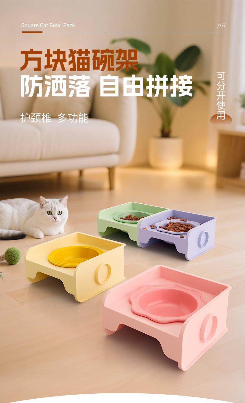 고양이 그릇, 세라믹 애완동물 그릇, 강아지 그릇, 넘어짐 방지, 고급스러운 고양이 그릇, 경추 보호 고양이 그릇, 이중 그릇, 일체형 고양이 그릇 홀더스토어 가기