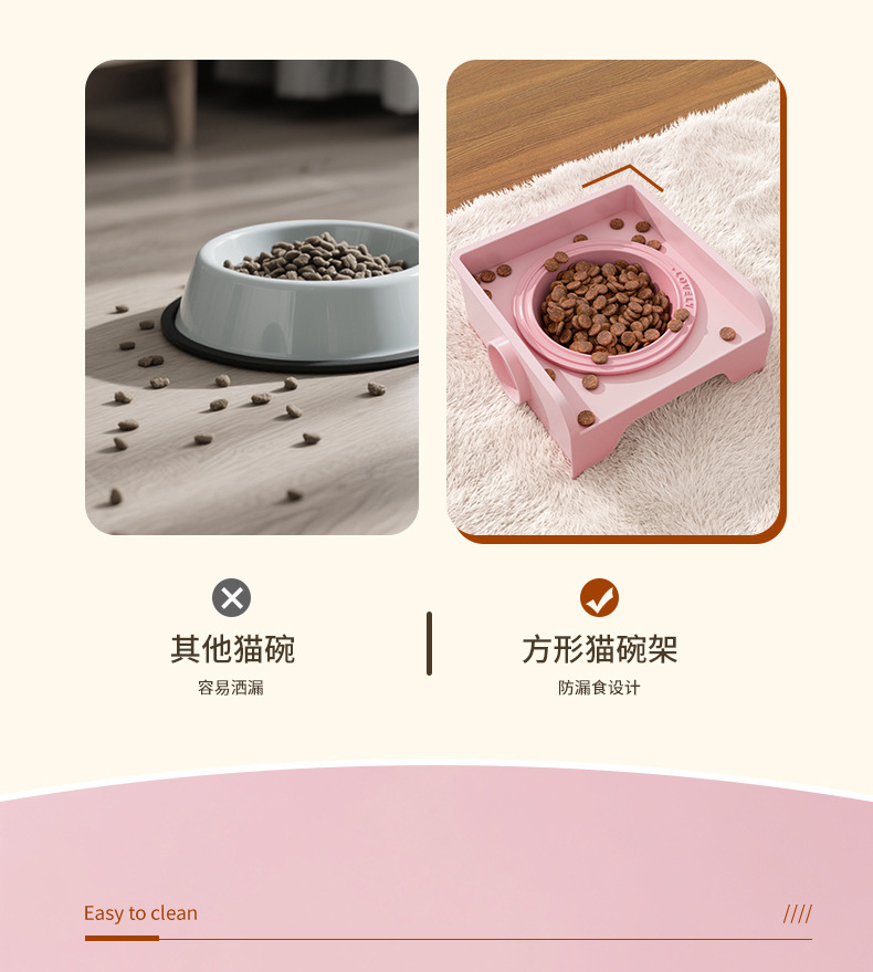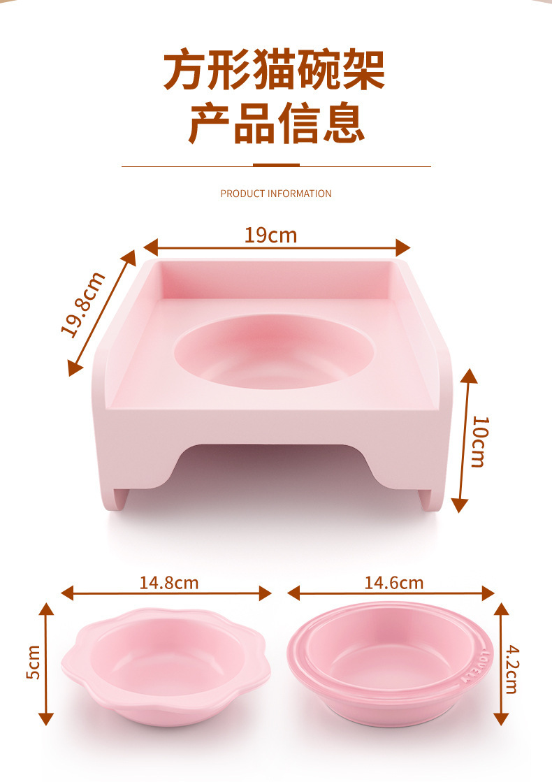 • 사각 고양이 밥그릇걸이(핑크)