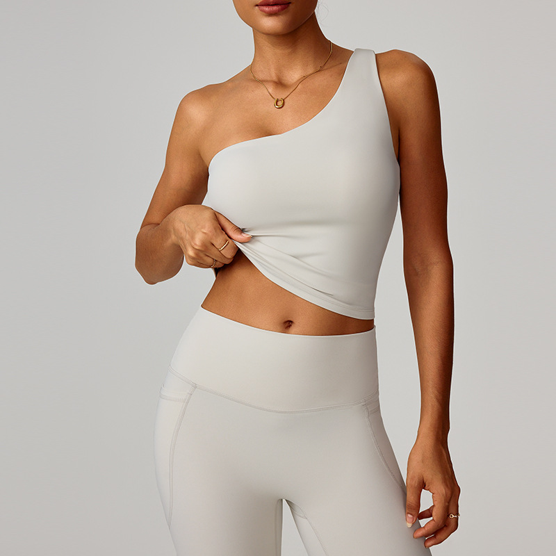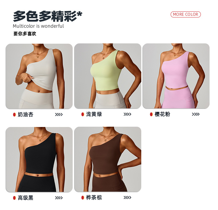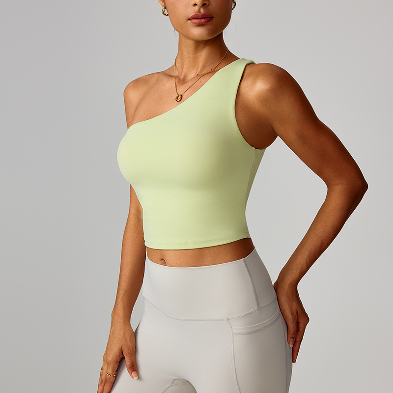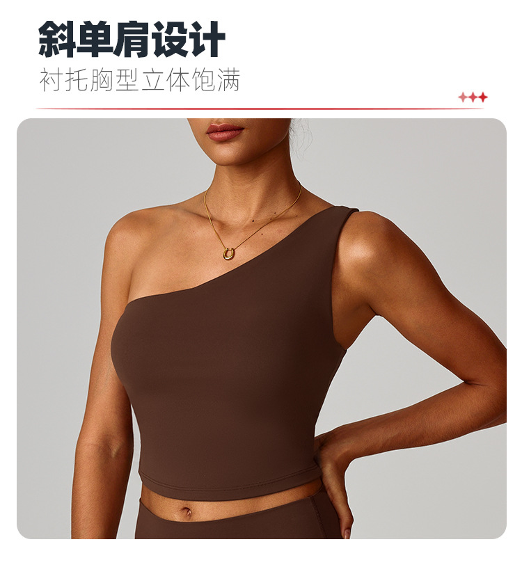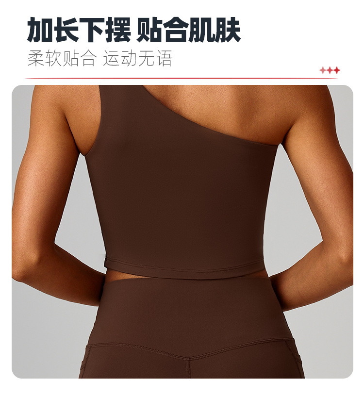 跨境爆款云感斜单肩收腰瑜伽背心女速干运动塑形内衣跑步健身8408
