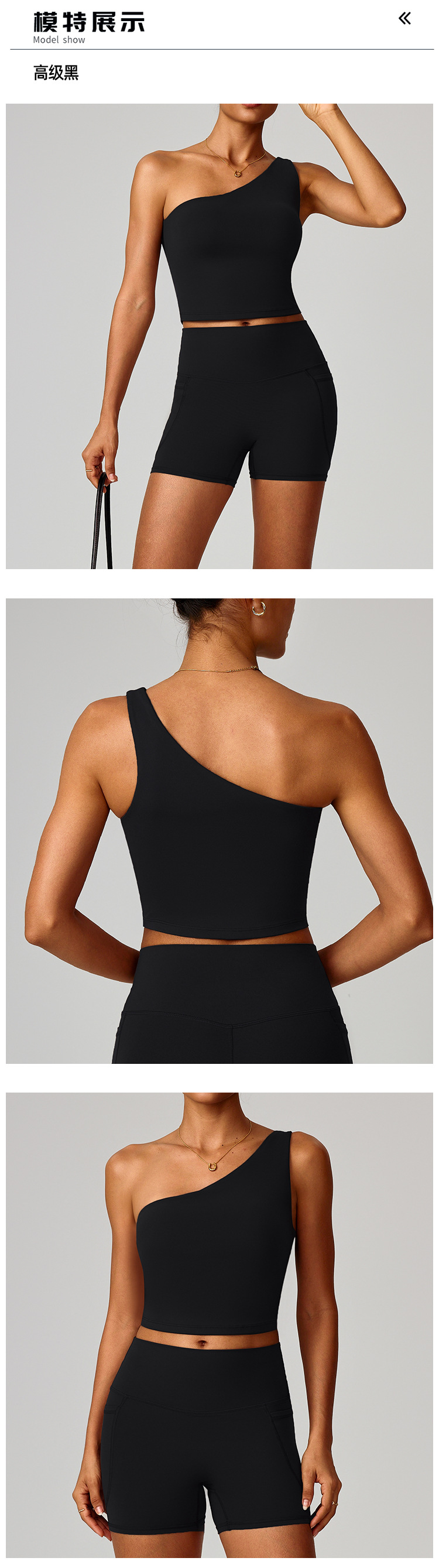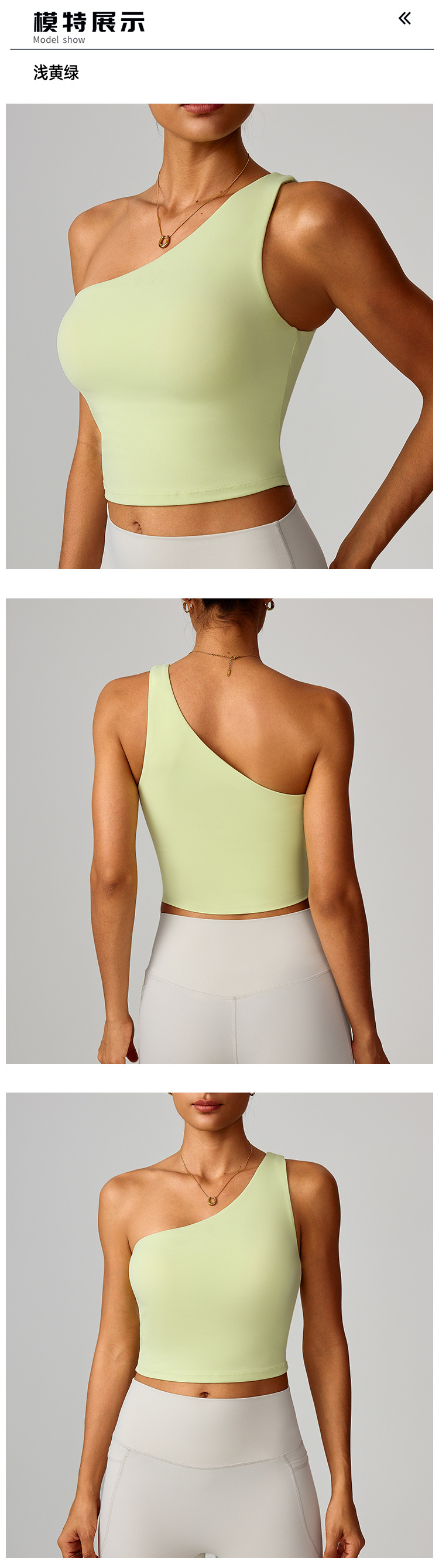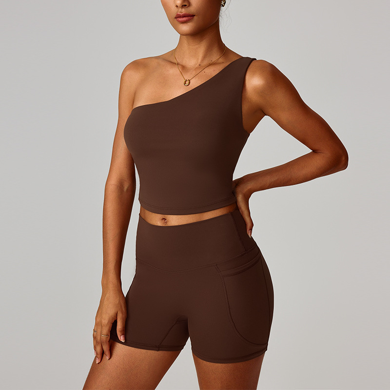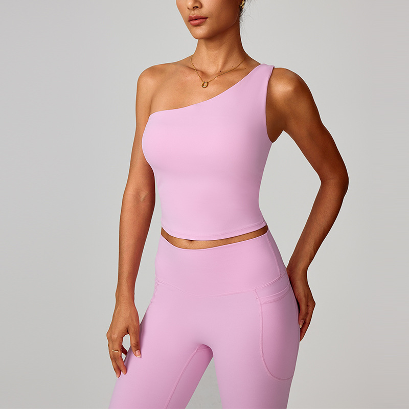跨境爆款云感斜单肩收腰瑜伽背心女速干运动塑形内衣跑步健身8408