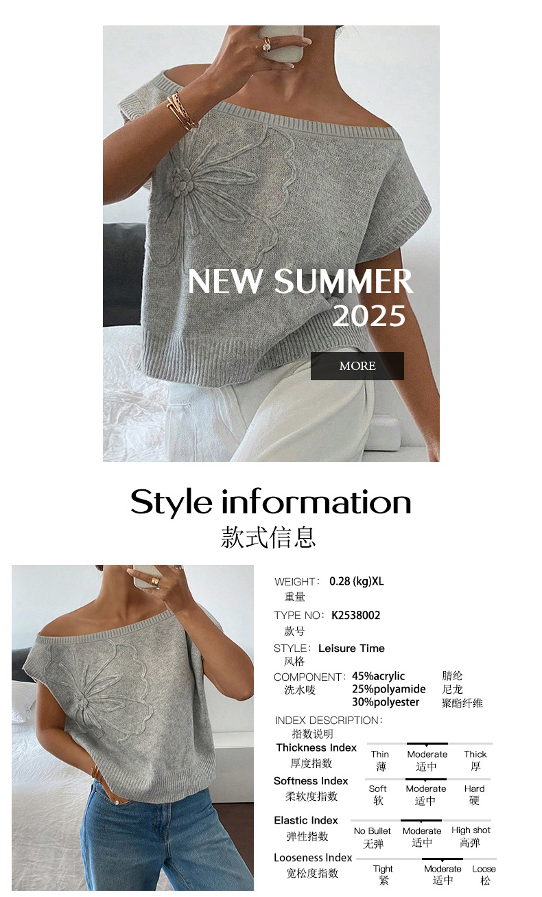 Diyun 국경 간 유럽과 미국 캐주얼 휴가 여름 단색 반팔 스웨터 여성 2025 가을, 겨울 Amazon 독립 스테이션
