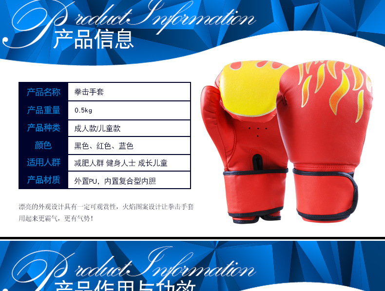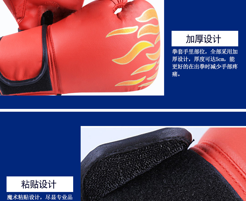 拳击手套工厂批发成人儿童训练拳套搏击散打pu火焰图案健身拳套스토어 가기