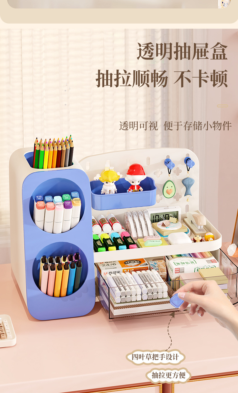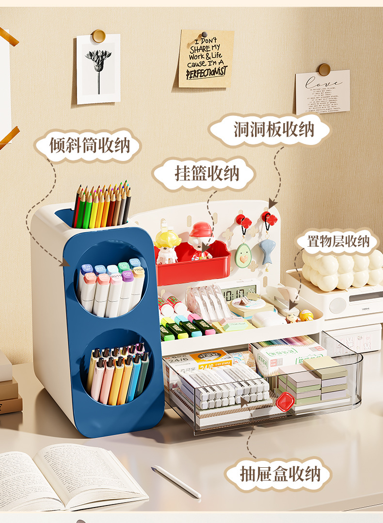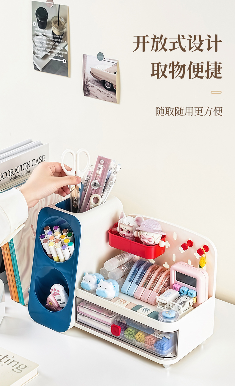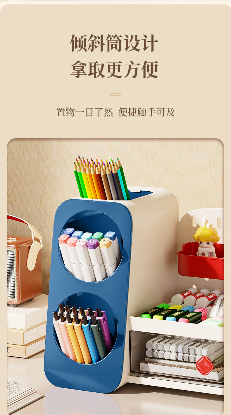 데스크탑 수납함, 책상 문구류 수납함, 대용량 서랍, 경사형 펜홀더, 사무실 워크스테이션 정리함