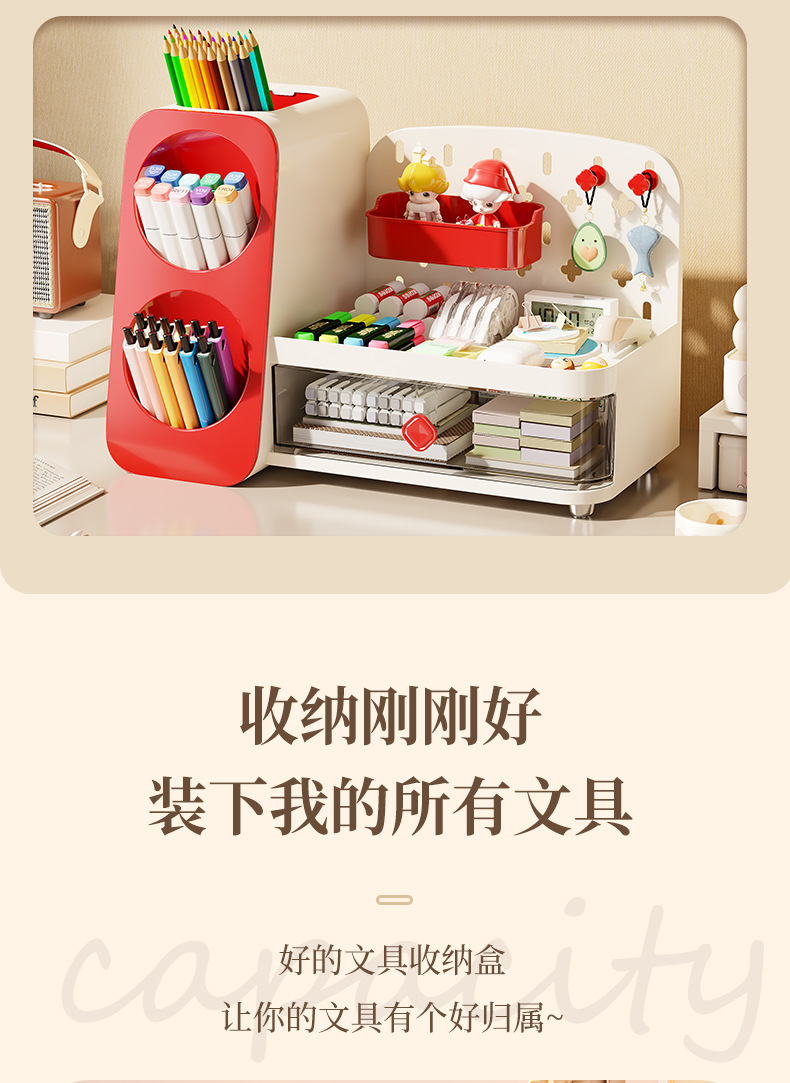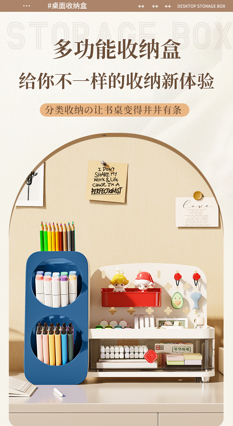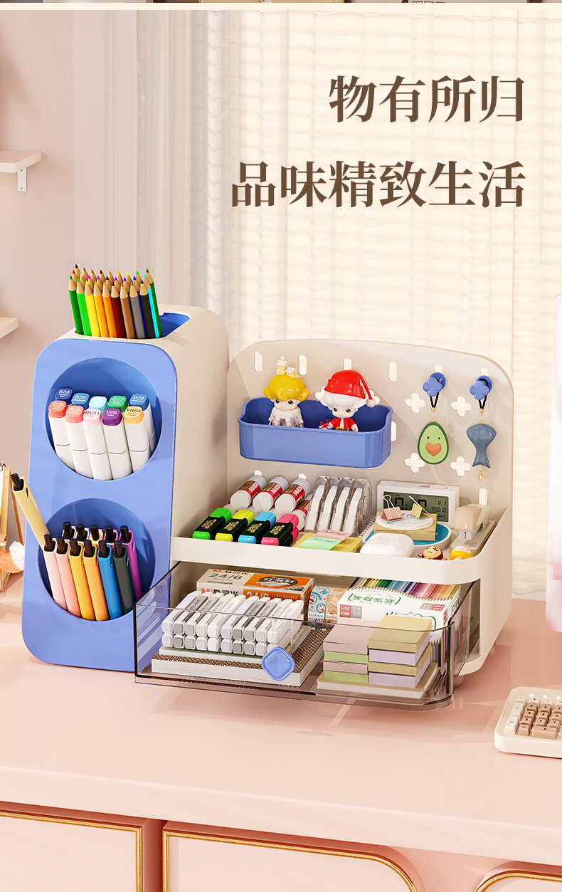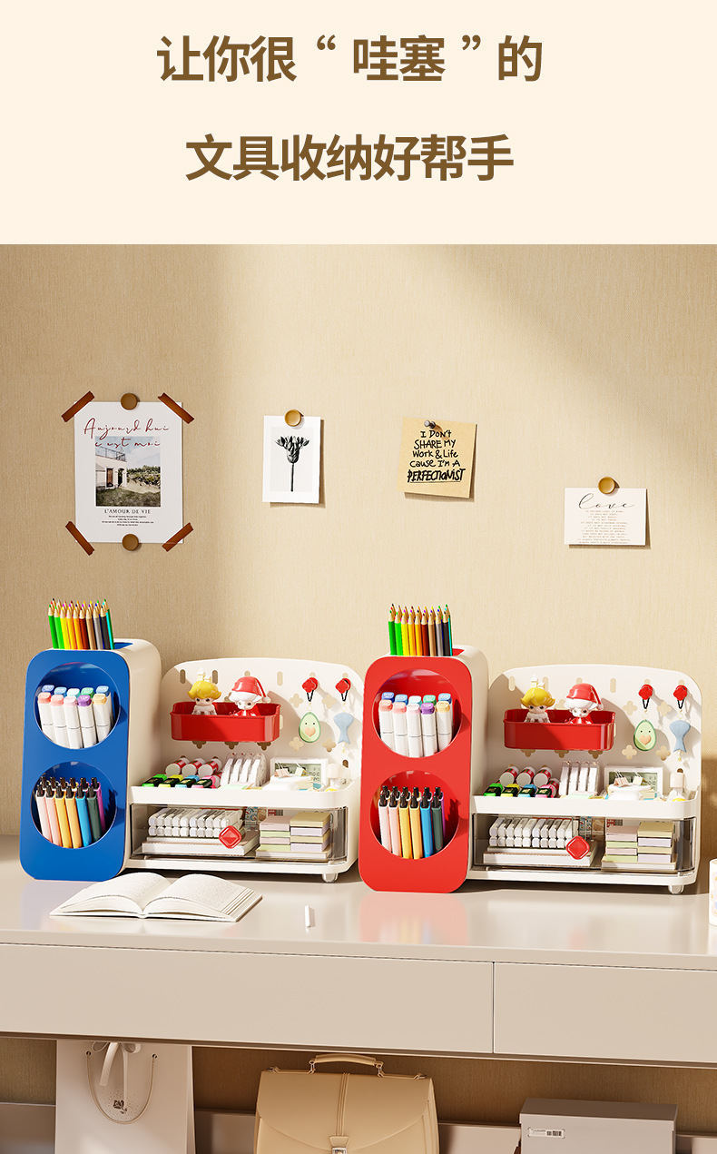 데스크탑 수납함, 책상 문구류 수납함, 대용량 서랍, 경사형 펜홀더, 사무실 워크스테이션 정리함