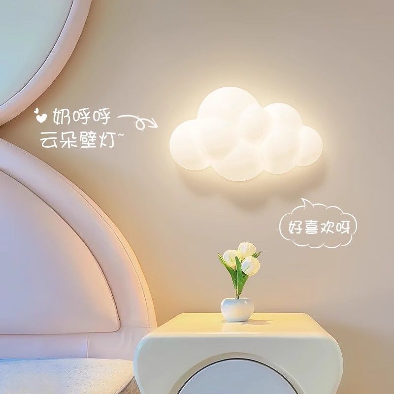 구름 벽 램프 크림 스타일 귀엽고 따뜻한 어린이 방 복도 머리맡 벽걸이 형 전체 스펙트럼 LED 눈 보호 램프스토어 가기