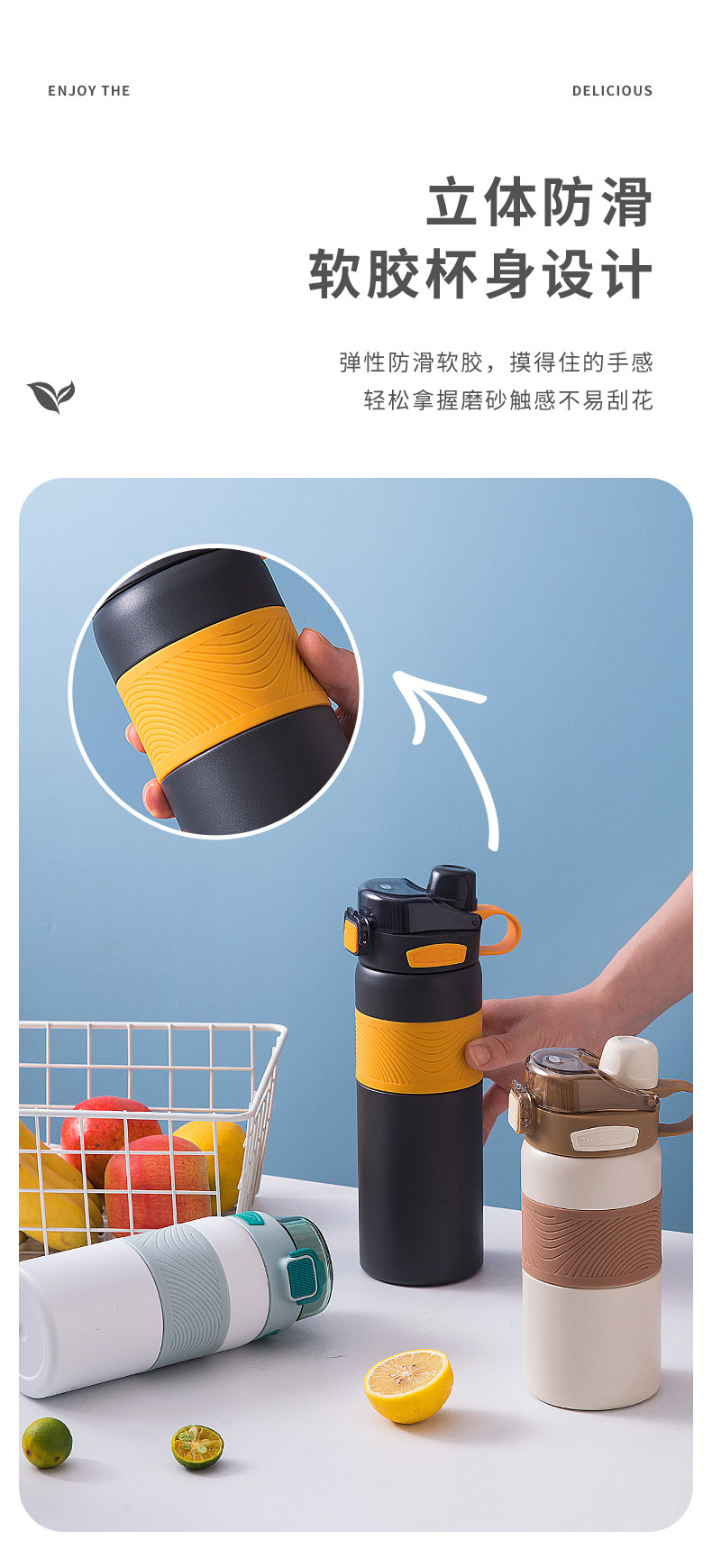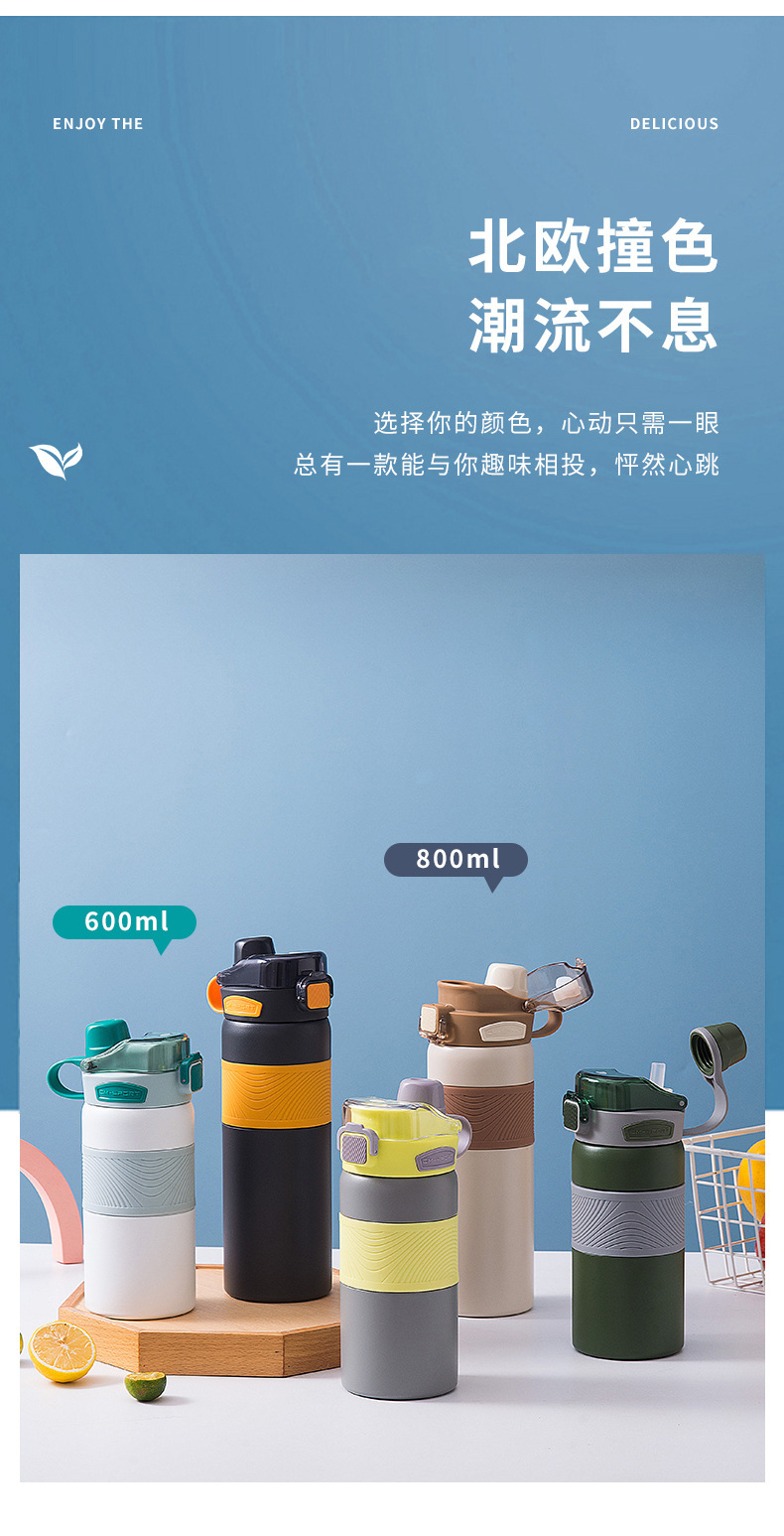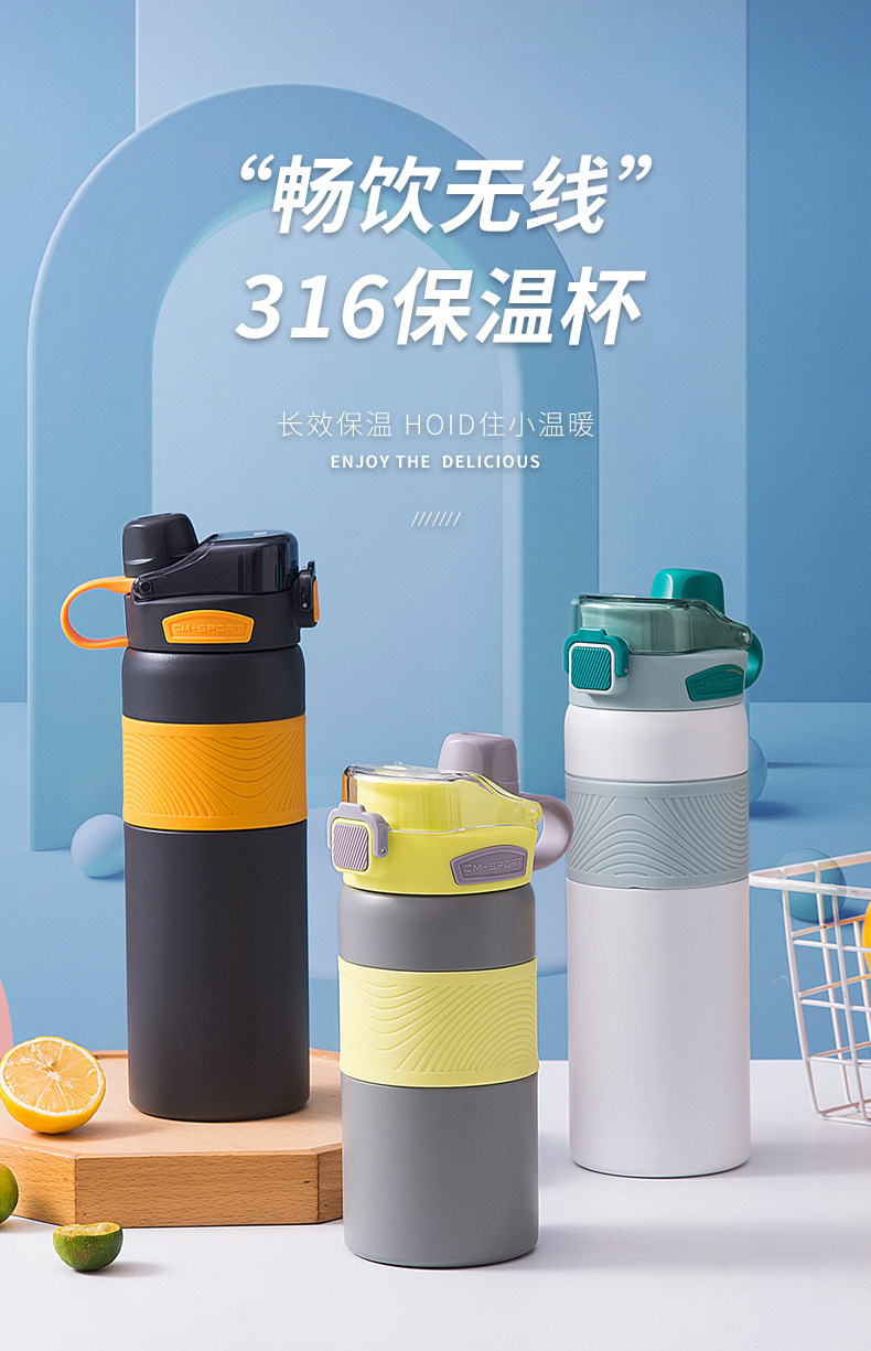 新款大容量316不锈钢保温杯手提便携登山运动水壶时尚双饮弹跳杯