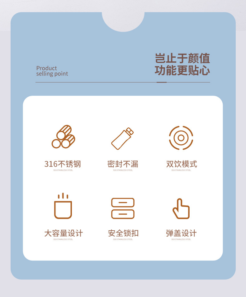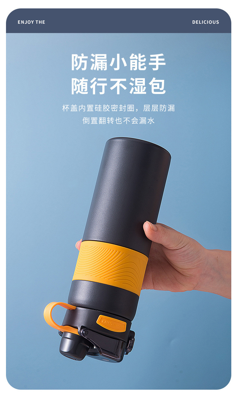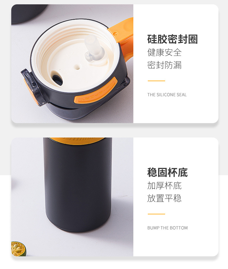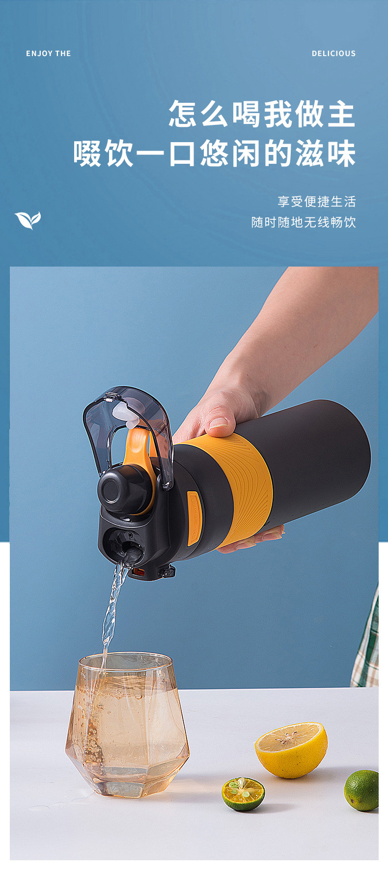 新款大容量316不锈钢保温杯手提便携登山运动水壶时尚双饮弹跳杯