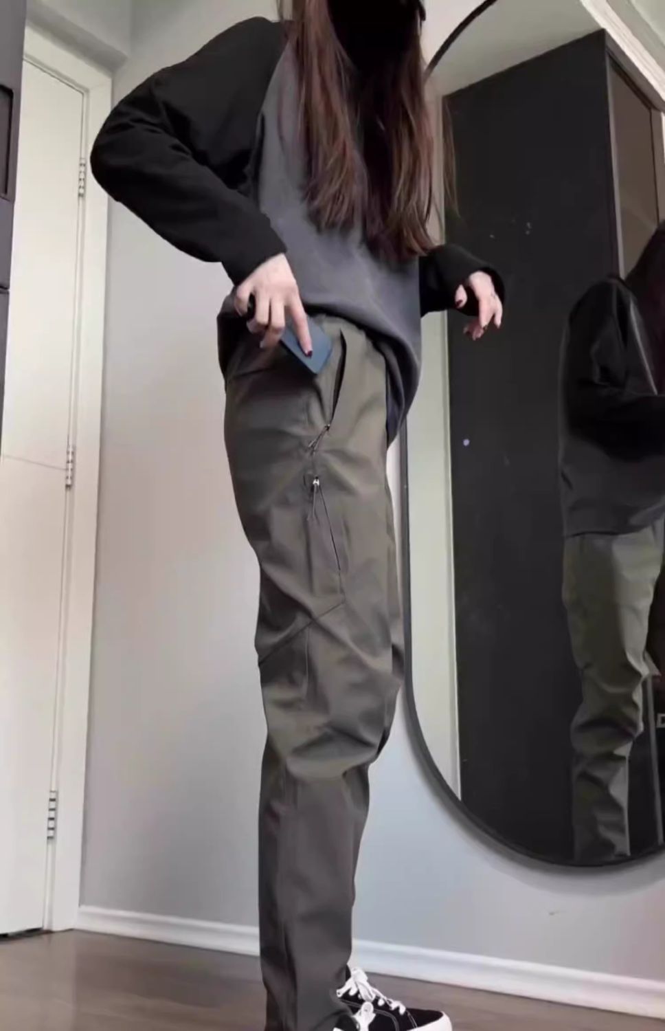 포켓 지퍼 레이스 업 바지 방수 및 방풍 봄, 가을 남성 야외 등산 스포츠 아메리칸 바이브 기능성 작업복스토어 가기