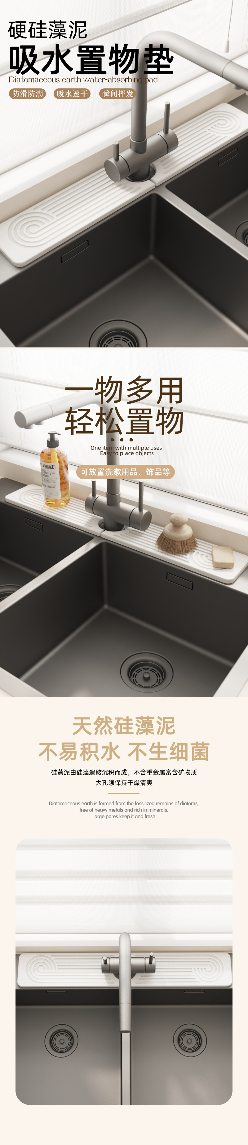 크로스보더 규조토 하드매트 주방 조리대 배수매트 욕실 세면대 수납선반 방습 흡수매트 맞춤제작