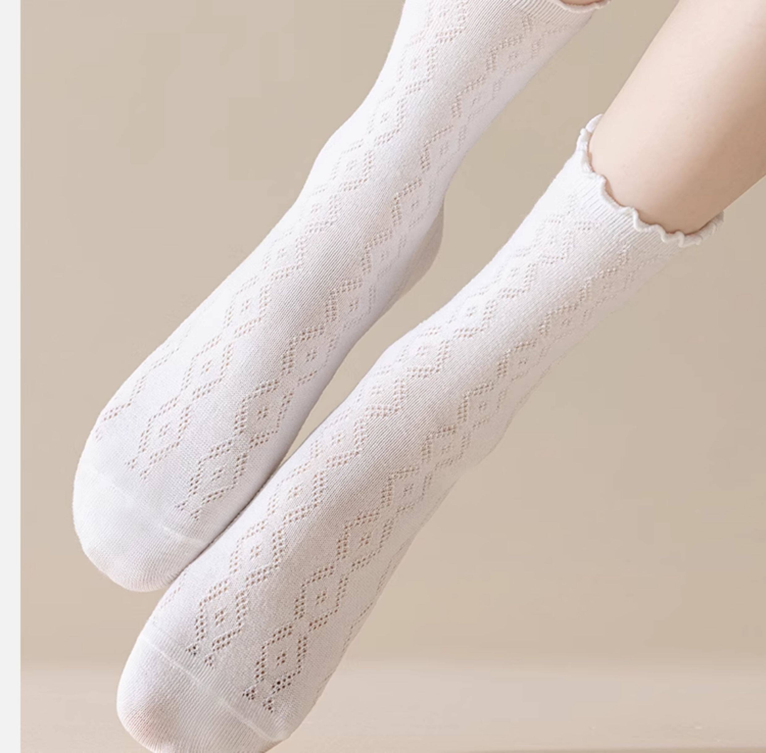 여성용 흰색 양말, 순면 파일 양말, 봄 여름용 메쉬 통기성 중목 양말, 버켄스탁 슈즈와 함께 착용하는 레이스 장양말