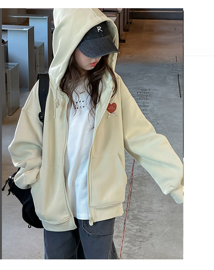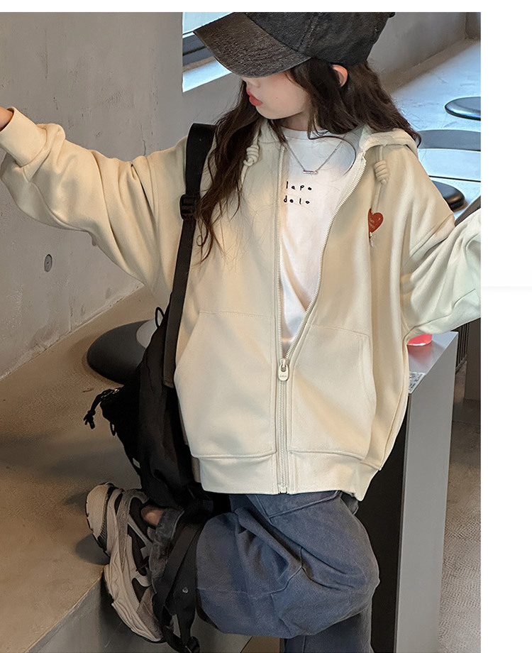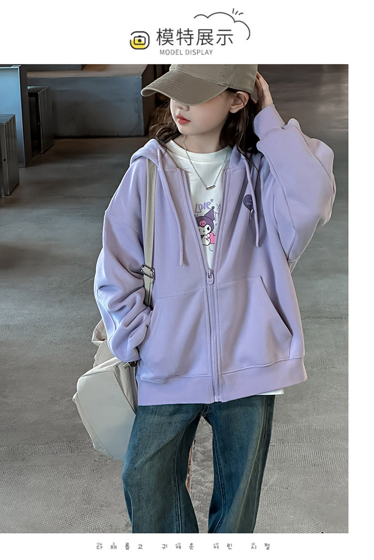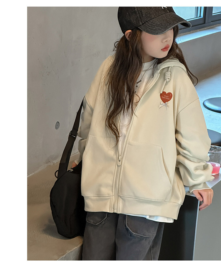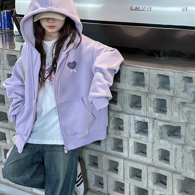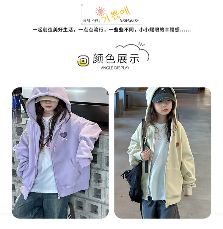 여자 코트 2025 봄, 가을 새로운 스타일 어린이 캐주얼 스포츠 스타일 후드 티셔츠 카디건 느슨한 아동 의류상의스토어 가기
