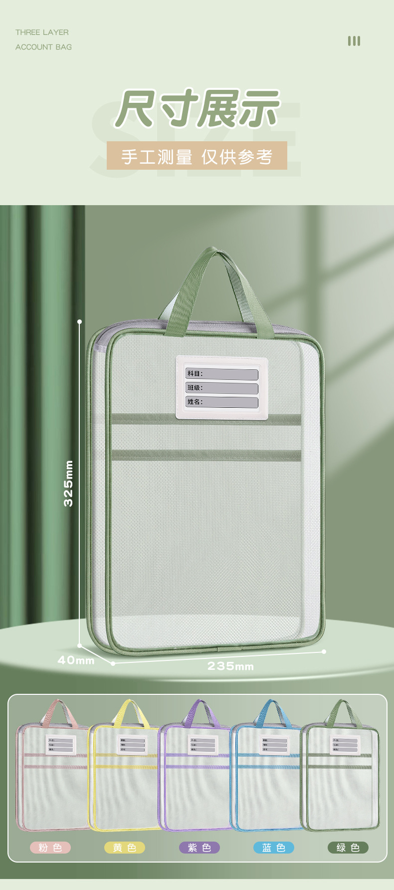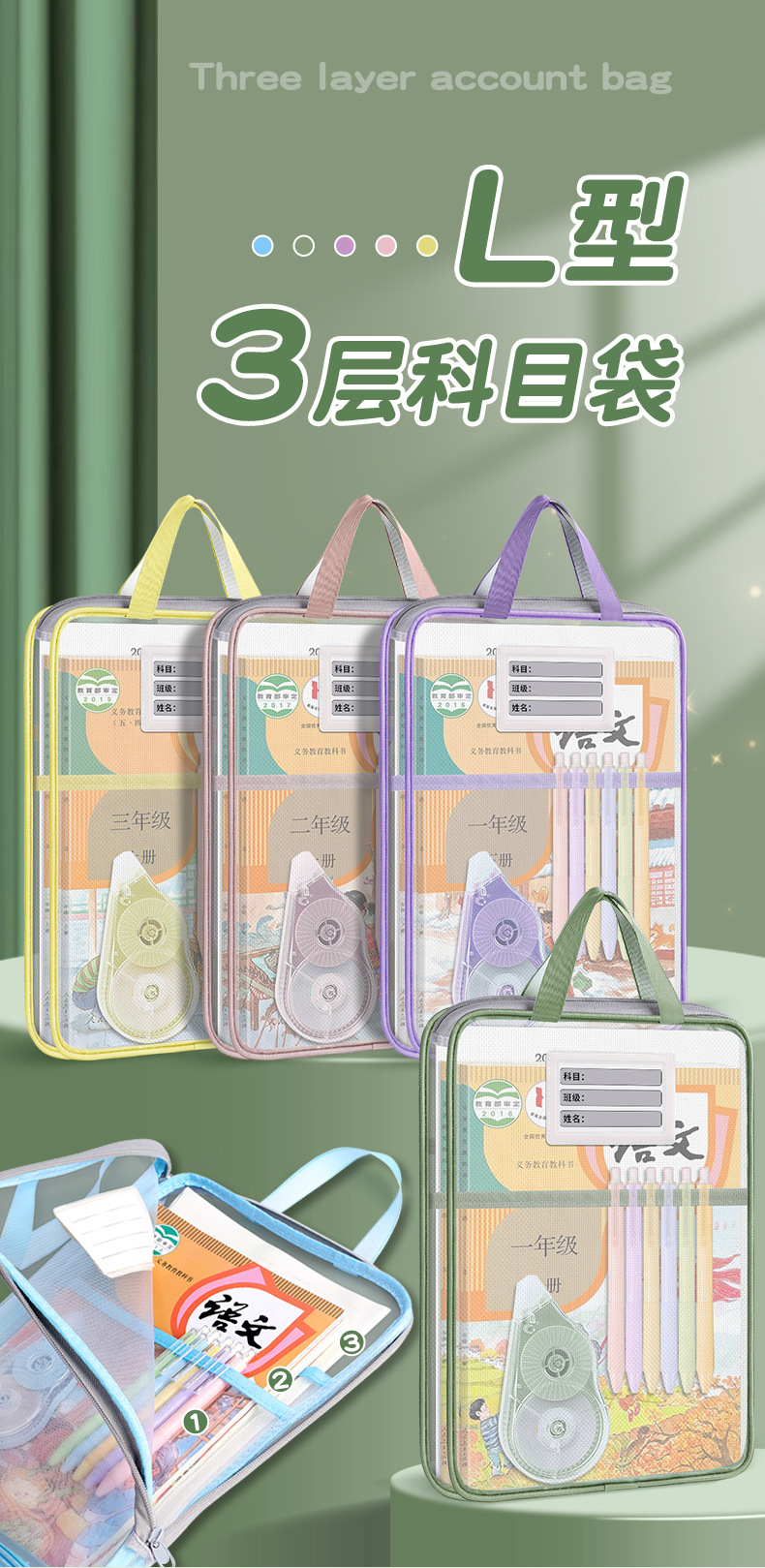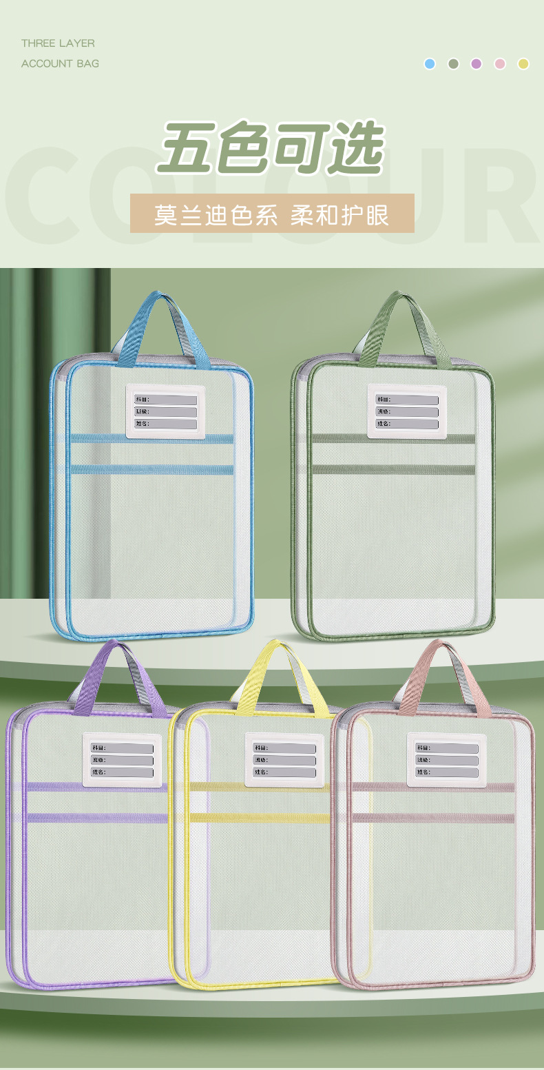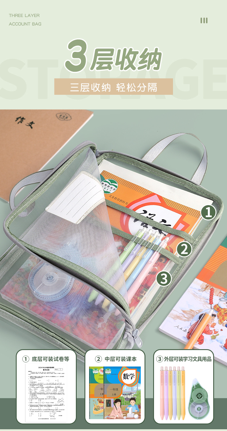 A4 과목 분류 가방 두꺼운 삼중 분류 가방 시험지 책 보관 가방 파일 가방 시험 과외 가방 도매스토어 가기