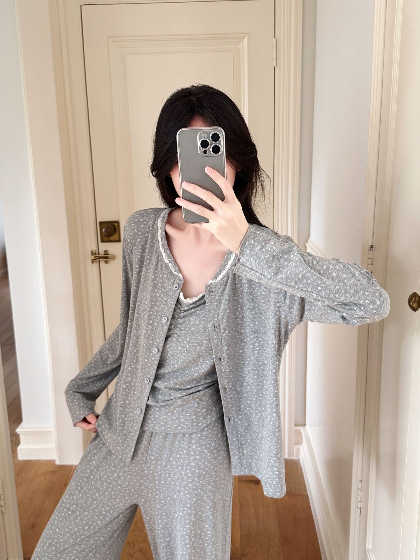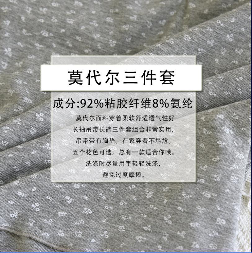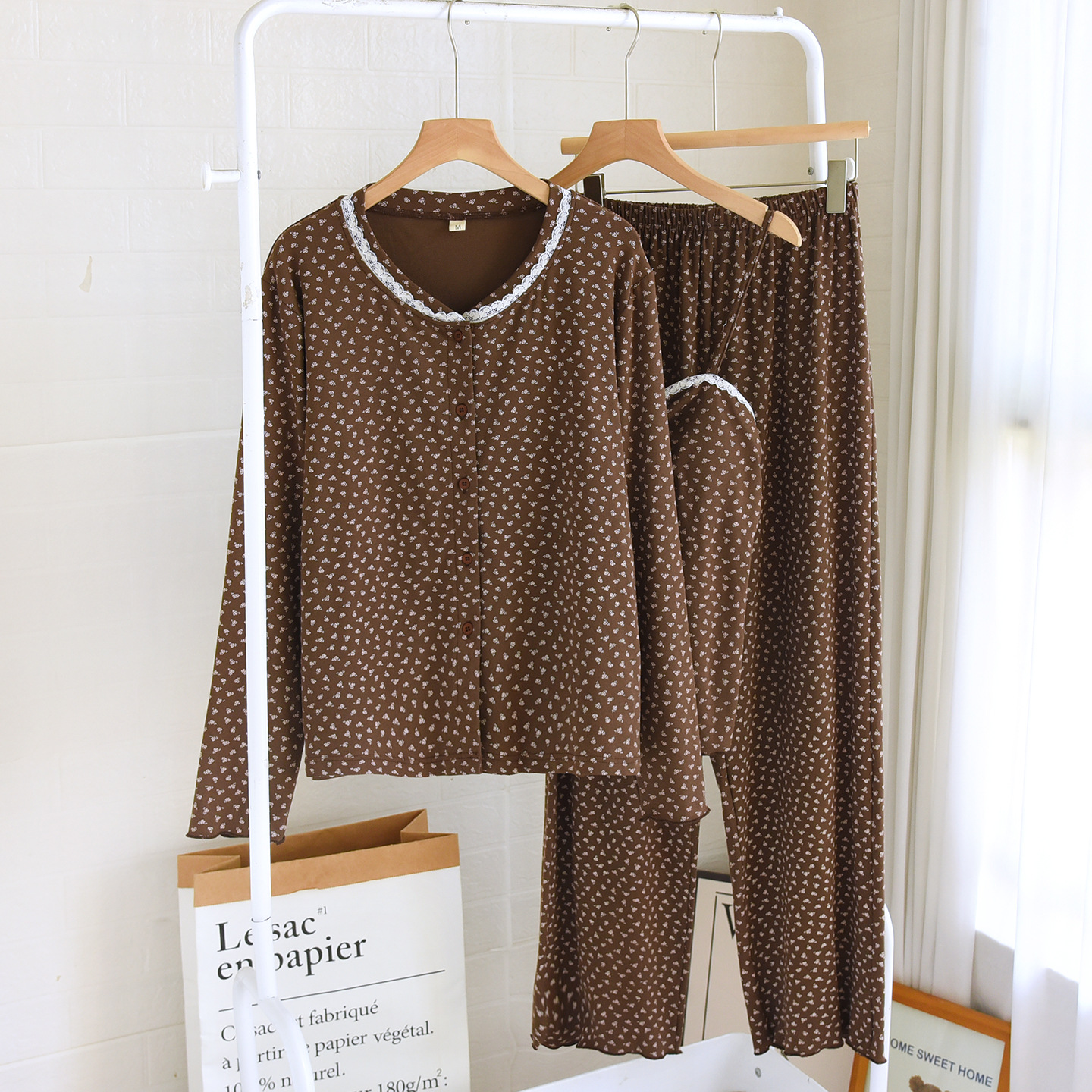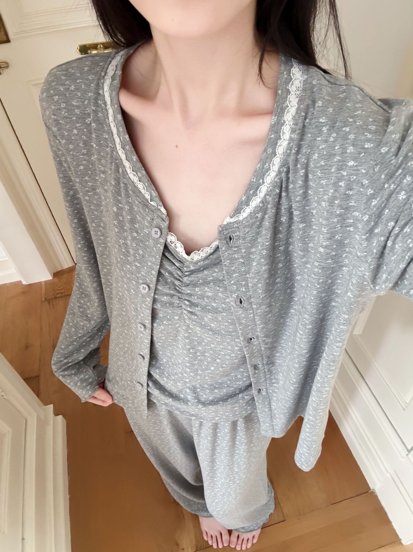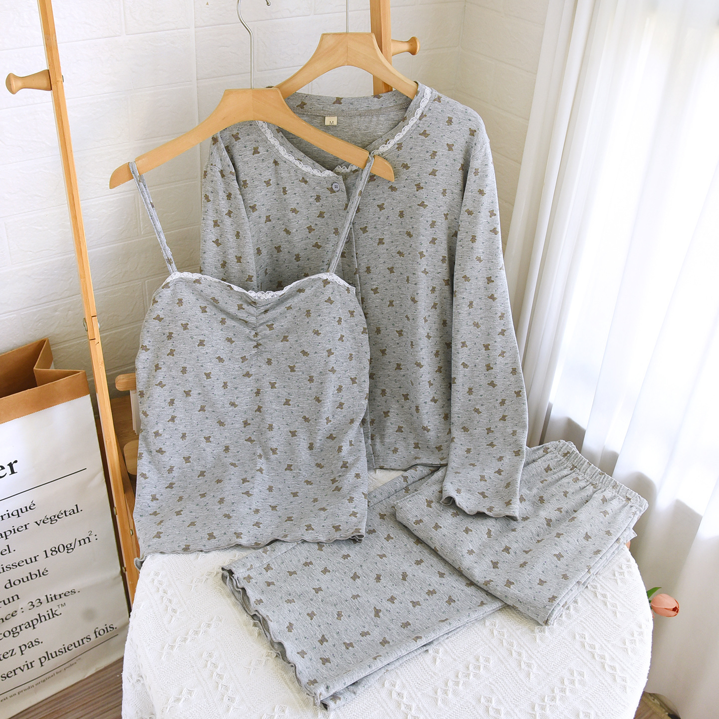 여성용 모달 잠옷 봄 여름용 가슴 패드와 끈이 있는 긴팔 3피스 세트, 소녀들을 위한 부드러운 꽃무늬 홈웨어 세트스토어 가기