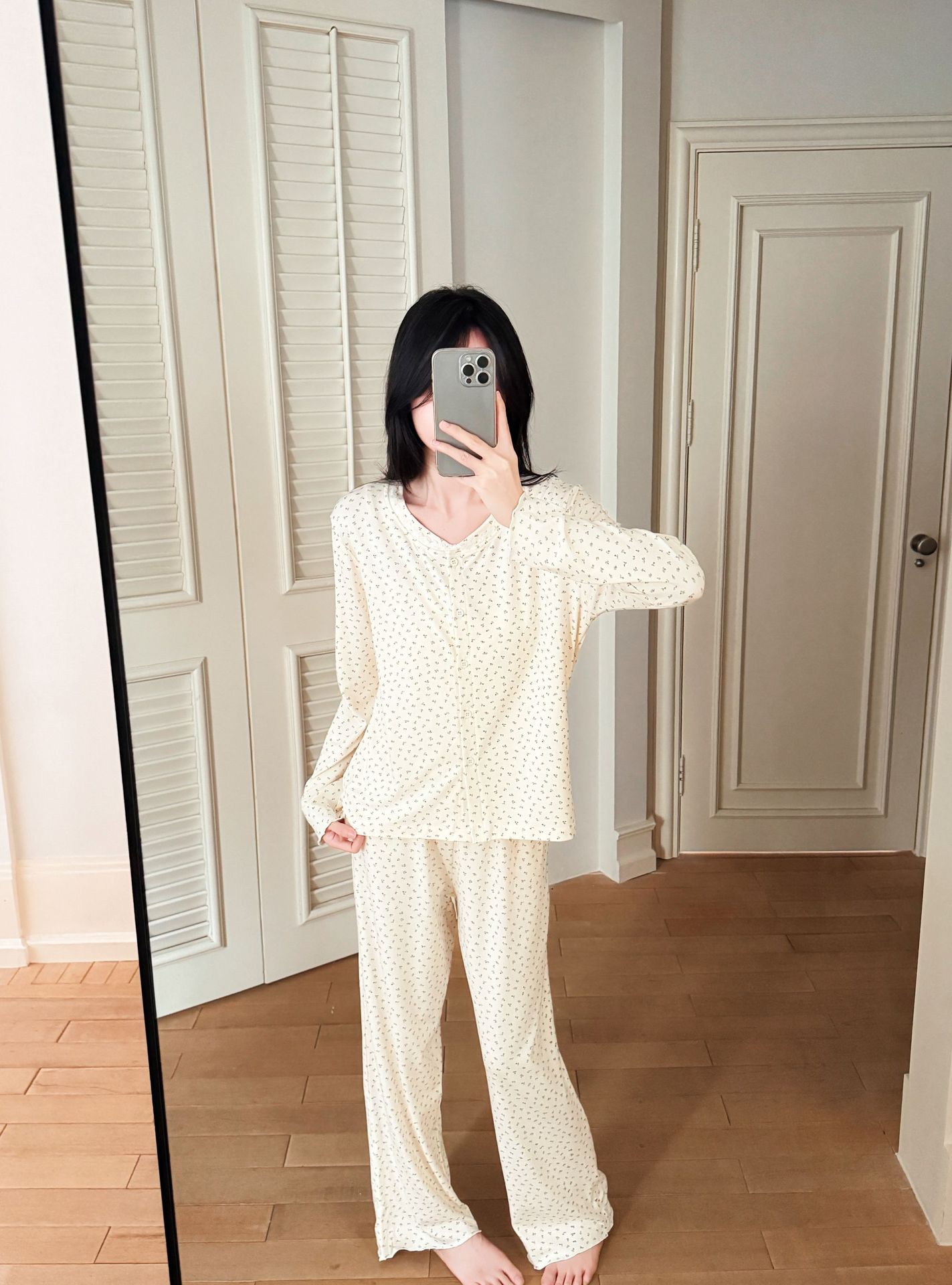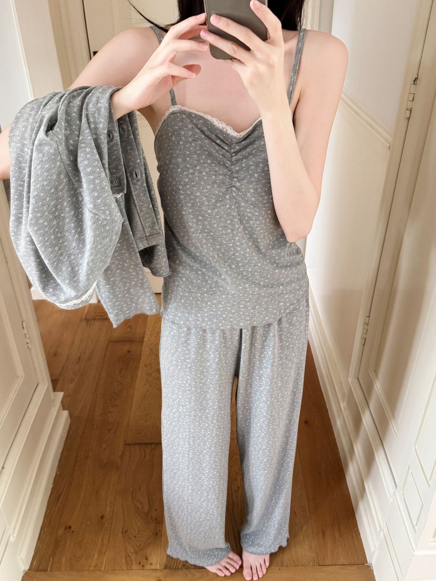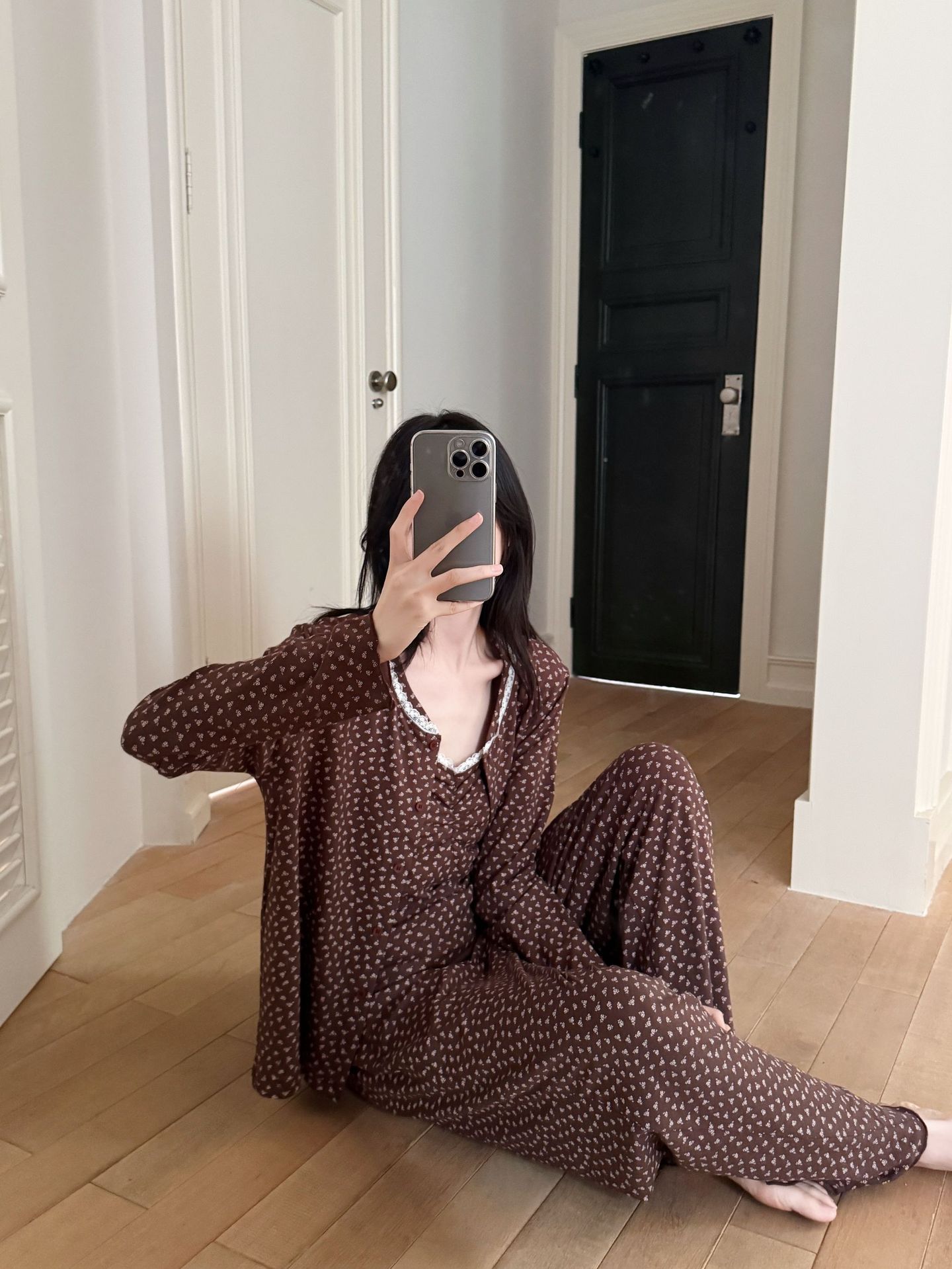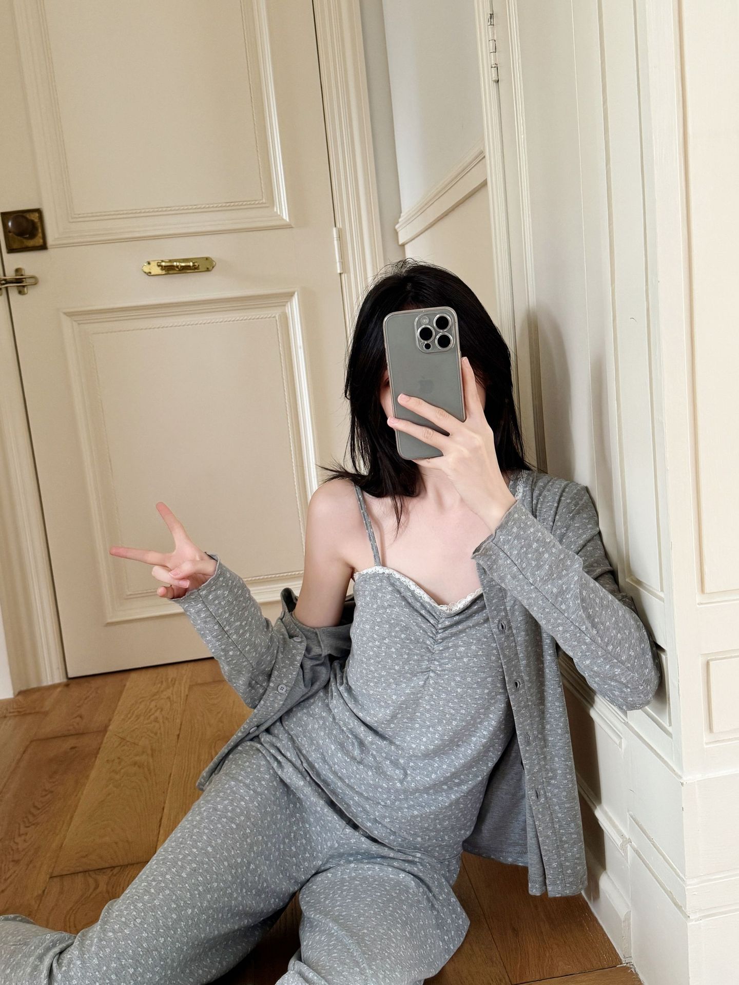 여성용 모달 잠옷 봄 여름용 가슴 패드와 끈이 있는 긴팔 3피스 세트, 소녀들을 위한 부드러운 꽃무늬 홈웨어 세트스토어 가기
