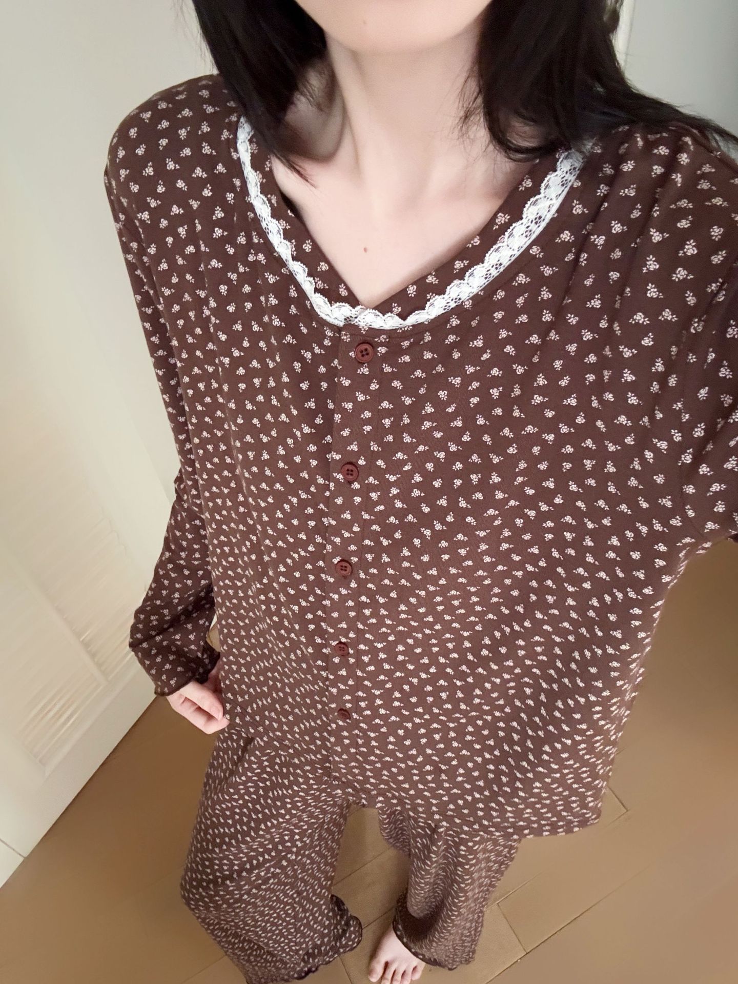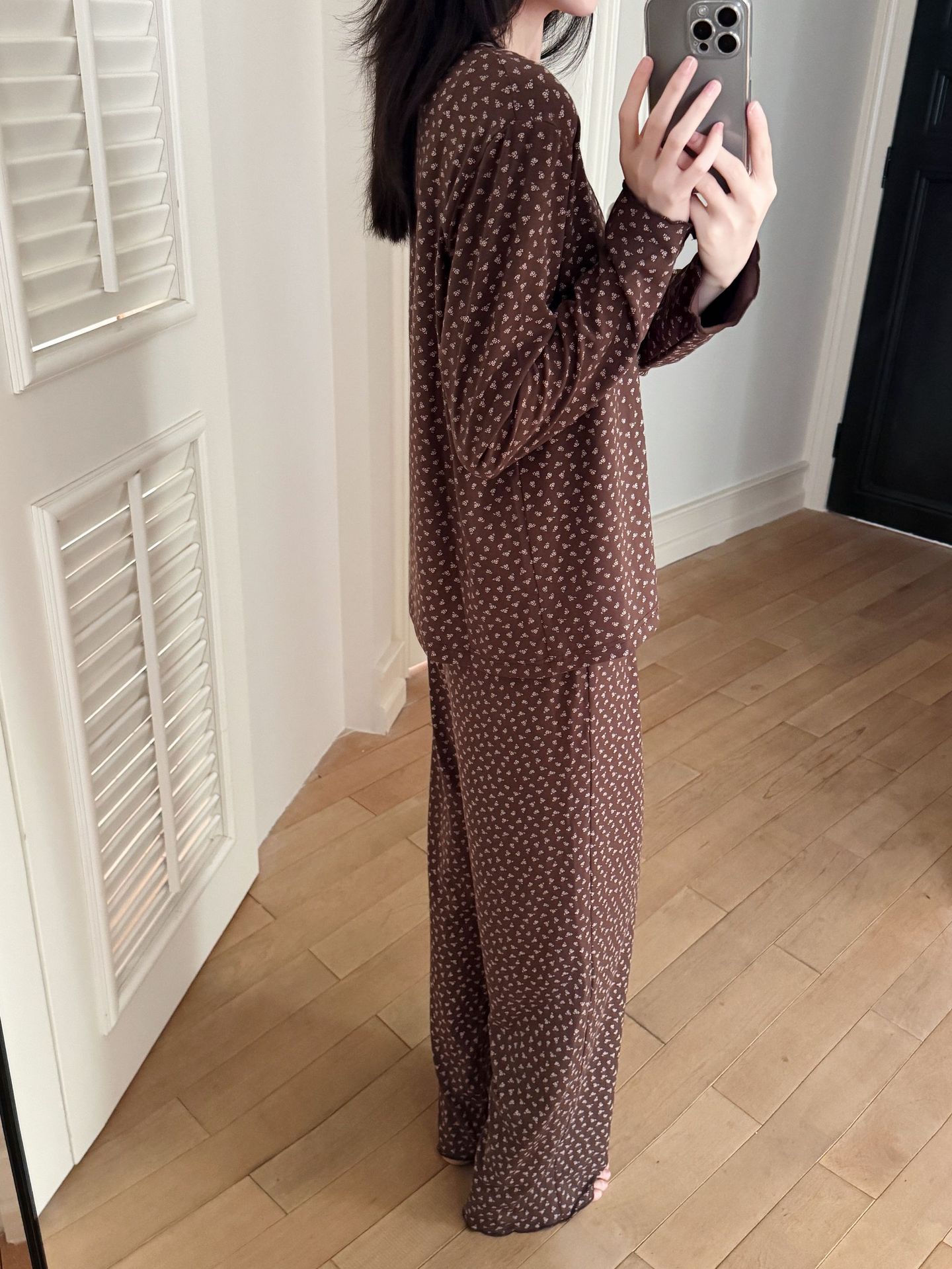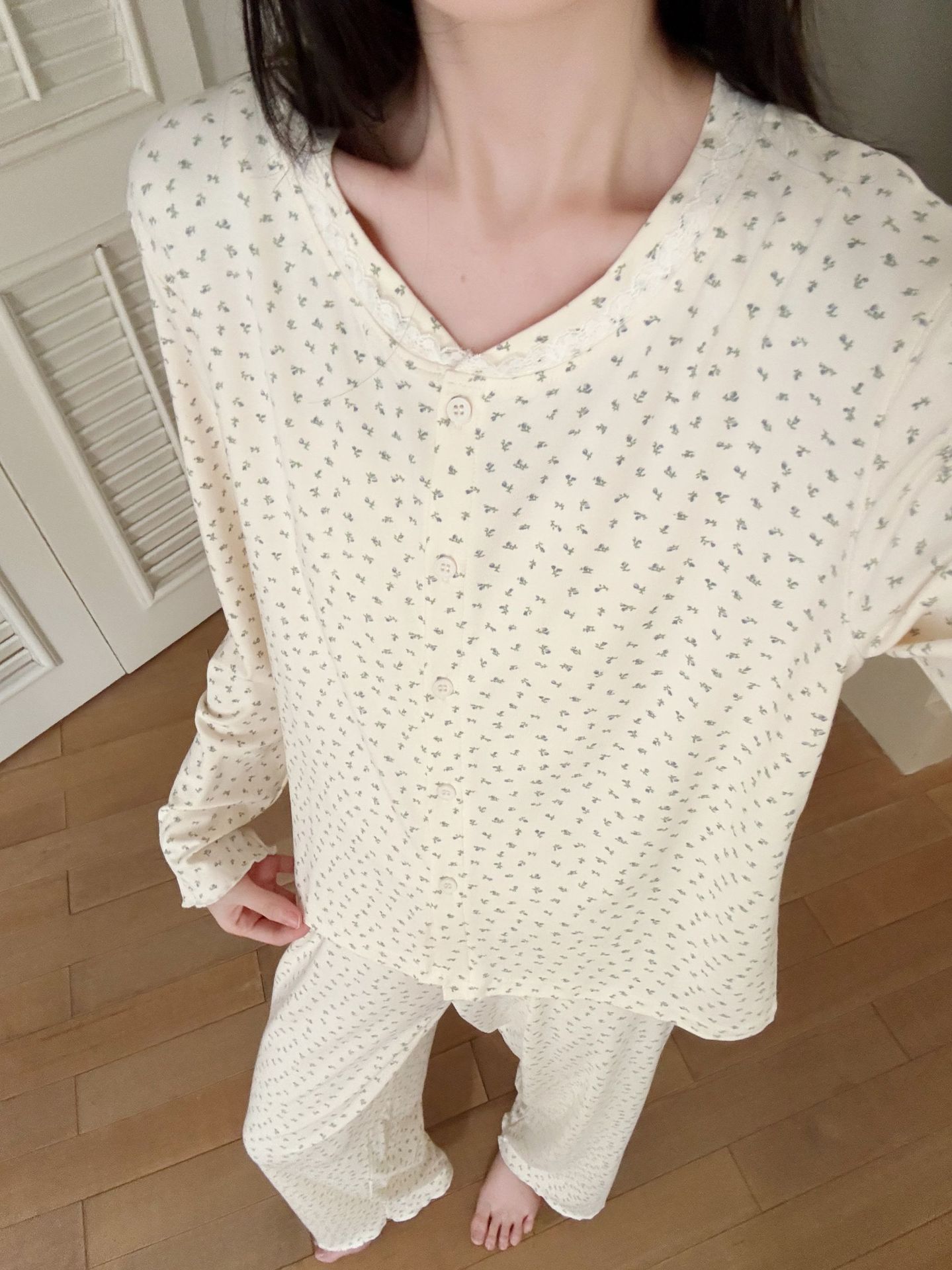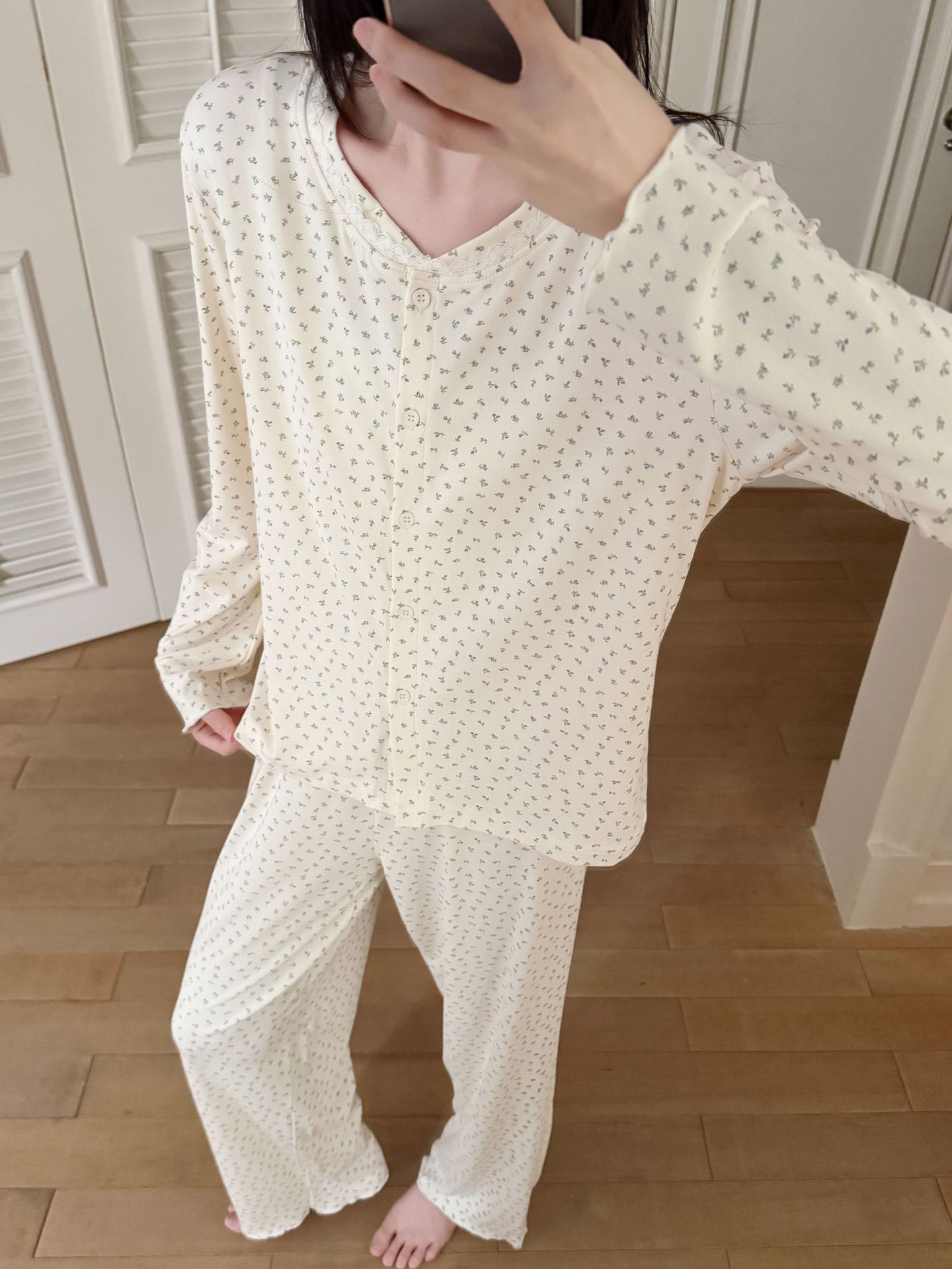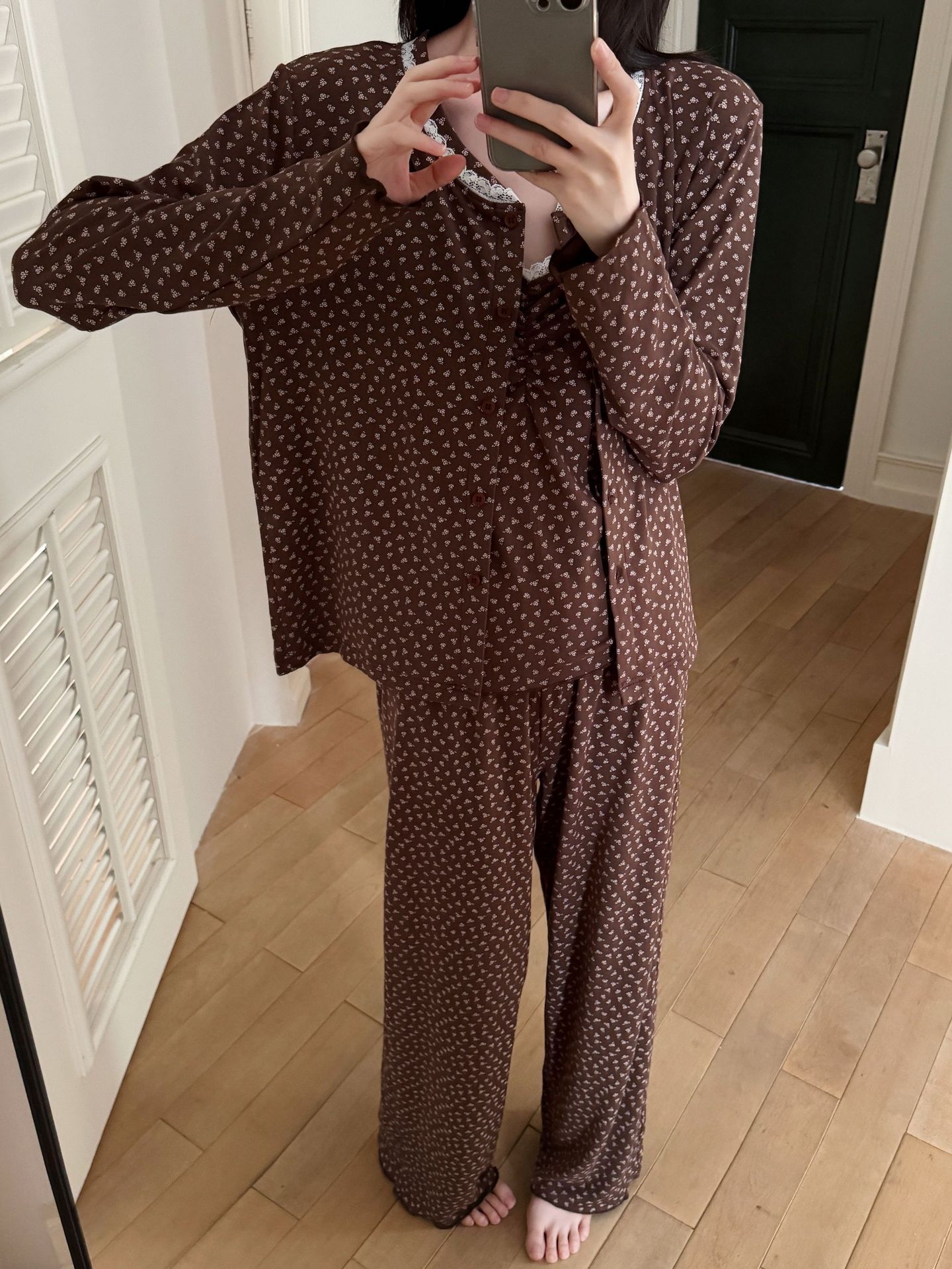 여성용 모달 잠옷 봄 여름용 가슴 패드와 끈이 있는 긴팔 3피스 세트, 소녀들을 위한 부드러운 꽃무늬 홈웨어 세트스토어 가기