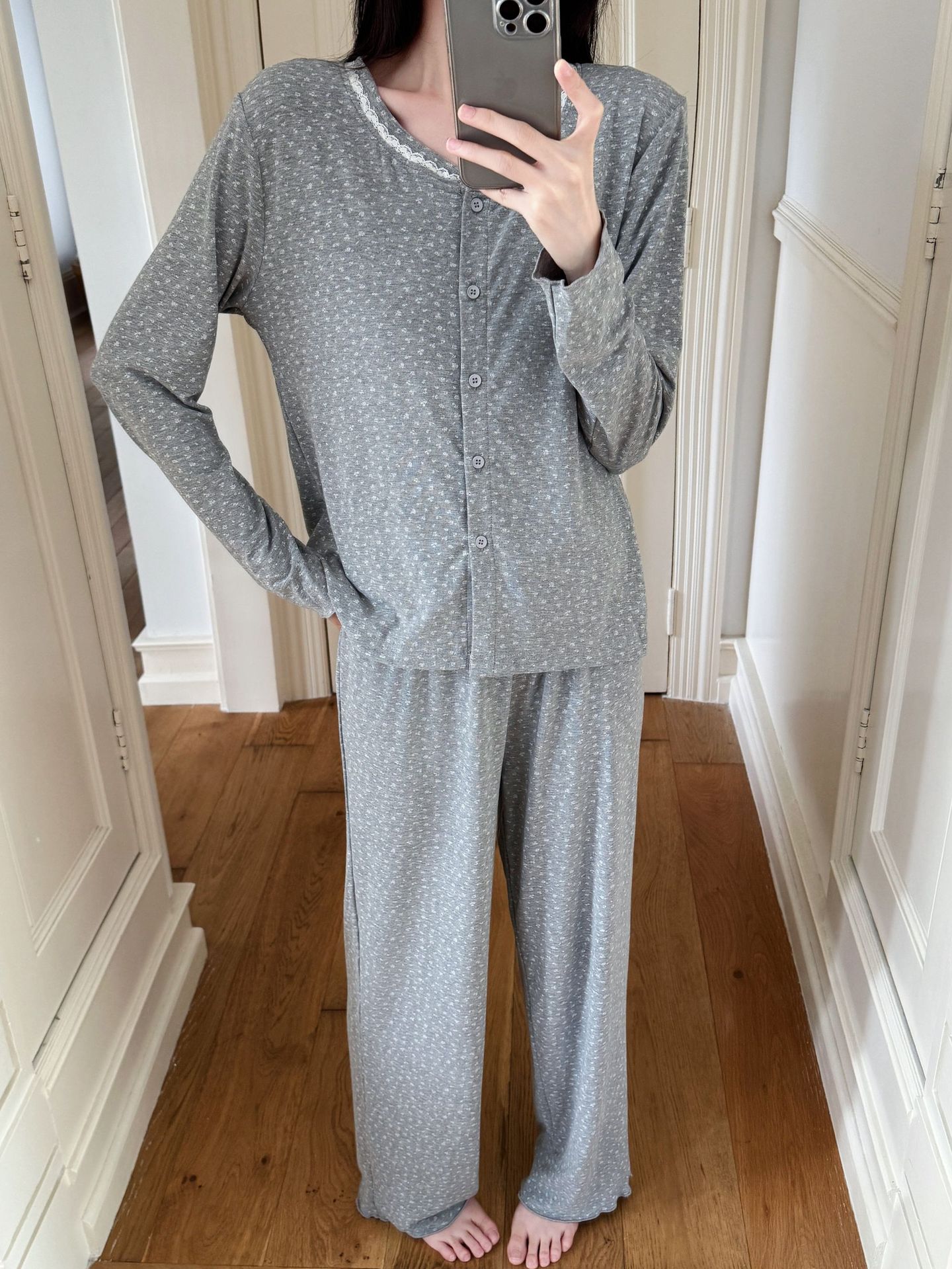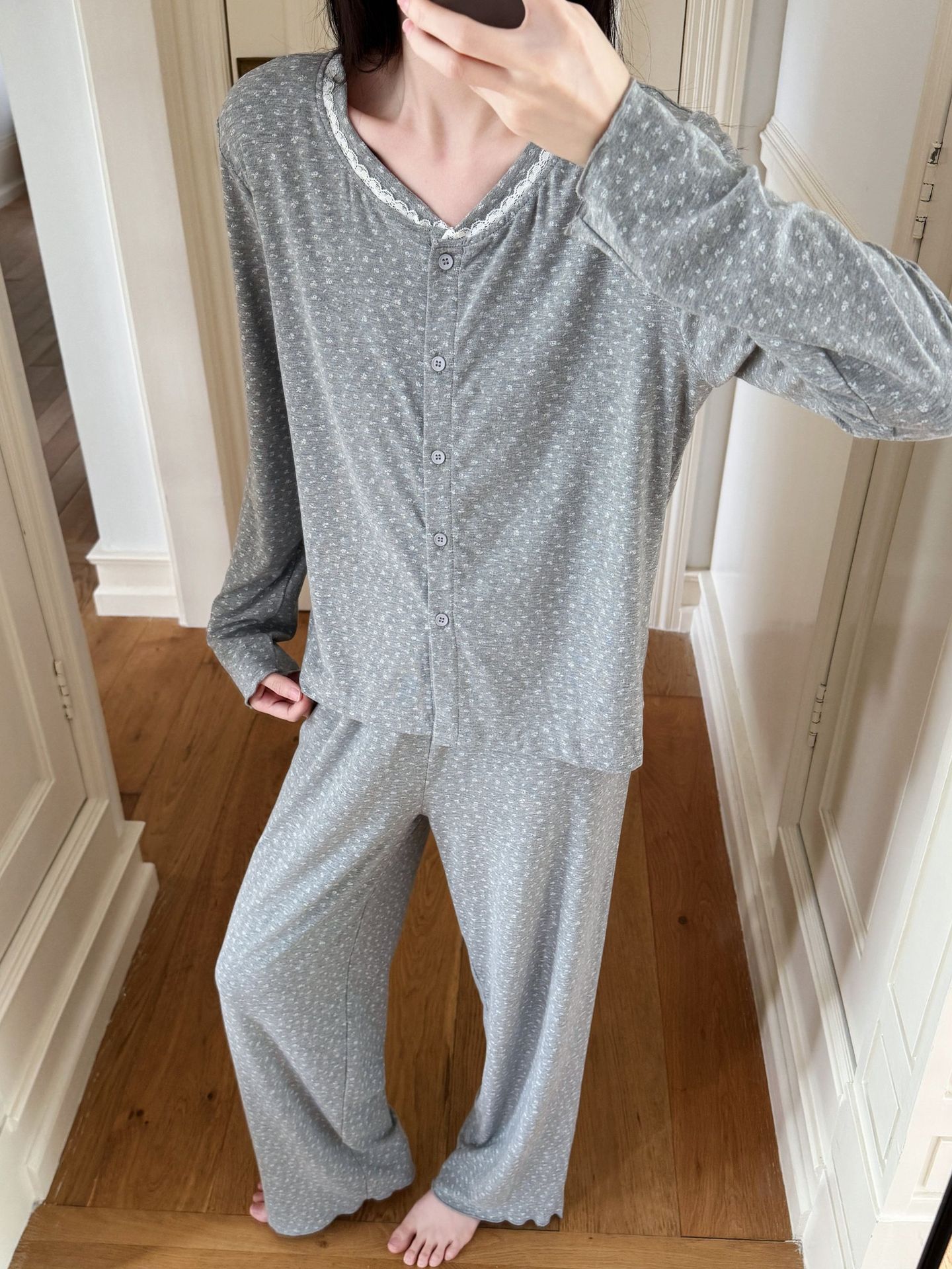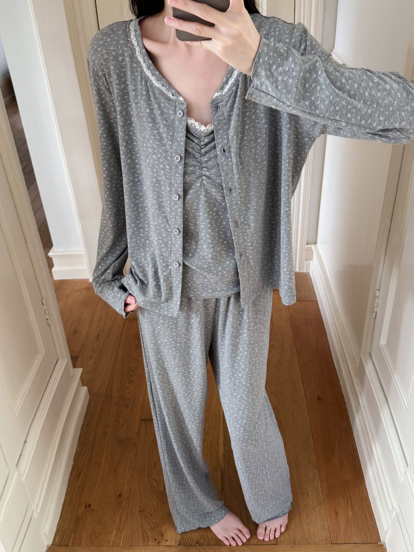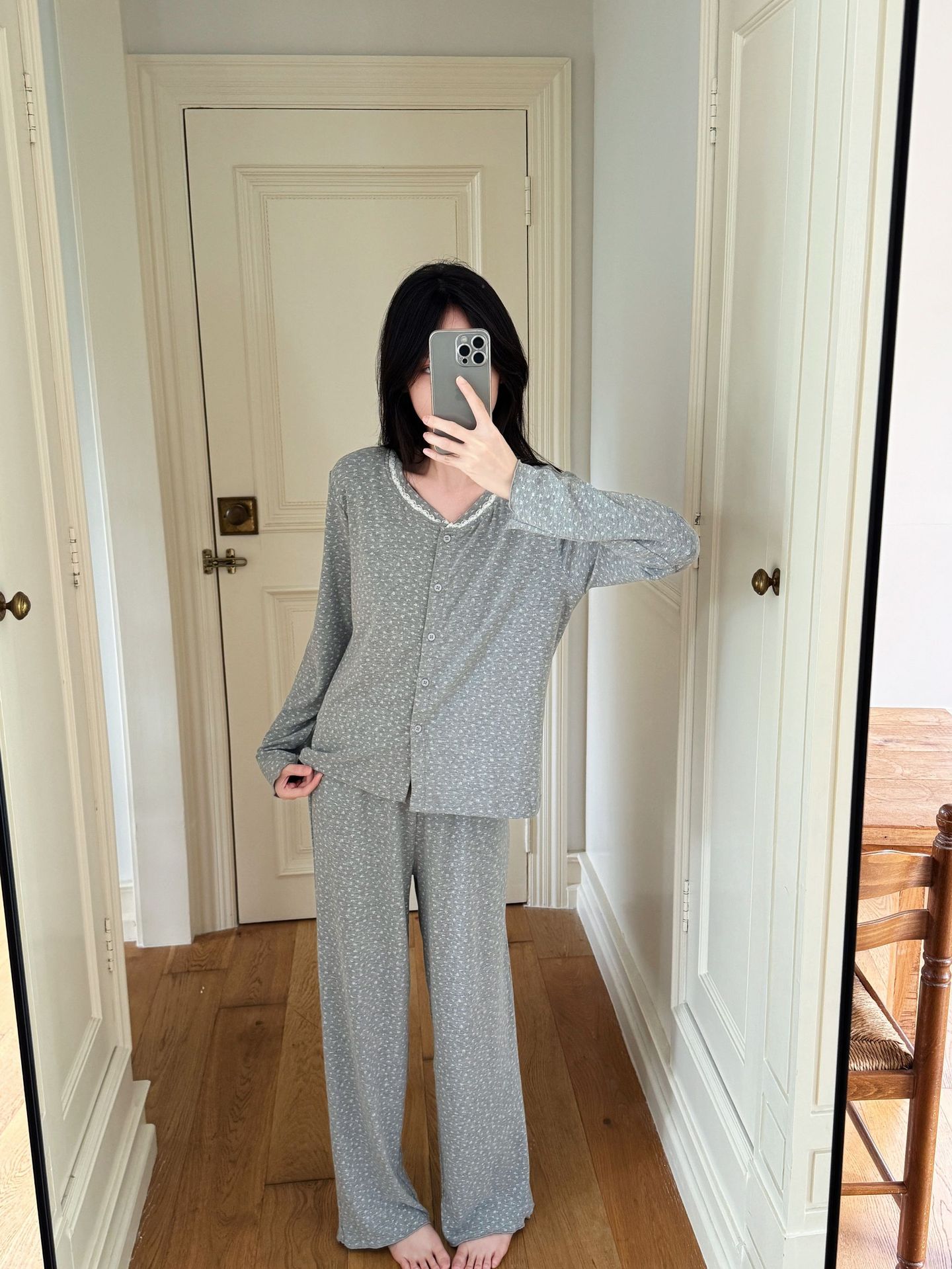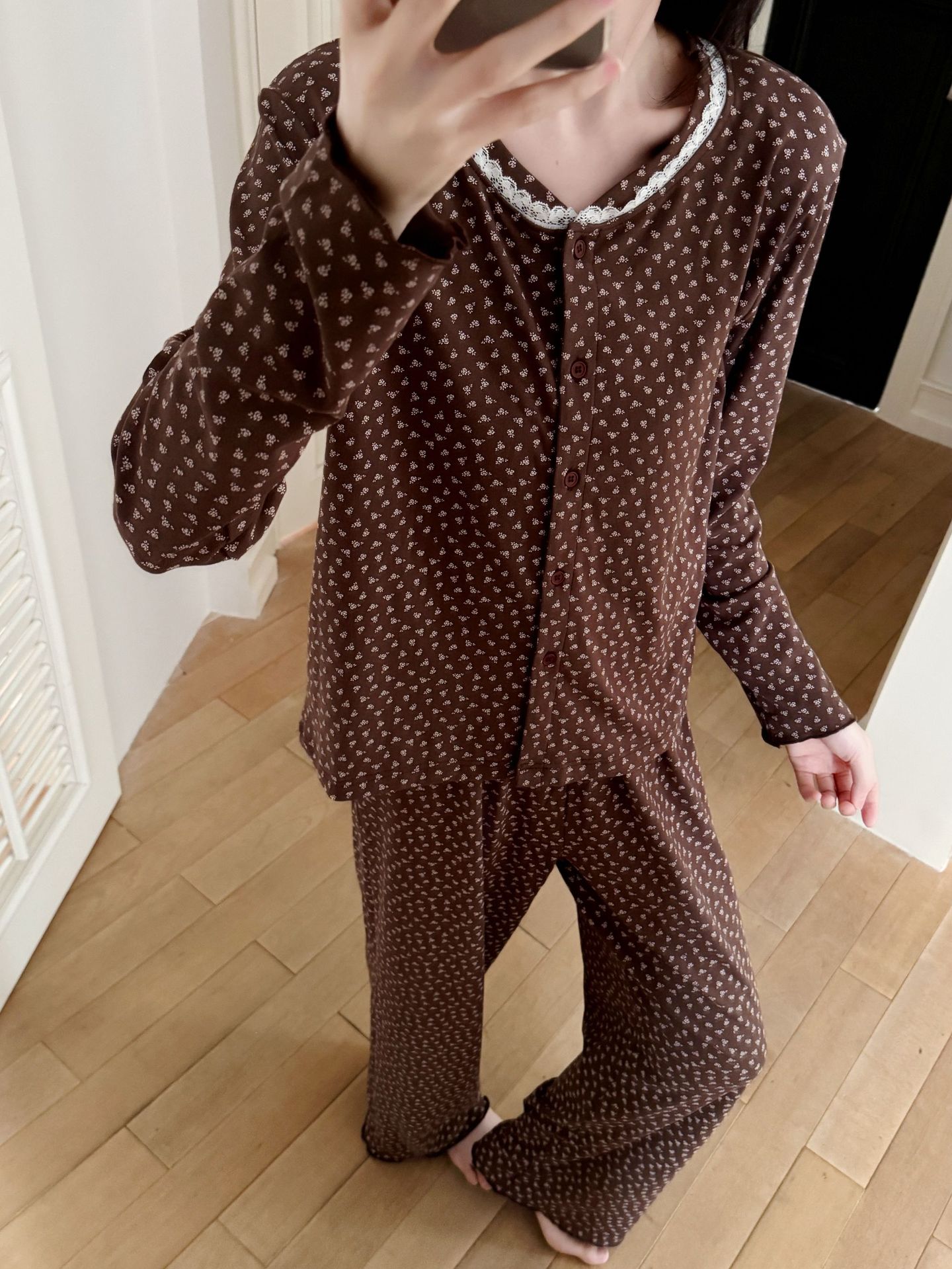 여성용 모달 잠옷 봄 여름용 가슴 패드와 끈이 있는 긴팔 3피스 세트, 소녀들을 위한 부드러운 꽃무늬 홈웨어 세트스토어 가기