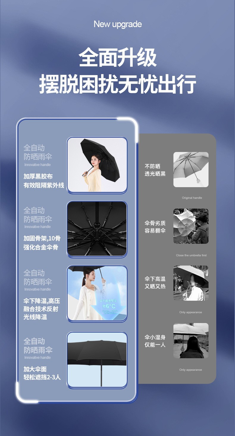 남성용 및 여성용 전자동 우산, 접이식 비 또는 빛 우산, 태양 우산, 방풍, 두꺼워지고 강화된 파라솔스토어 가기