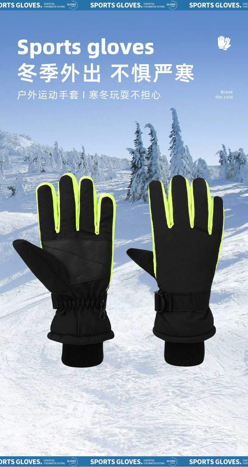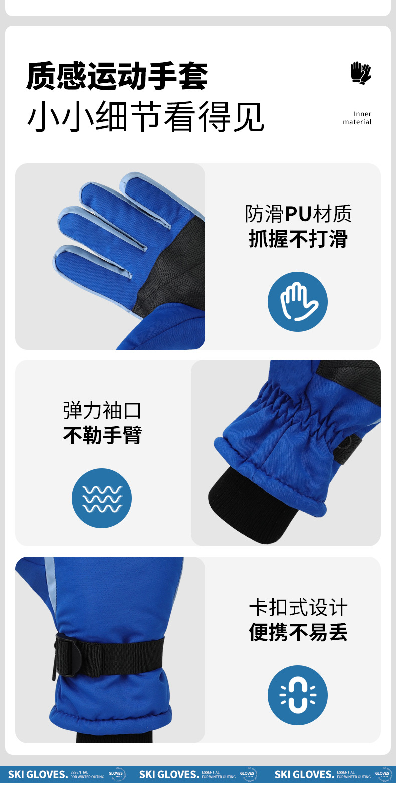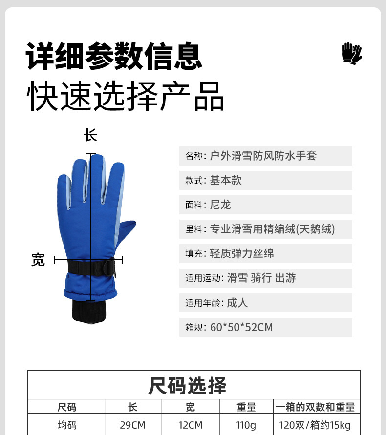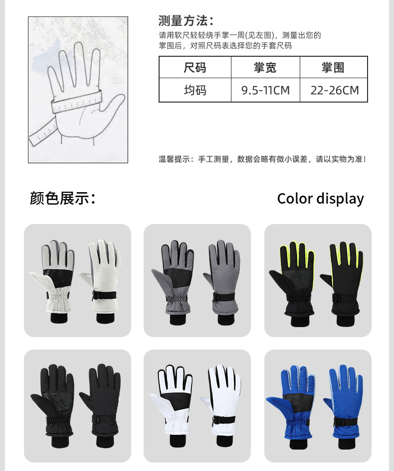 야외 스포츠 방한 및 따뜻한 스키 장갑, 심플한 대비 색상, 방풍 및 방수 승선 장갑, 트렌디한 국경 간 공급스토어 가기