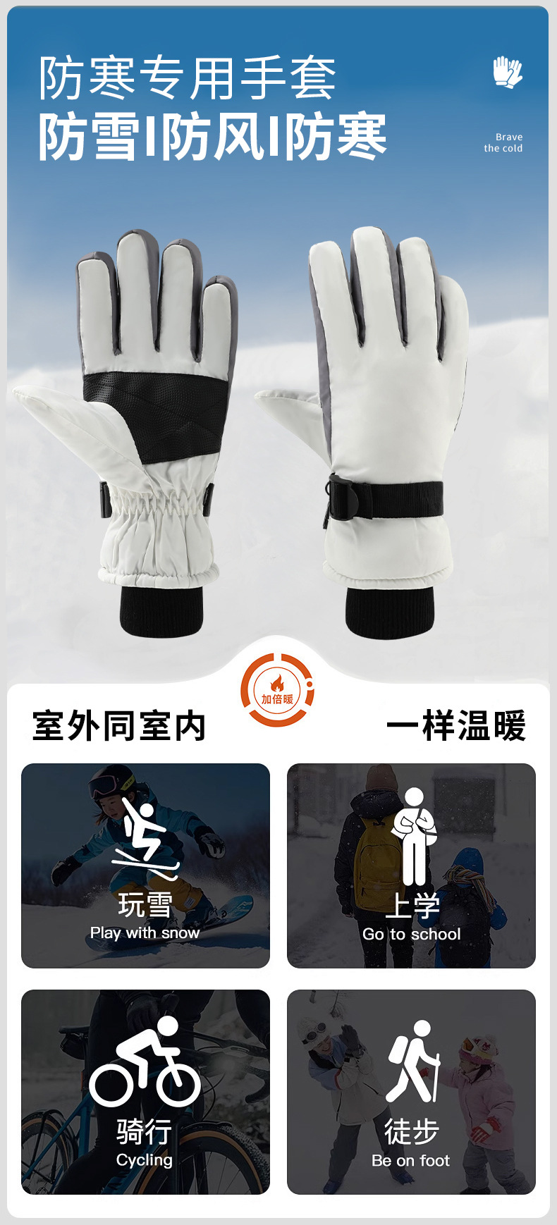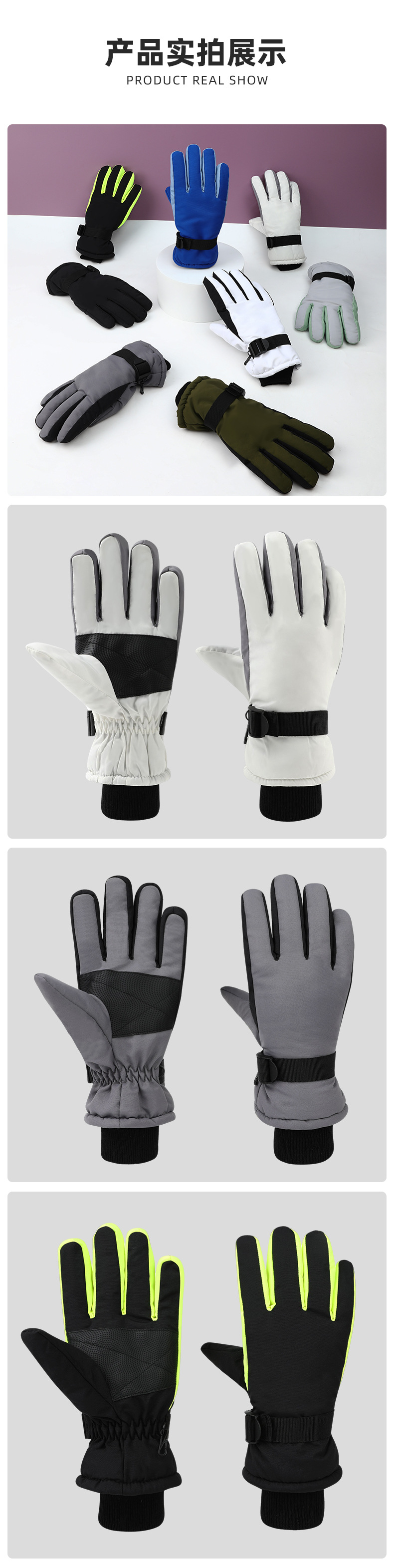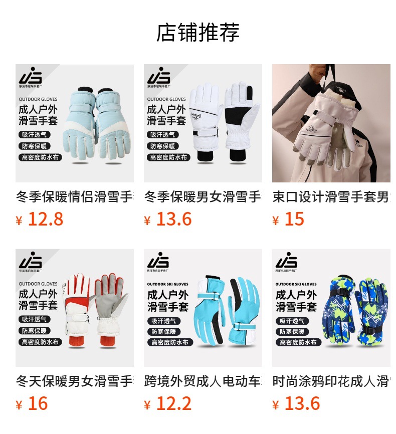 야외 스포츠 방한 및 따뜻한 스키 장갑, 심플한 대비 색상, 방풍 및 방수 승선 장갑, 트렌디한 국경 간 공급스토어 가기
