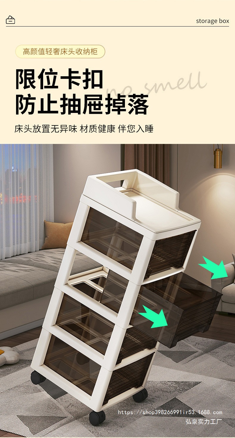 플라스틱 침대 옆 수납 캐비닛, 사무실 수납 선반, 다층 이동식 간단한 소형 수납 캐비닛, 최소 배치 수량 1개스토어 가기