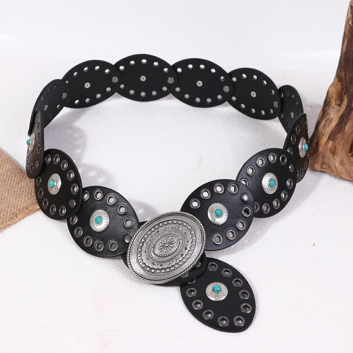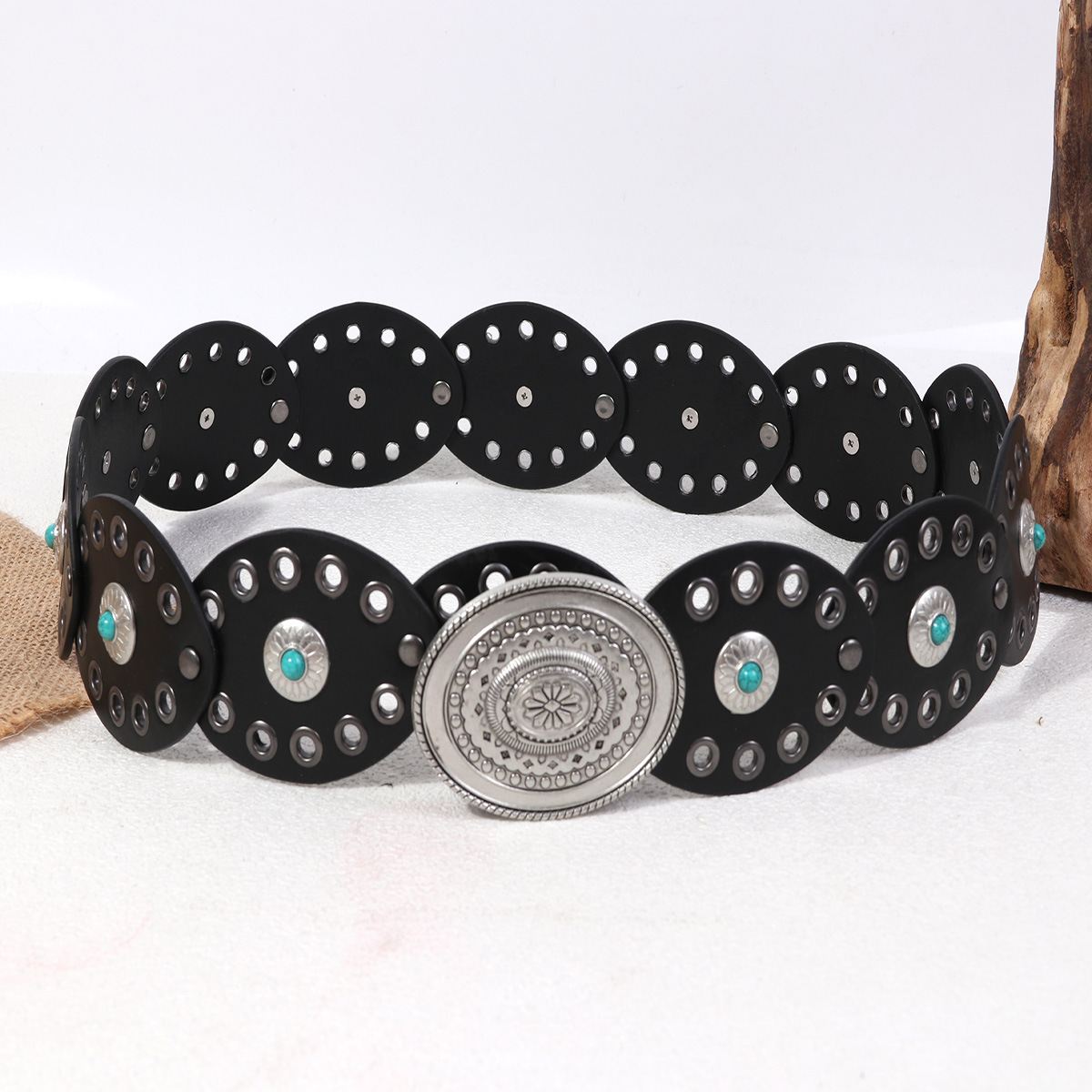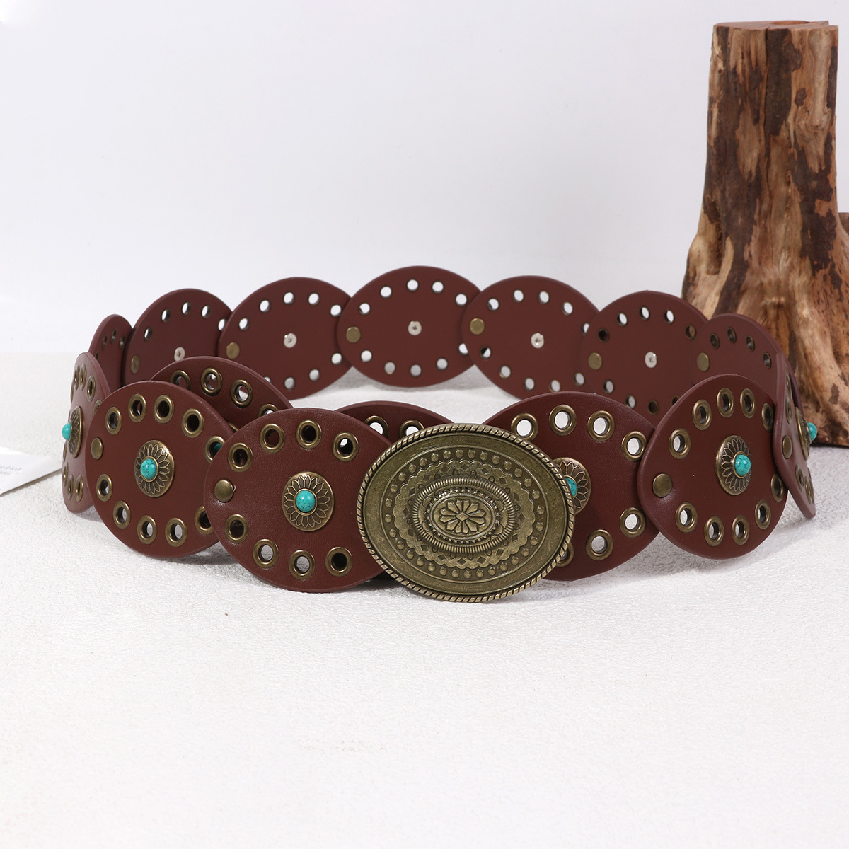 유럽과 미국의 새로운 스타일의 다이아몬드 원형 케이크 스플라이싱 에스닉 스타일 여성용 벨트, 보헤미안 스타일의 허리 반지, 아일 홀 복고풍 벨트