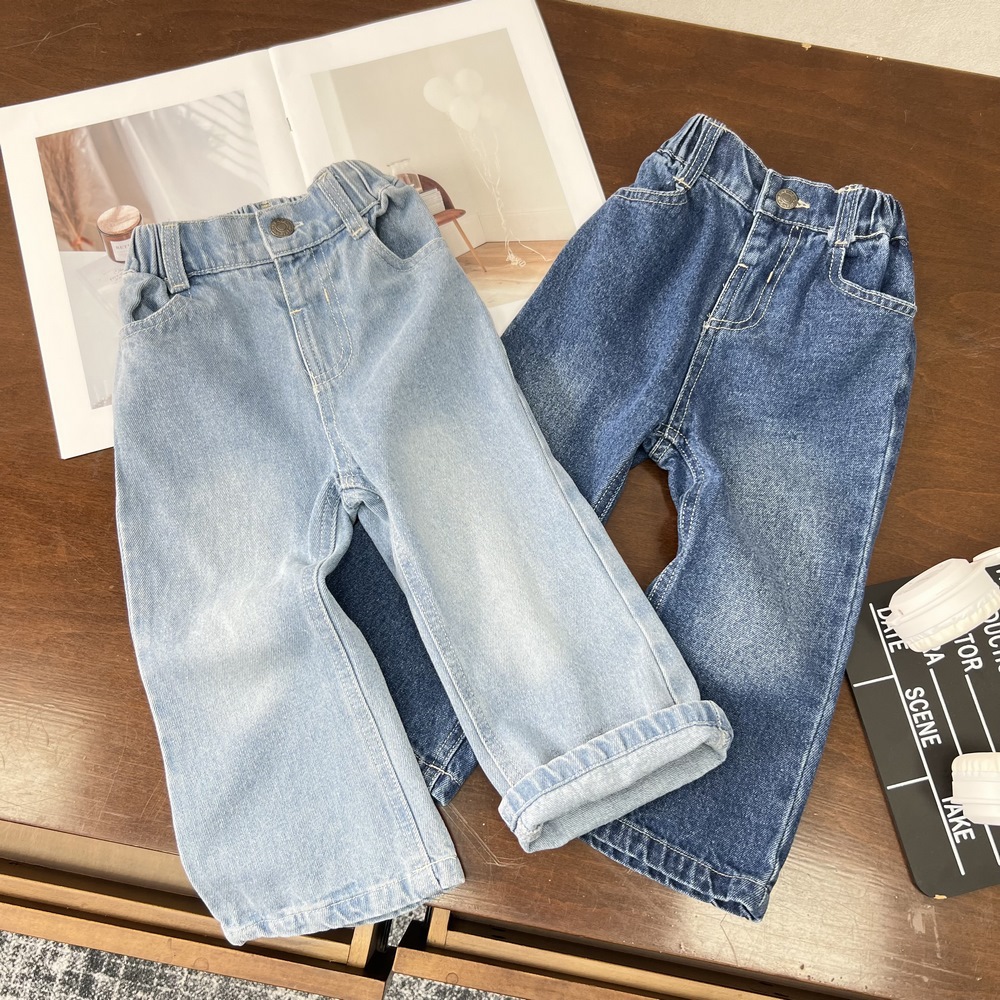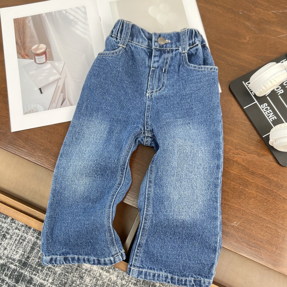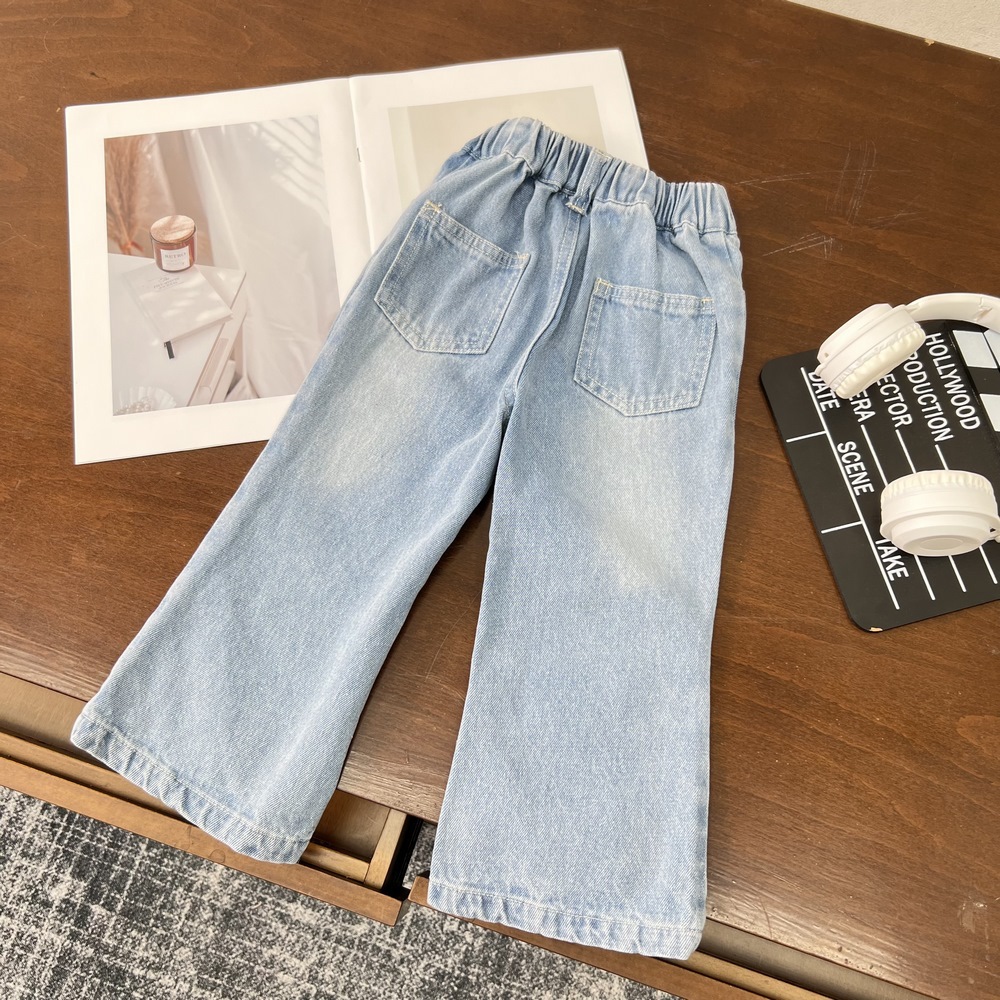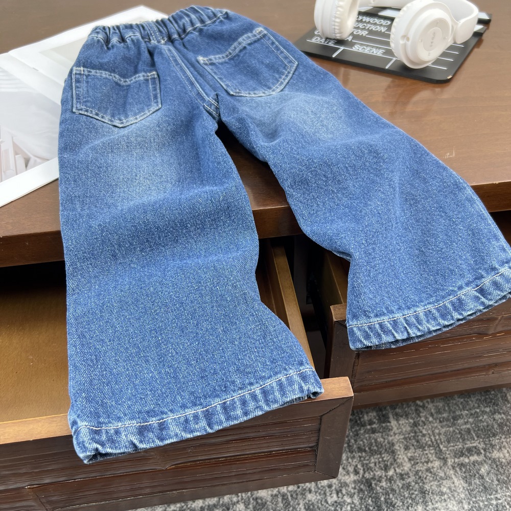여아 솔리드 컬러 청바지 2025 봄 가을 새로운 스타일 여아 패셔너블하고 복고풍 워시 한국 스타일 마이크로 플레어 바지