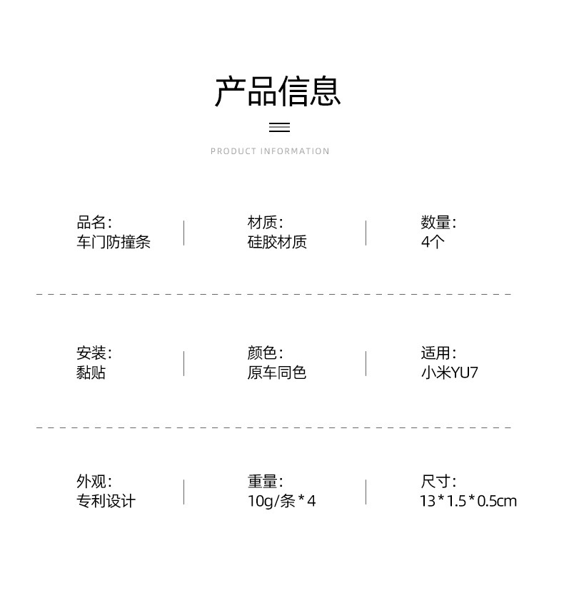 • 실리콘 모델 [Xiaomi YU7 도어 충돌 방지 스트립 4개] 티타늄 금속