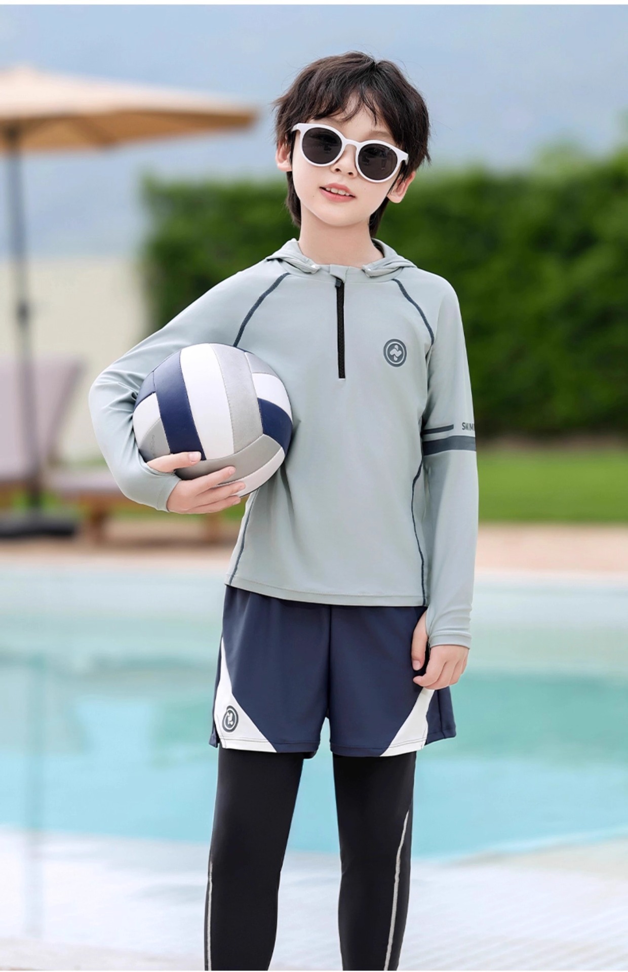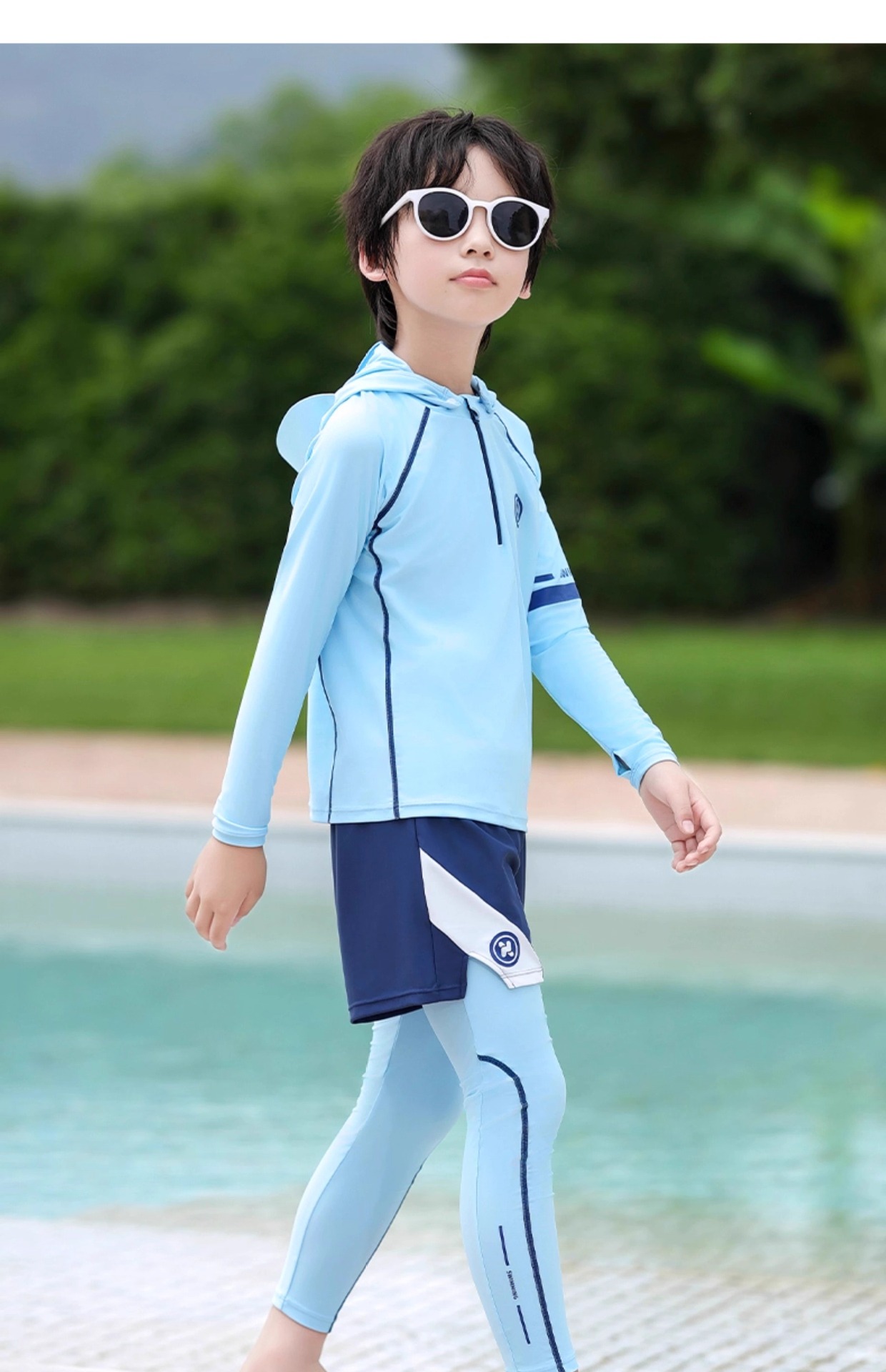 아동용 수영복 소년 스플릿 긴팔 바지 자외선 차단 후드 수영복 2025 새로운 중대형 아동 수영 장비