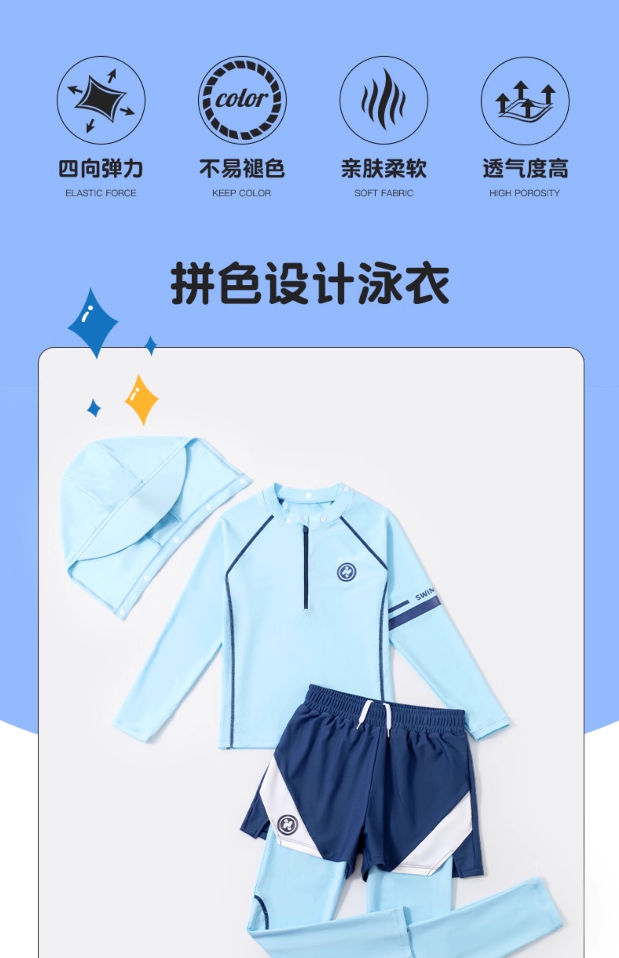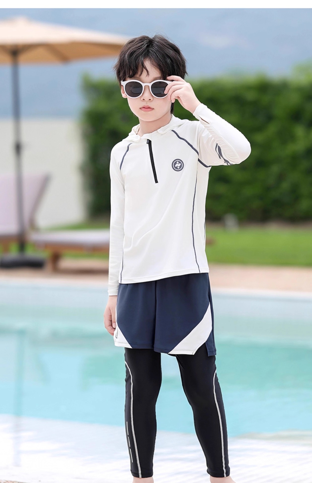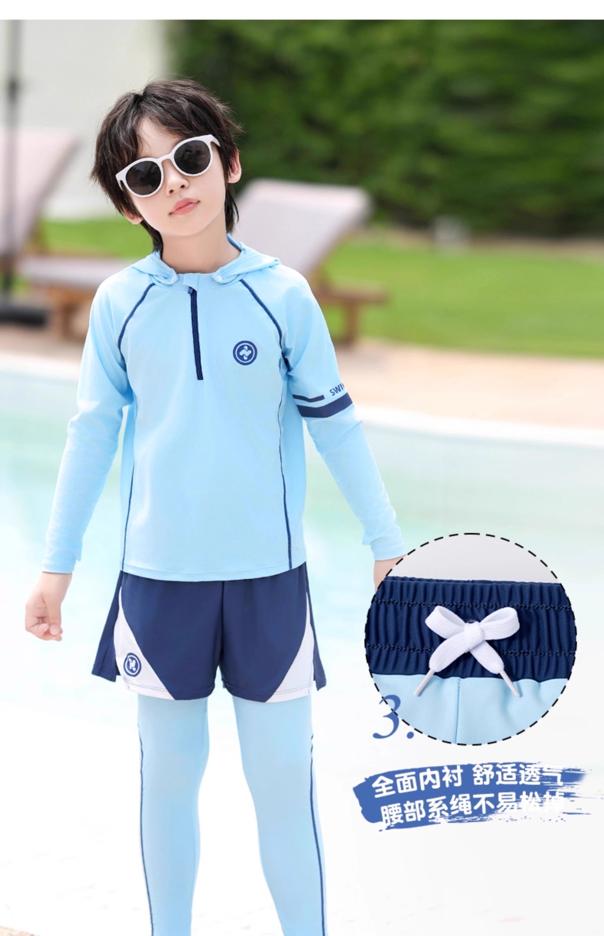 아동용 수영복 소년 스플릿 긴팔 바지 자외선 차단 후드 수영복 2025 새로운 중대형 아동 수영 장비스토어 가기
