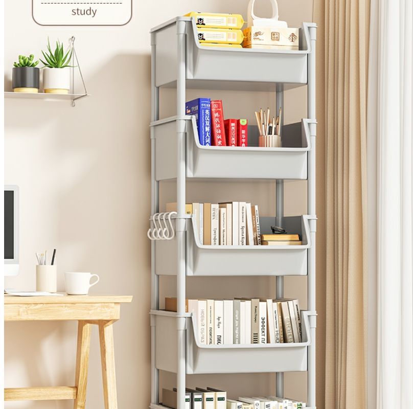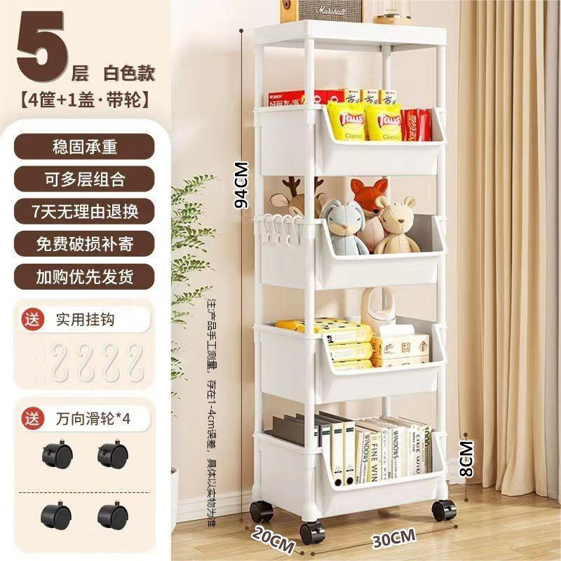 트롤리 보관 랙 가정용 스낵 바닥 스탠딩 다층 거실 보관 책장 모바일 주방 과일 및 야채 바구니 선반