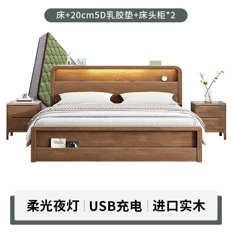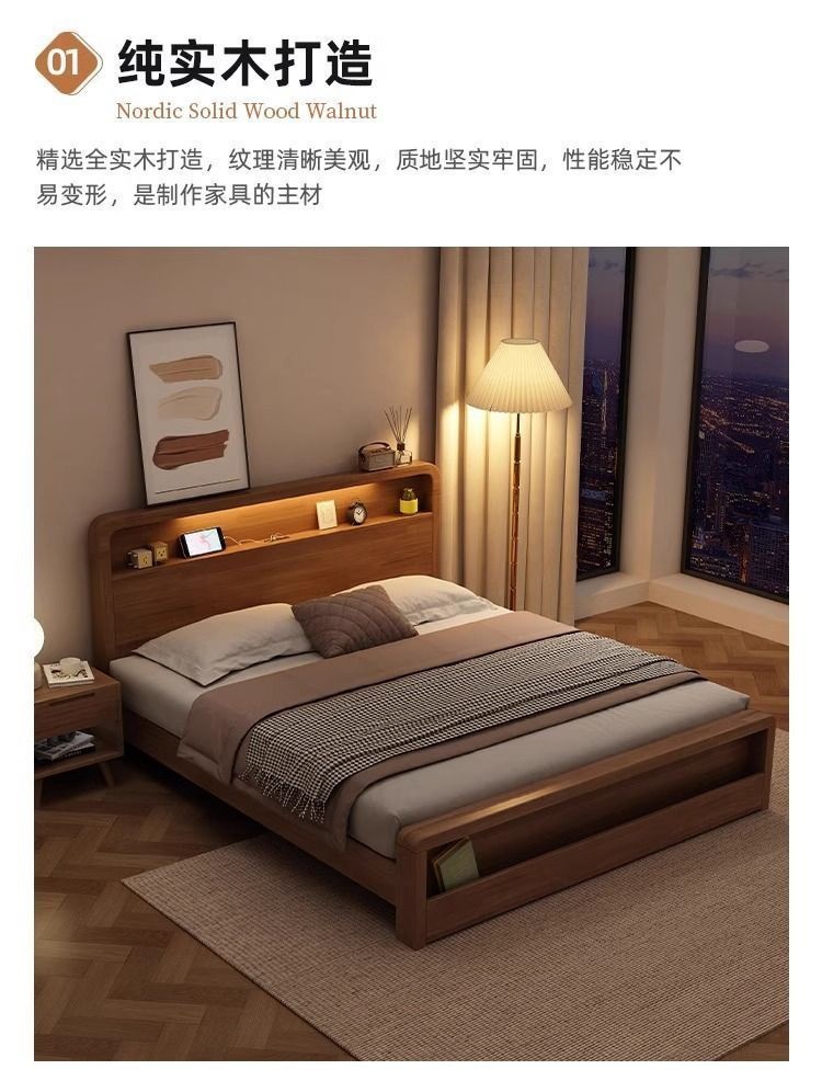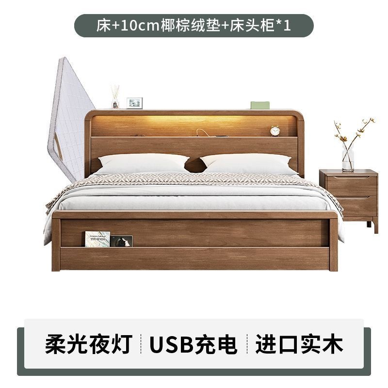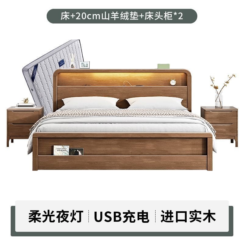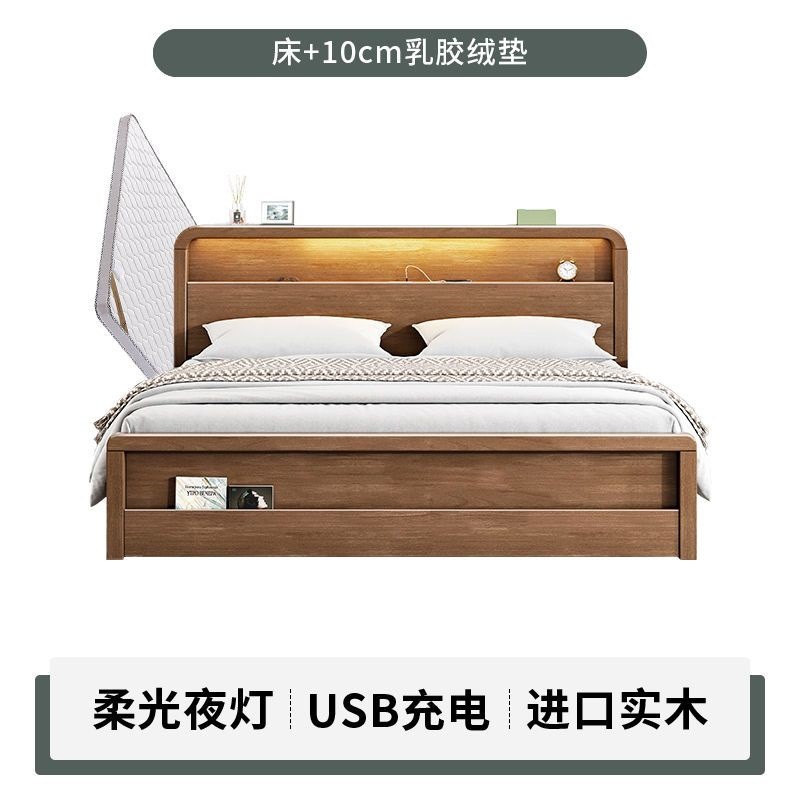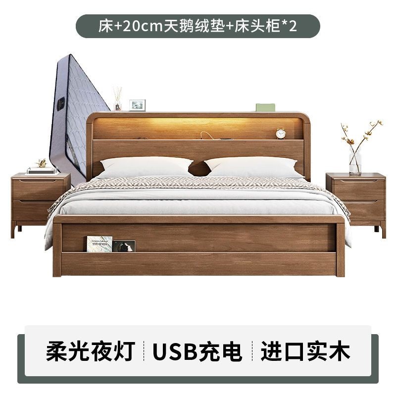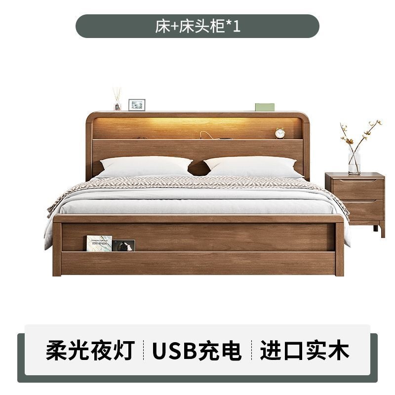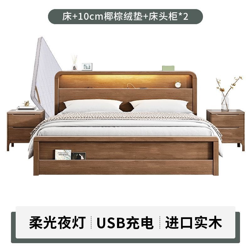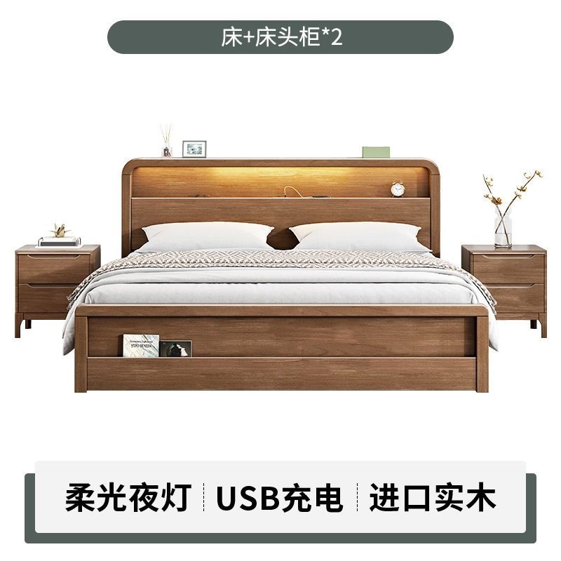 원목 침대 모던 심플 북유럽 호두색 1.8m1.5m 싱글 더블 침대 마스터 침실 웨딩 침대 경제적인 수납 침대