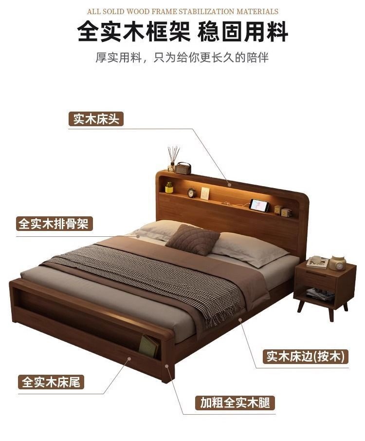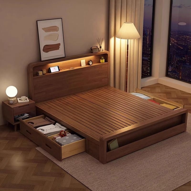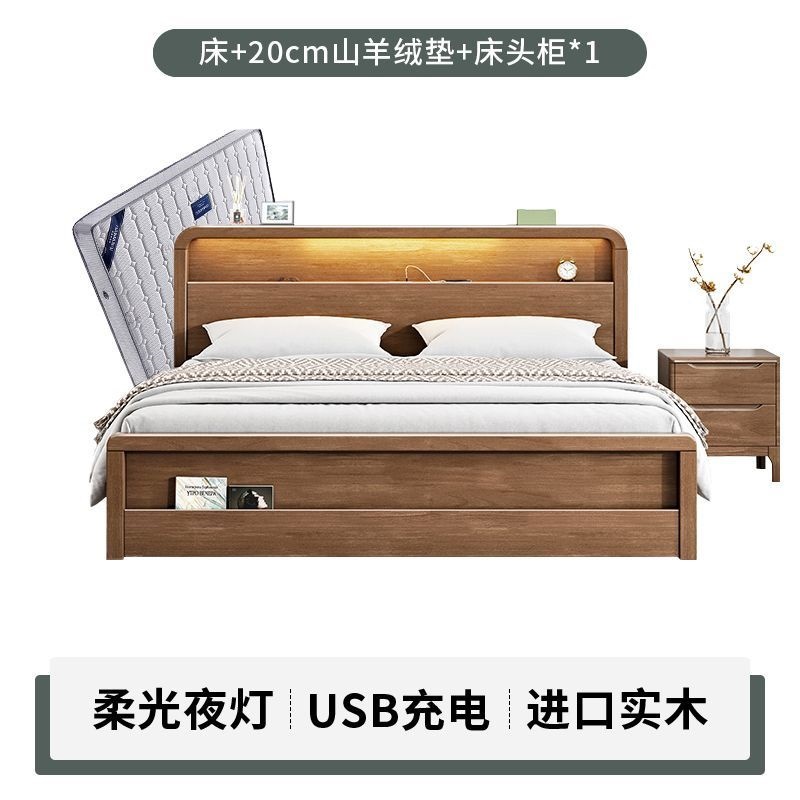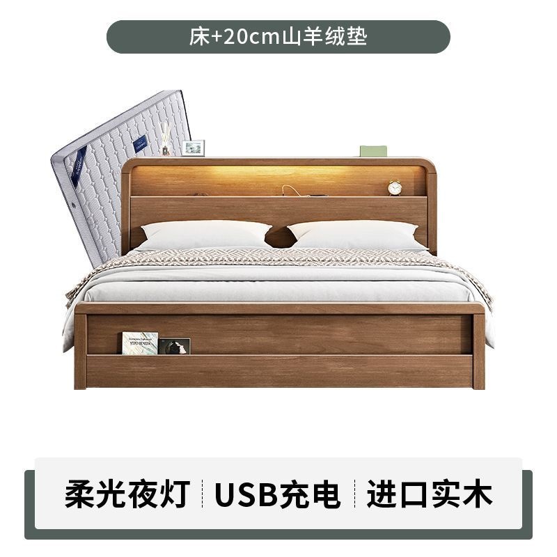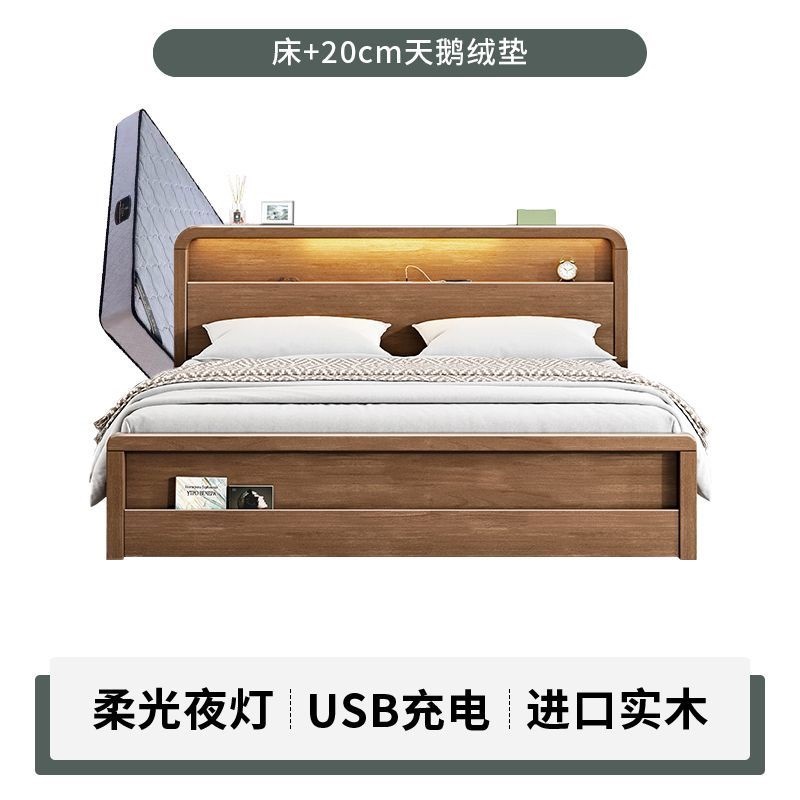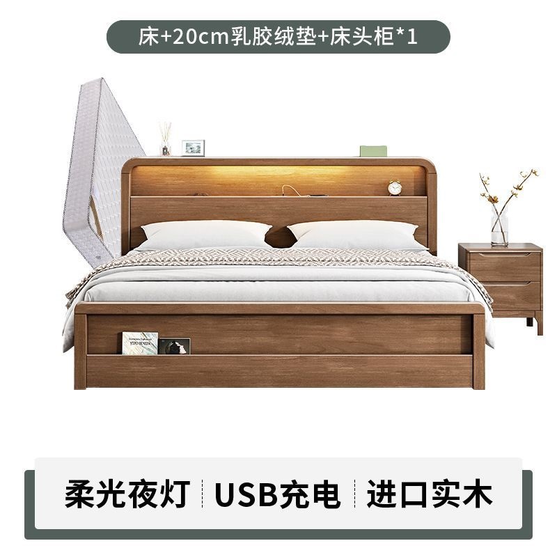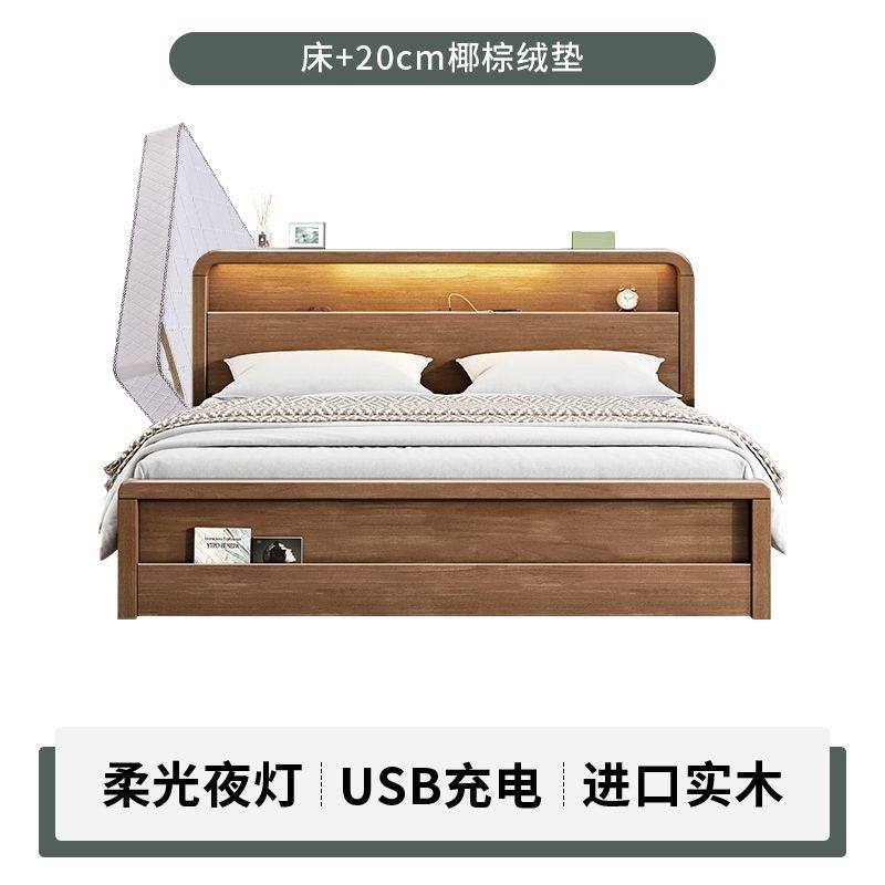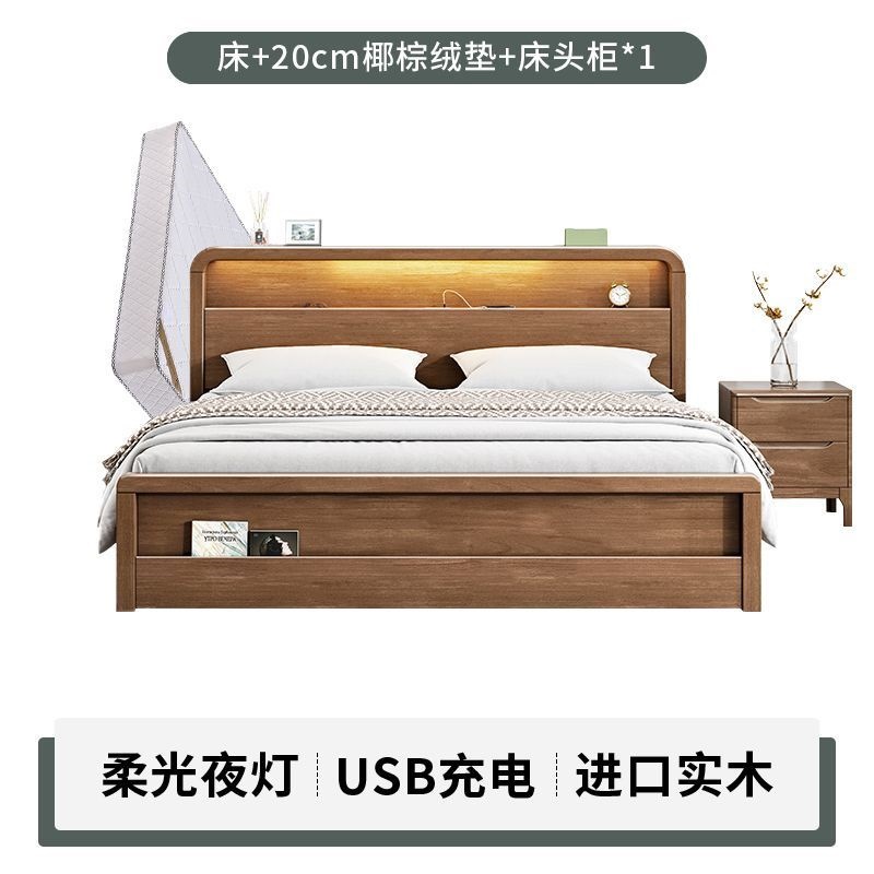 원목 침대 모던 심플 북유럽 호두색 1.8m1.5m 싱글 더블 침대 마스터 침실 웨딩 침대 경제적인 수납 침대