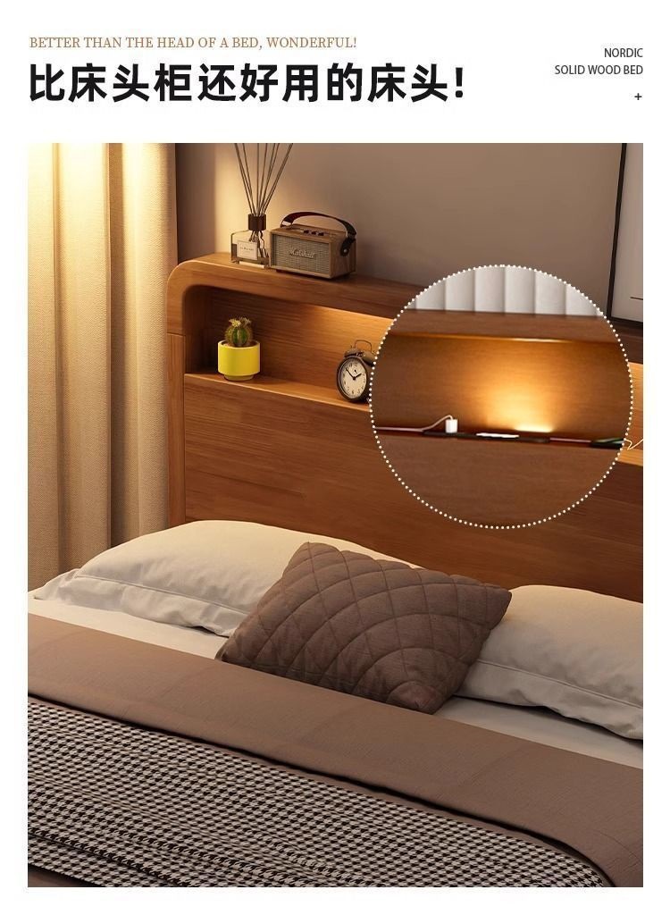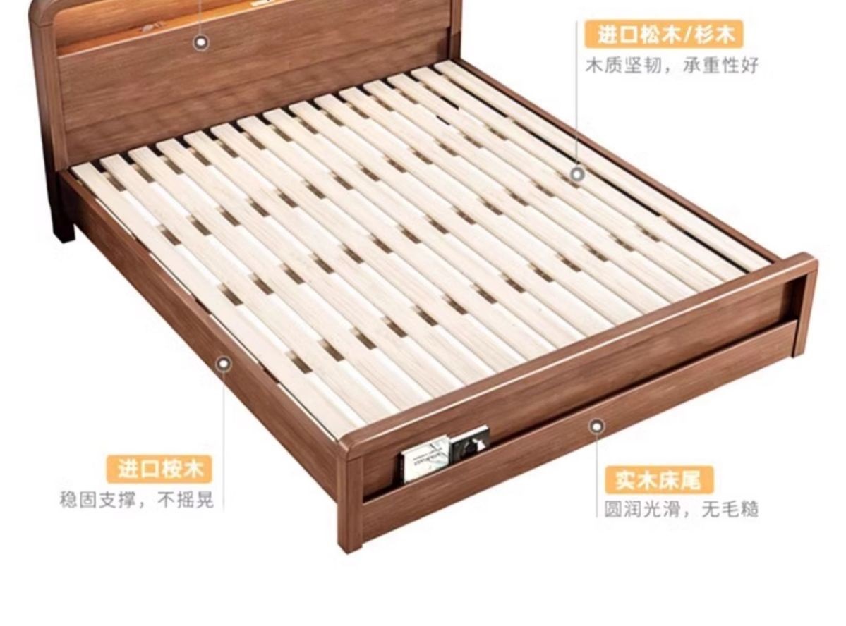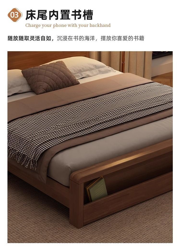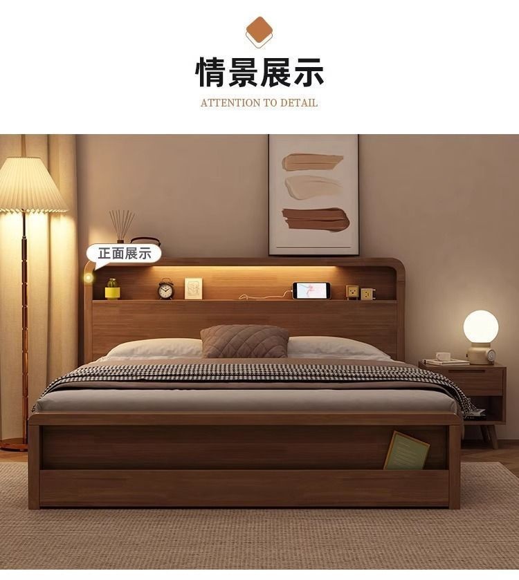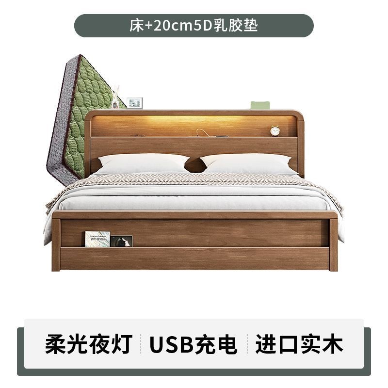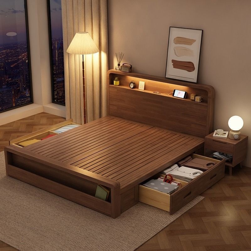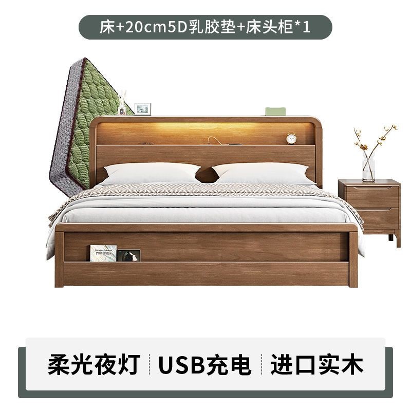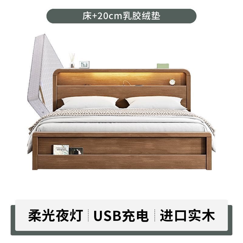 원목 침대 모던 심플 북유럽 호두색 1.8m1.5m 싱글 더블 침대 마스터 침실 웨딩 침대 경제적인 수납 침대