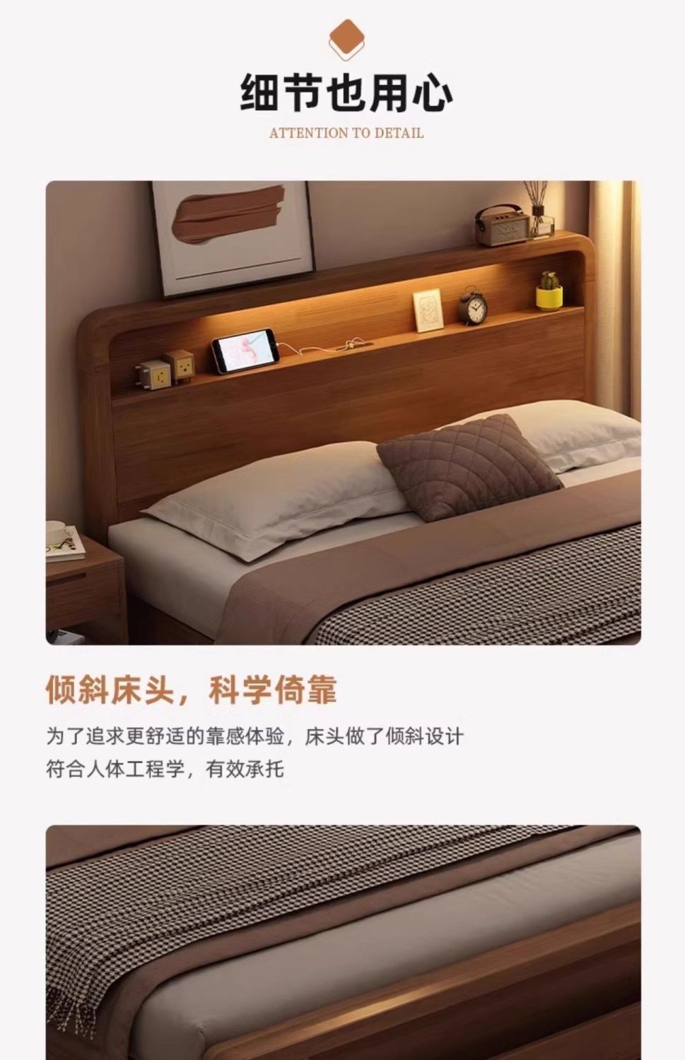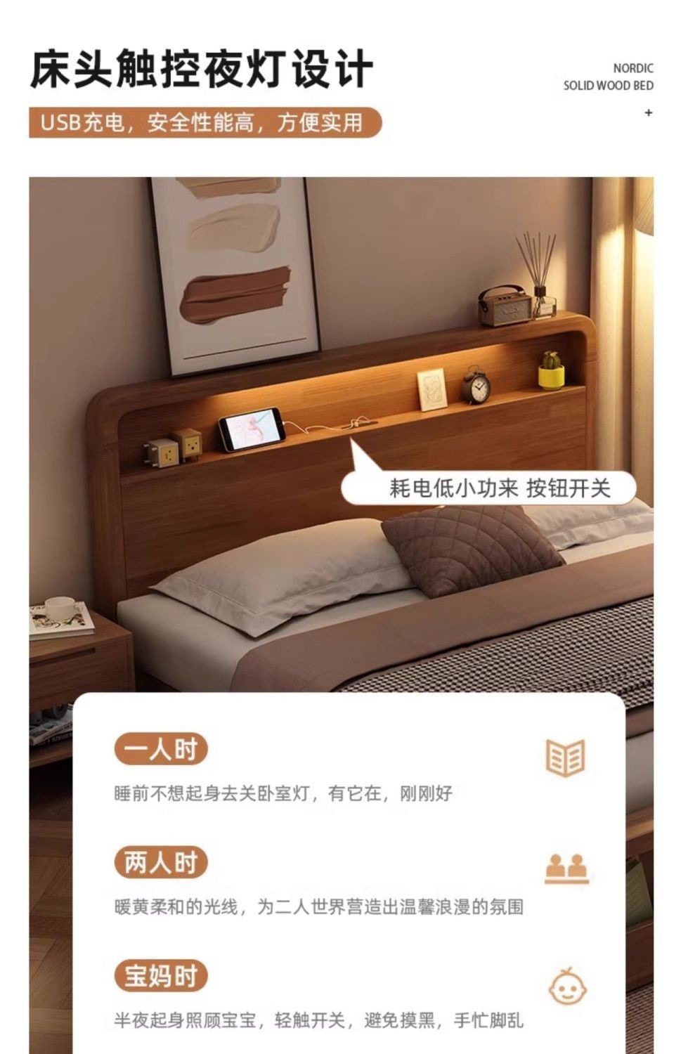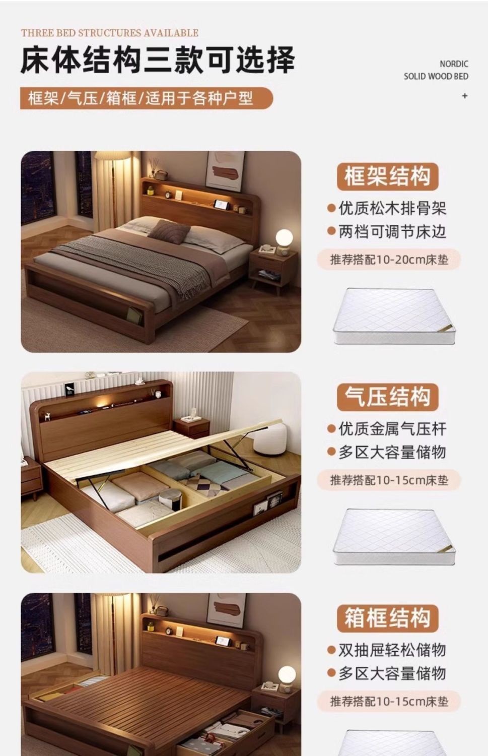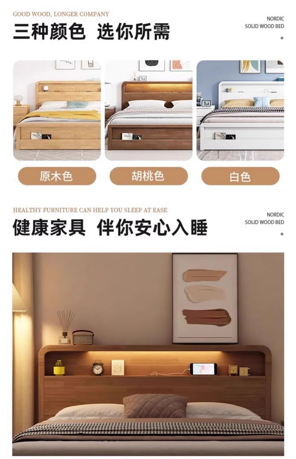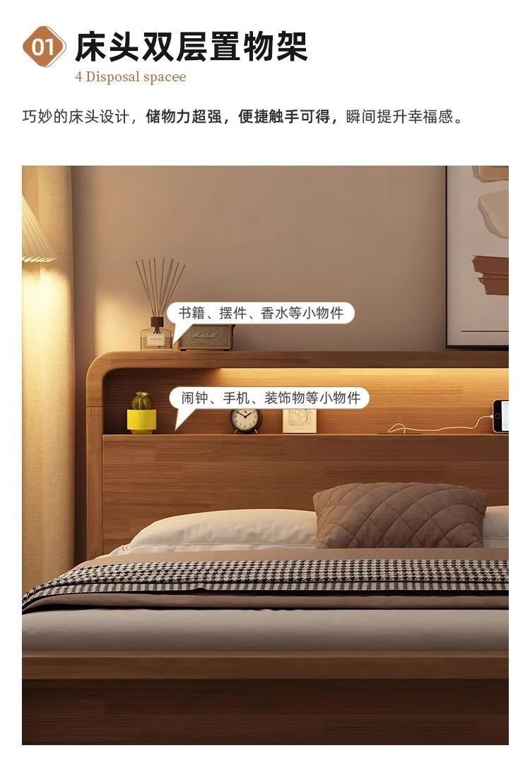 원목 침대 모던 심플 북유럽 호두색 1.8m1.5m 싱글 더블 침대 마스터 침실 웨딩 침대 경제적인 수납 침대