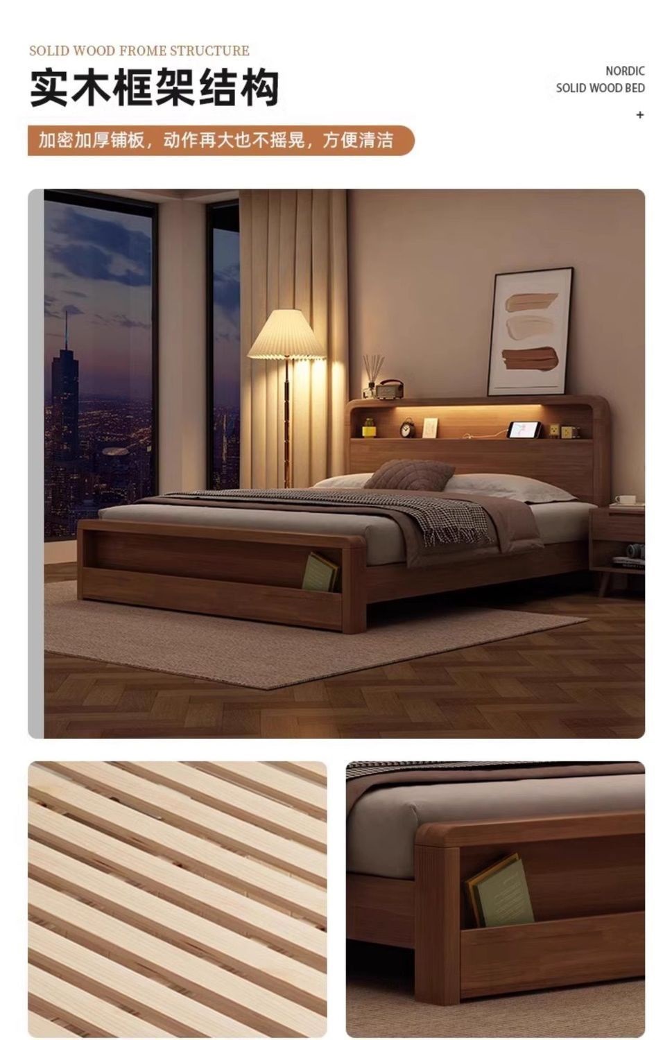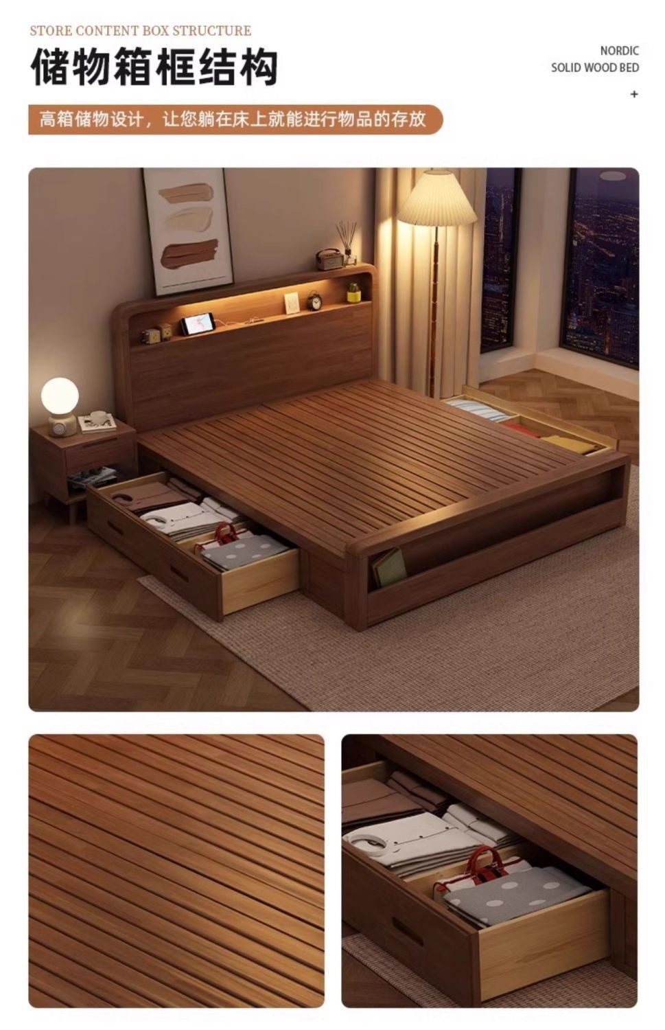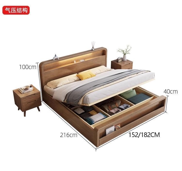 원목 침대 모던 심플 북유럽 호두색 1.8m1.5m 싱글 더블 침대 마스터 침실 웨딩 침대 경제적인 수납 침대스토어 가기