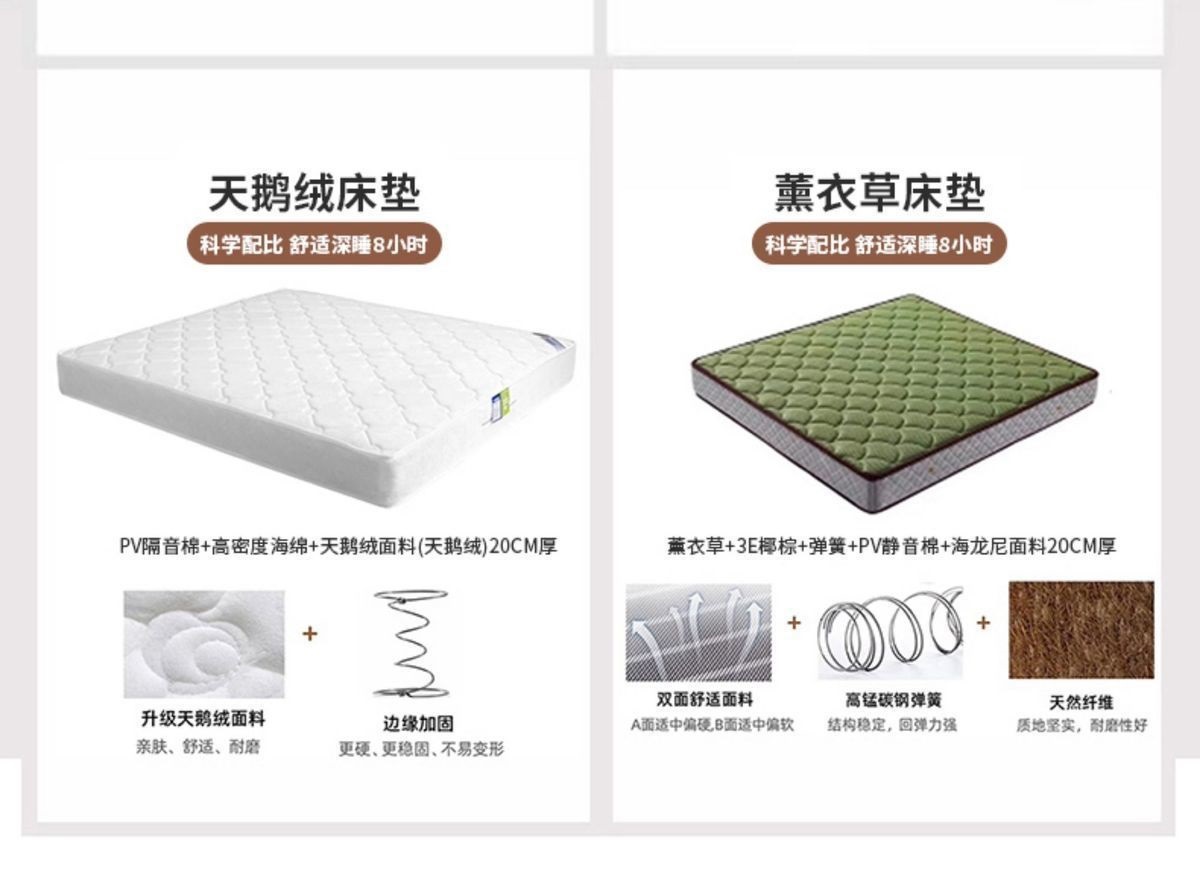 • 침대+20cm 코코넛 야자 스프링 매트리스+침대 옆 테이블*1