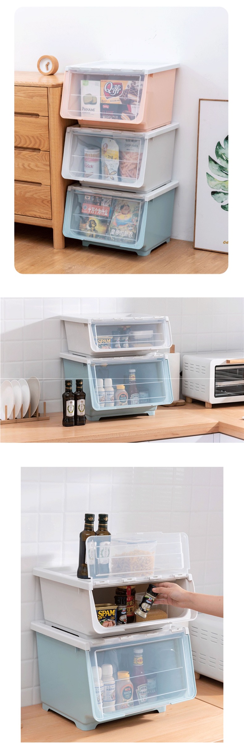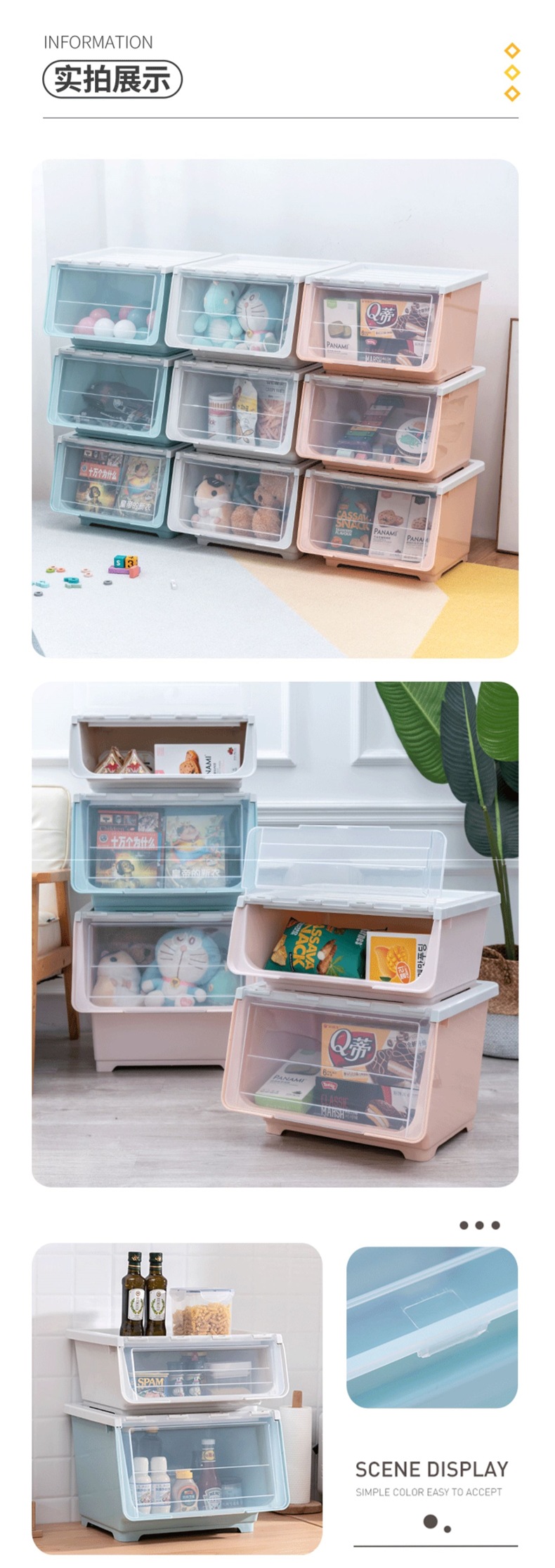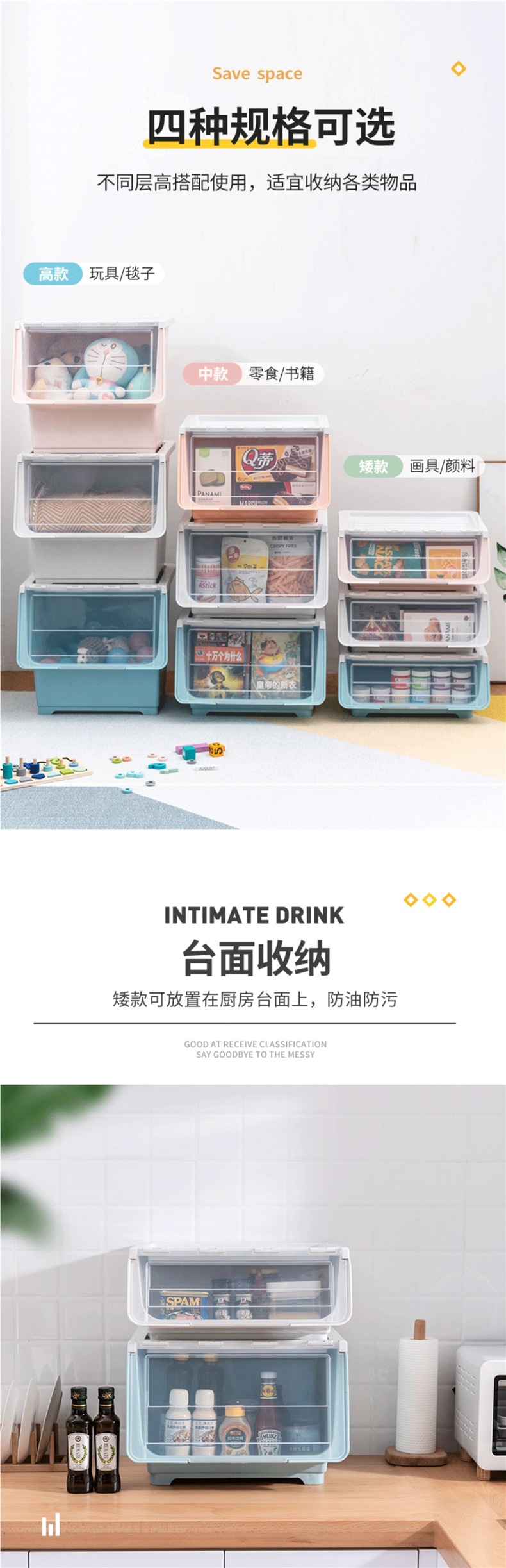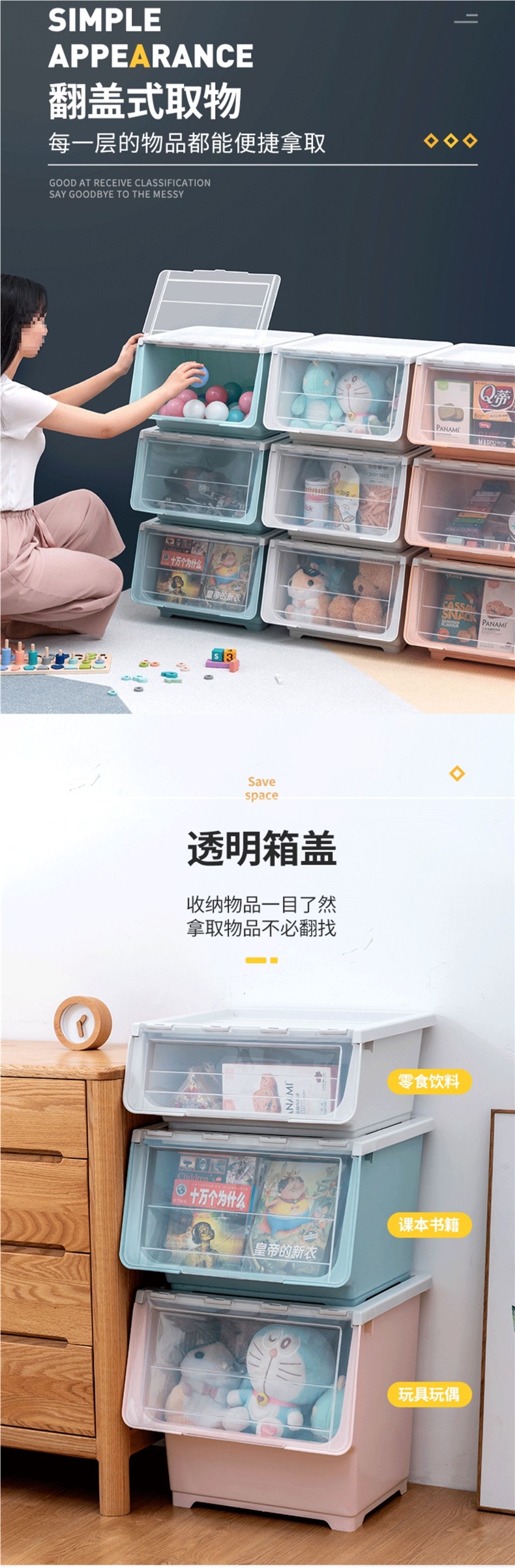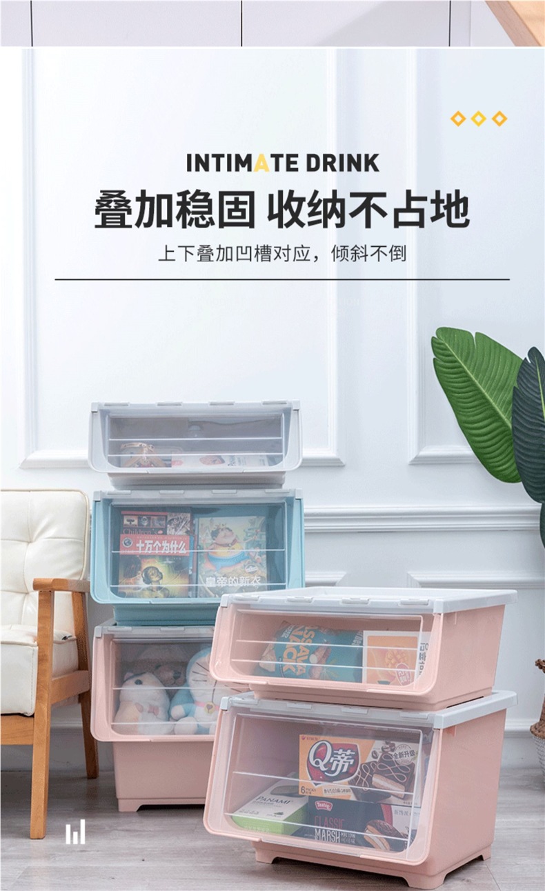 스낵 보관 상자 투명 전면 개방형 플립 탑 가정용 서랍 경사 어린이 장난감 보관 캐비닛 상자 바구니