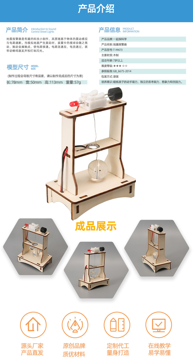 DIY 지진계 경보 모델 초등학생 과학 기술 축제 창조적 인 발명품 수제 수제 재료 과학 교육 보조 장치