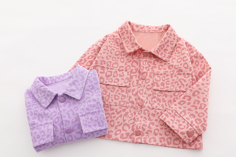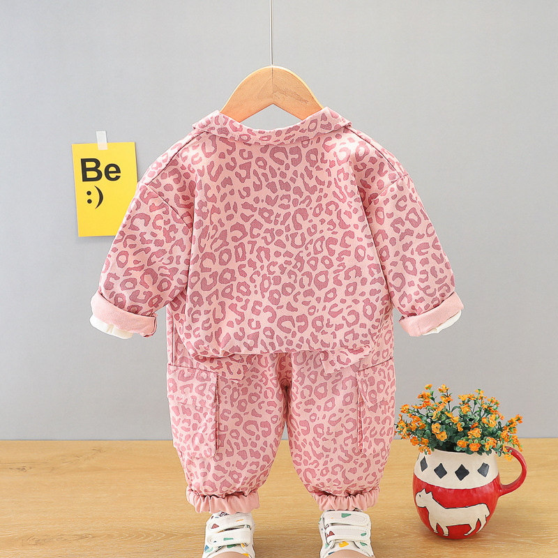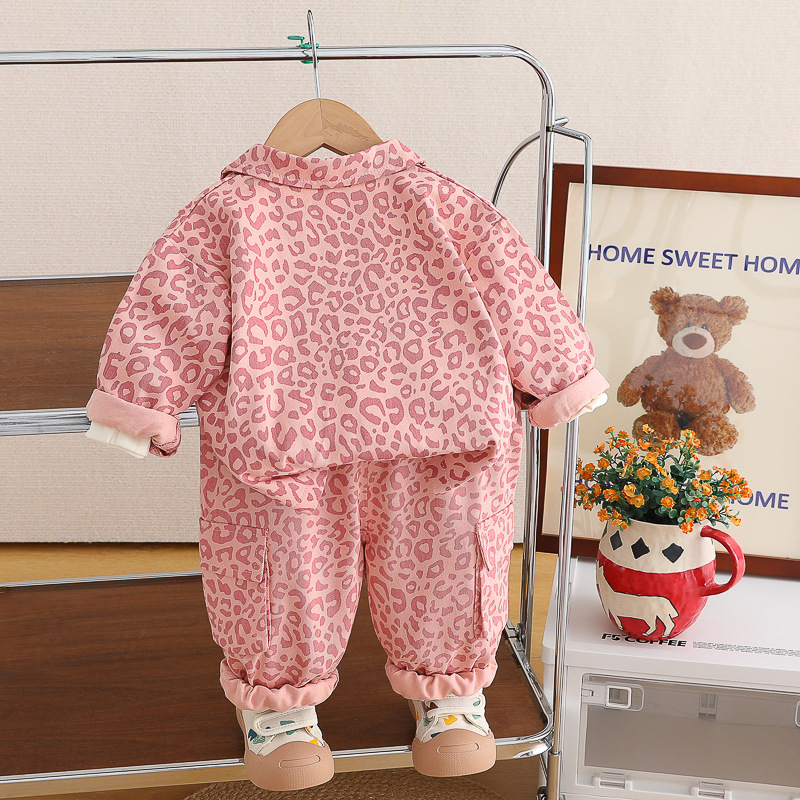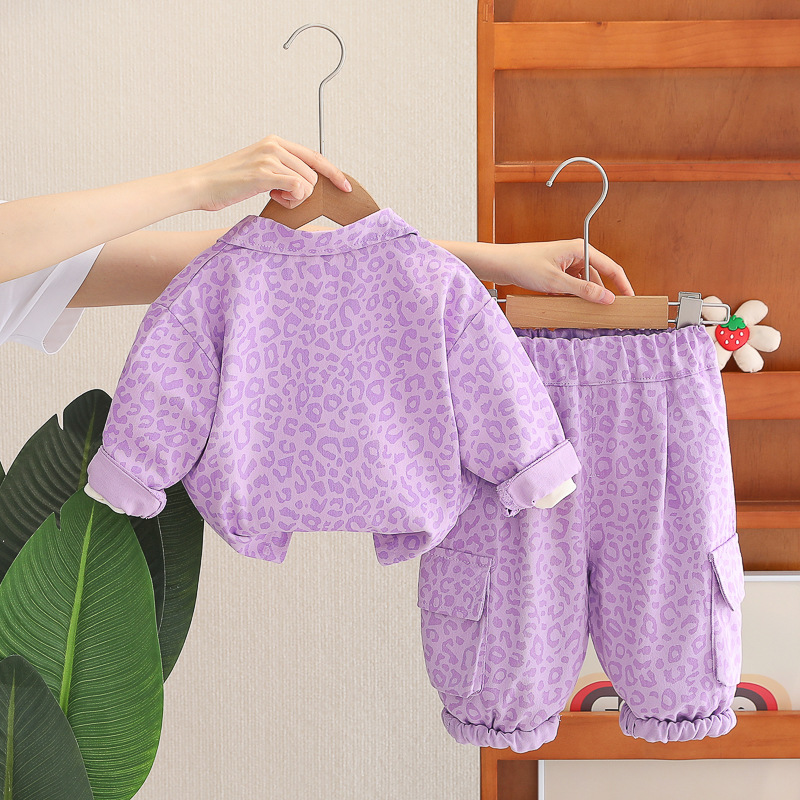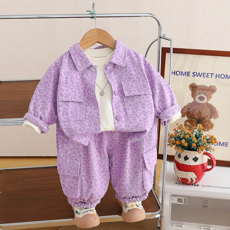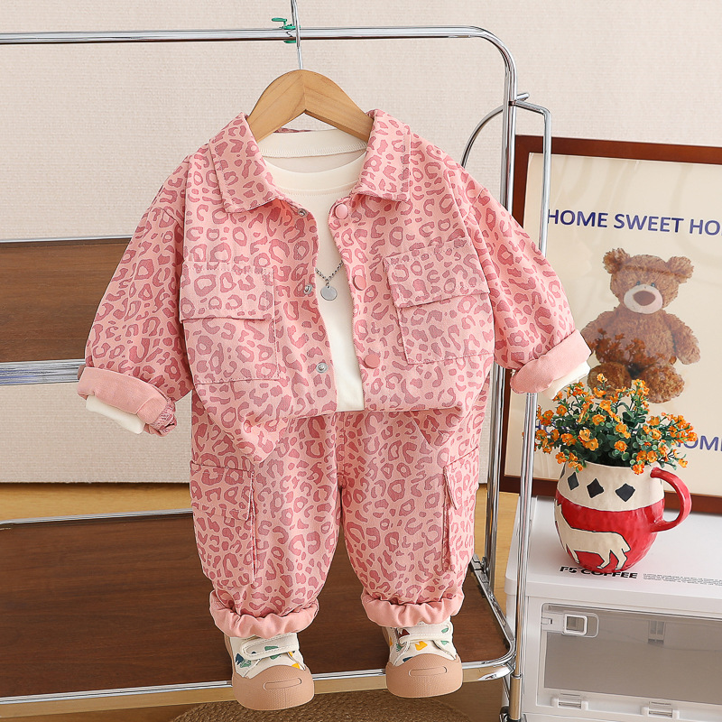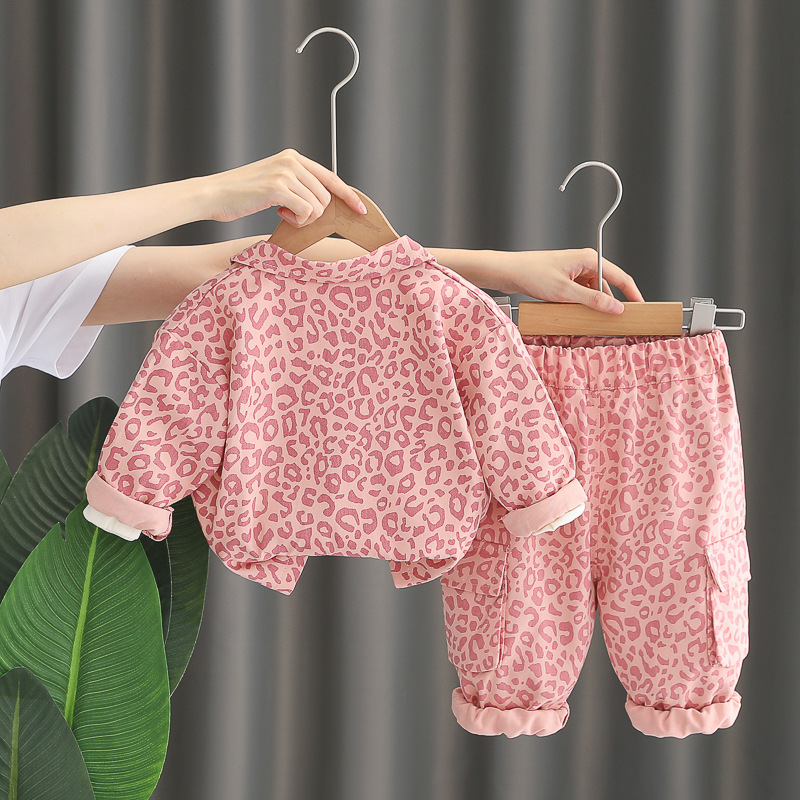 여자 가을 스타일 카디건 정장 2025 봄, 가을 새로운 스타일 여자 아기 표범 무늬 옷깃 재킷 3 피스 유행 세트스토어 가기