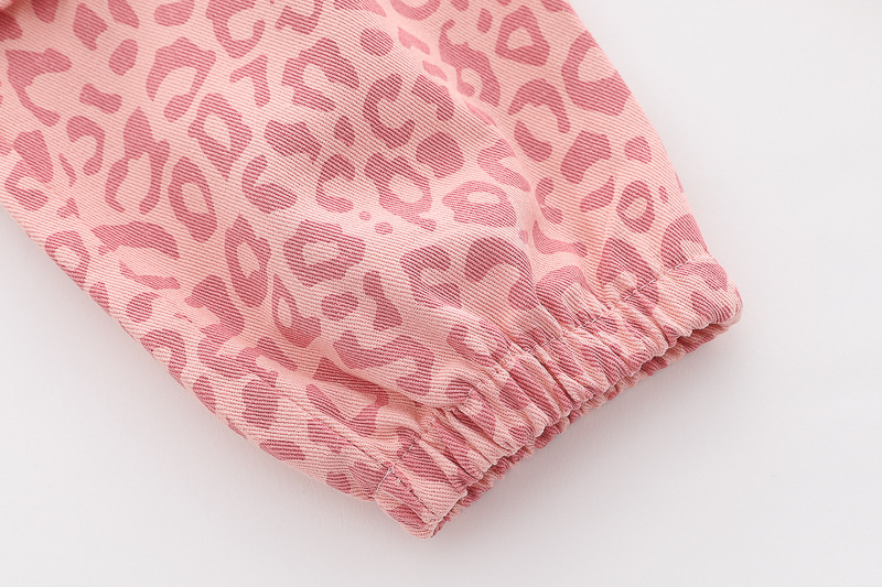 여자 가을 스타일 카디건 정장 2025 봄, 가을 새로운 스타일 여자 아기 표범 무늬 옷깃 재킷 3 피스 유행 세트