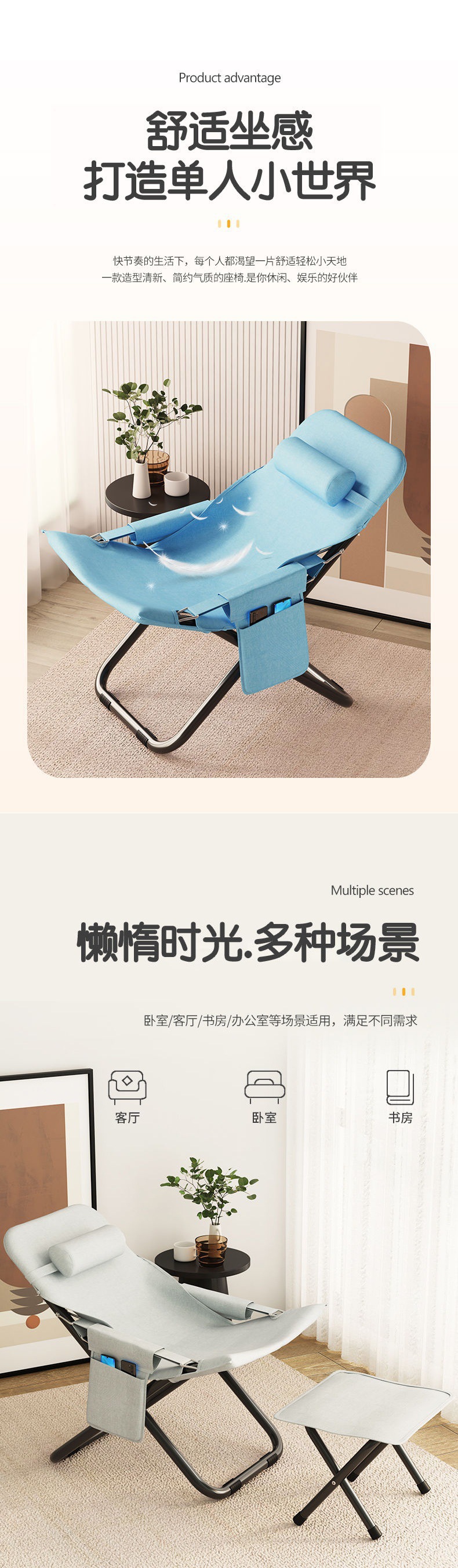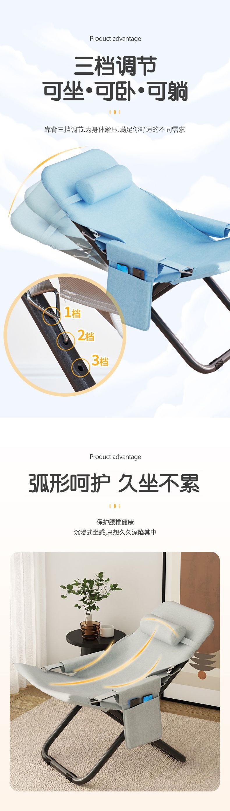 낮잠 안락 의자, 가정용 접이식 의자, 여름 레저 간단한 등받이 의자, 소형 휴대용 게으른 의자, 발코니 낮잠 침대스토어 가기