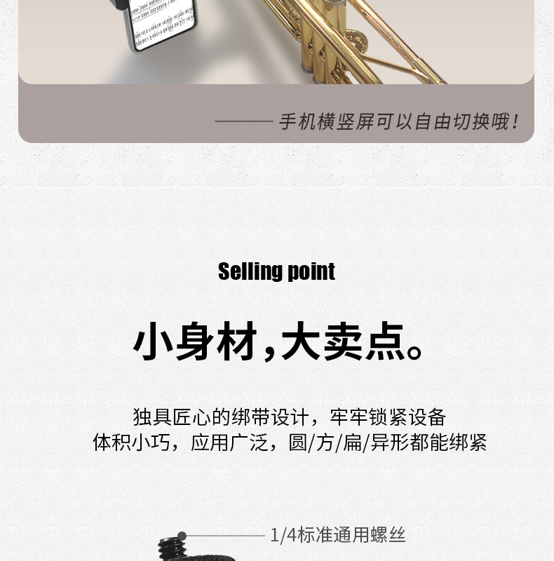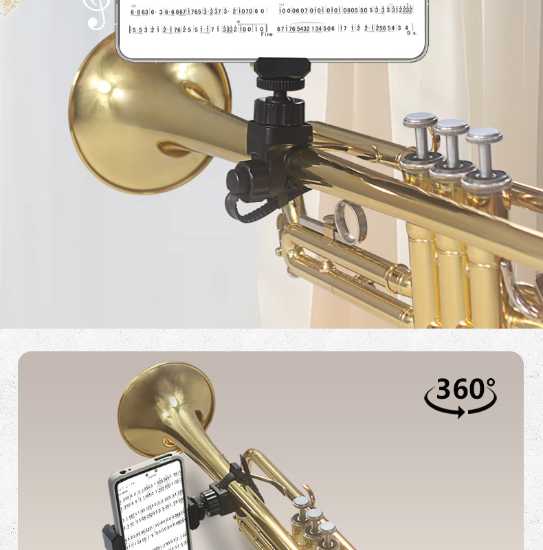 360도 로프 고정 클립 휴대폰 악기 음악 시트 스탠드 라이브 방송 셀카 사진 회전 GoPro 자전거 클립