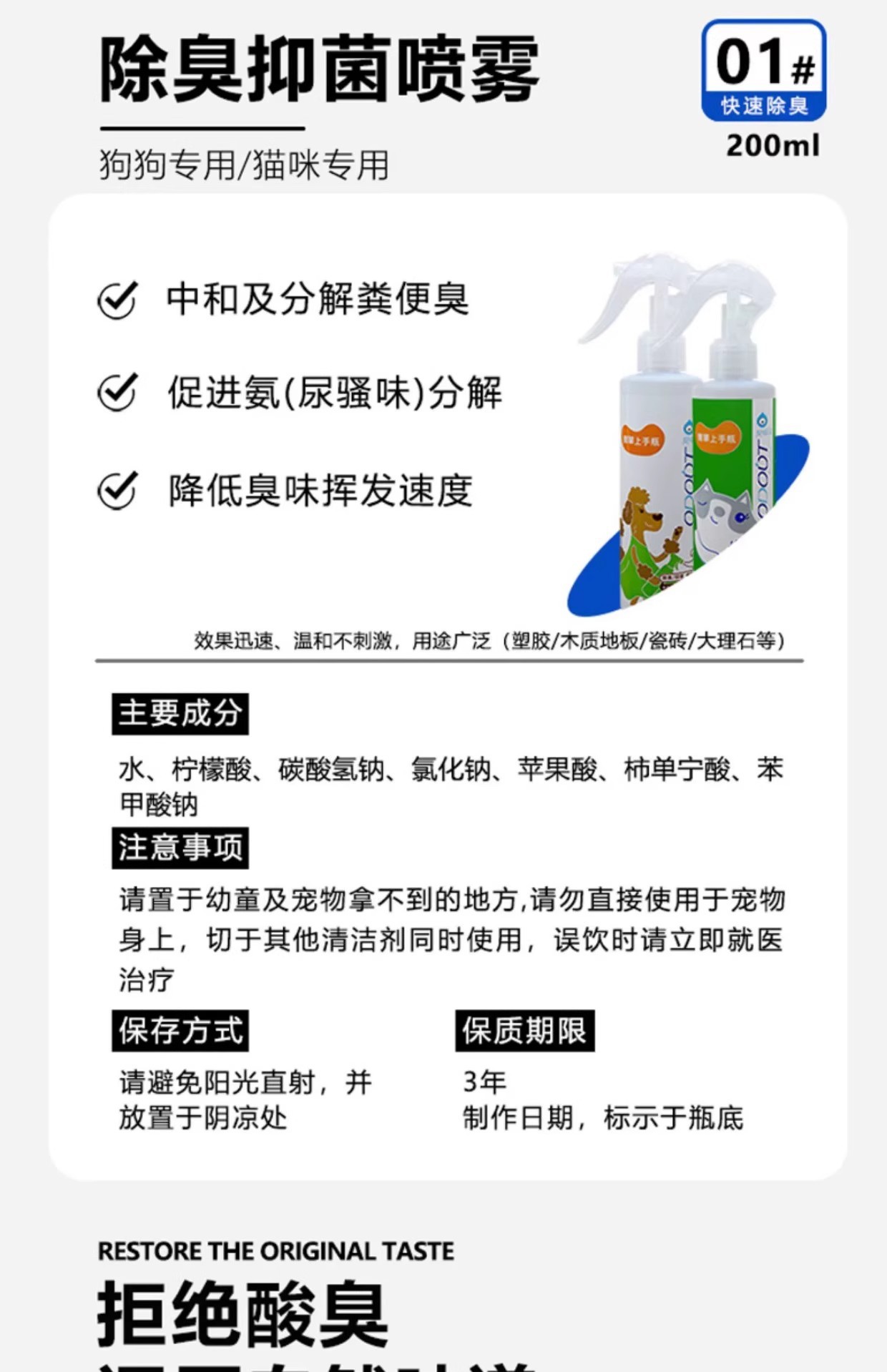 악취 제거 애완동물 청소제 고양이 소변 탈취제 강아지 탈취제 실내 바닥 환경 항균 특수 탈취제