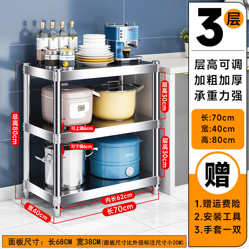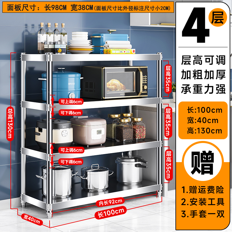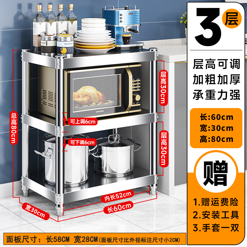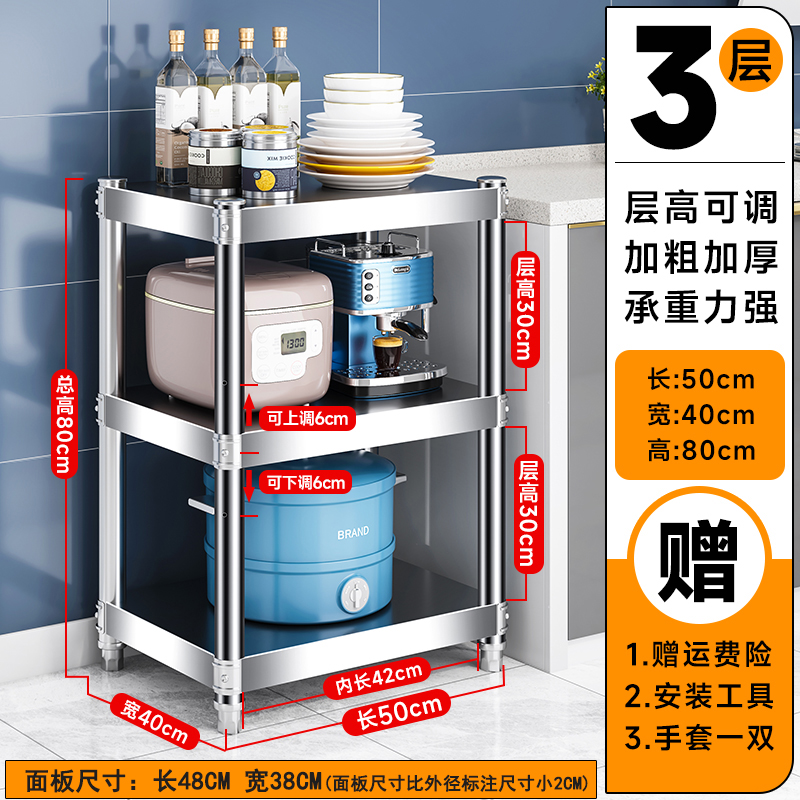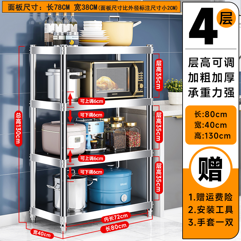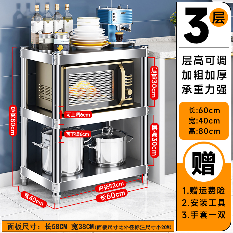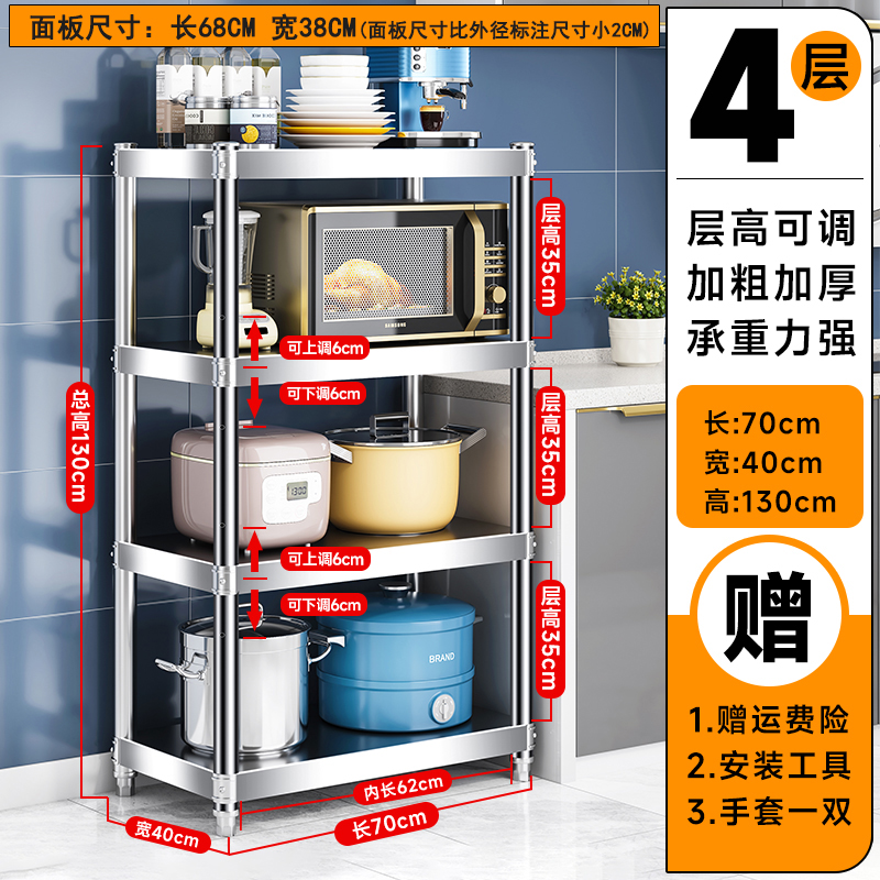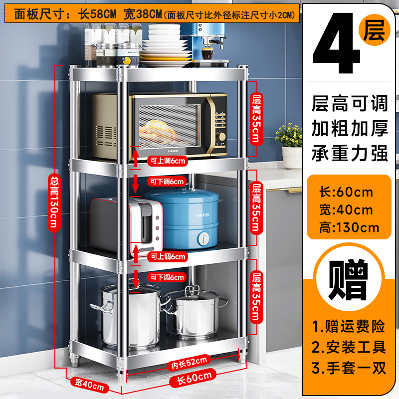 주방 랙 캐비닛 스테인레스 스틸 선반 캐비닛 다기능 스토리지 가정용 스토브 랙 바닥 스탠딩 전자 레인지 랙스토어 가기