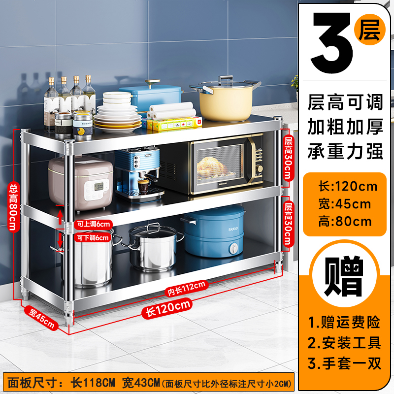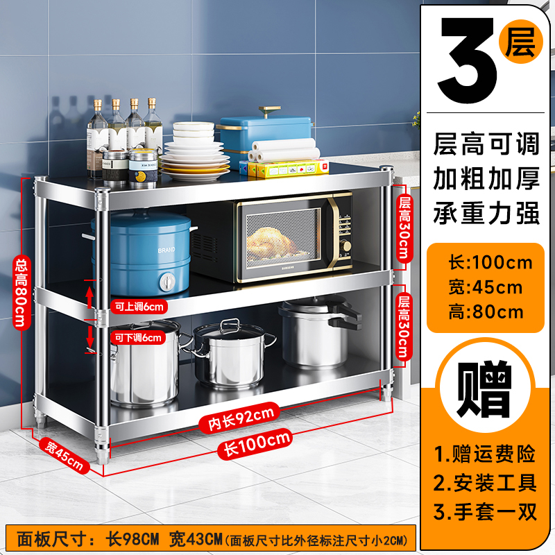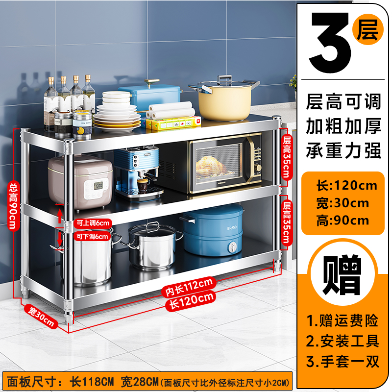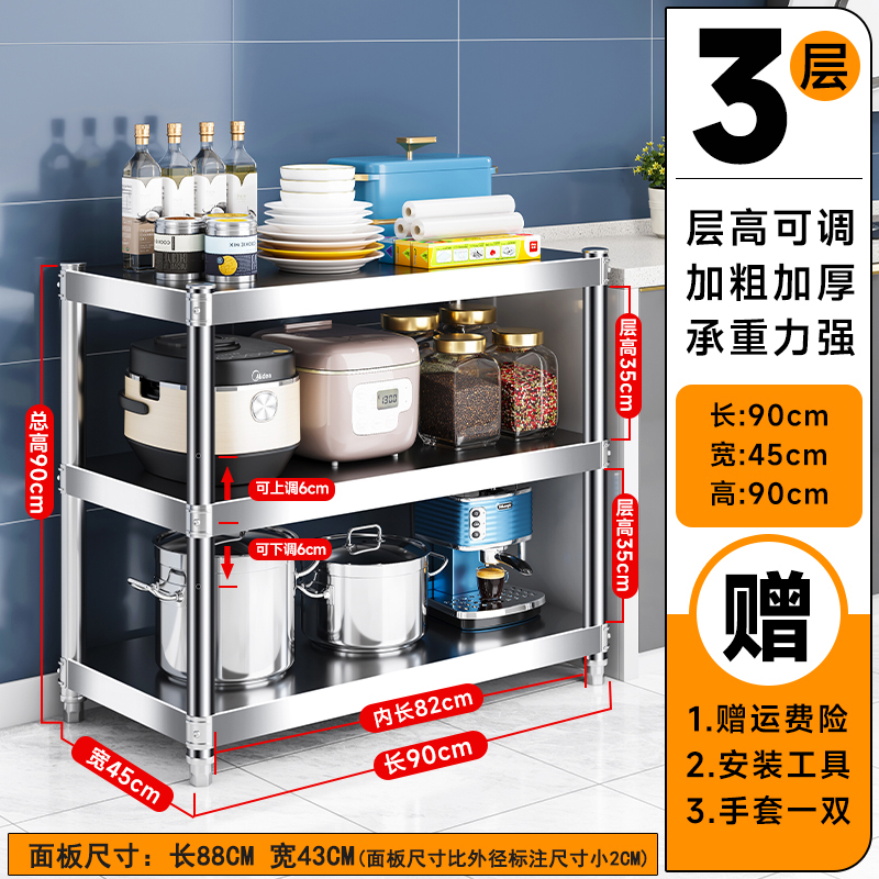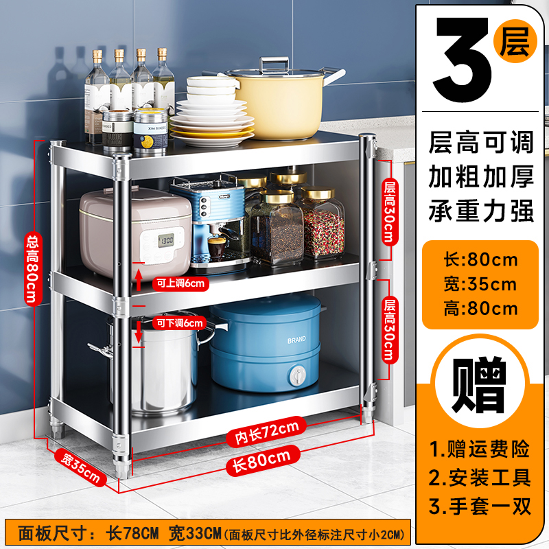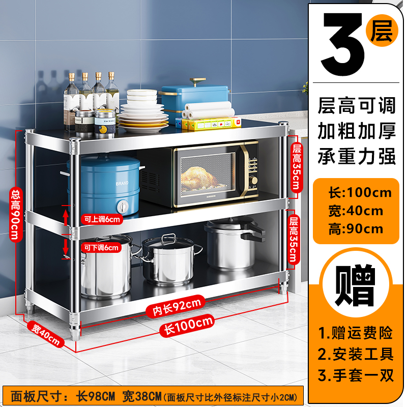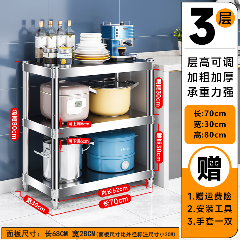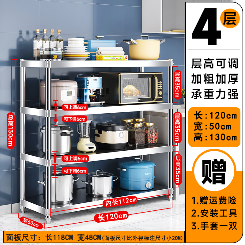 주방 랙 캐비닛 스테인레스 스틸 선반 캐비닛 다기능 스토리지 가정용 스토브 랙 바닥 스탠딩 전자 레인지 랙스토어 가기