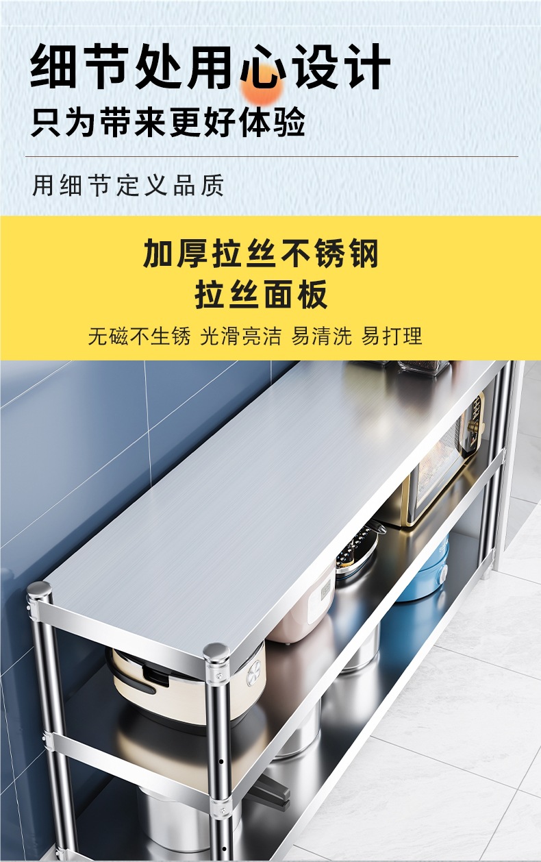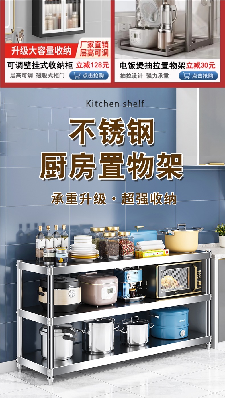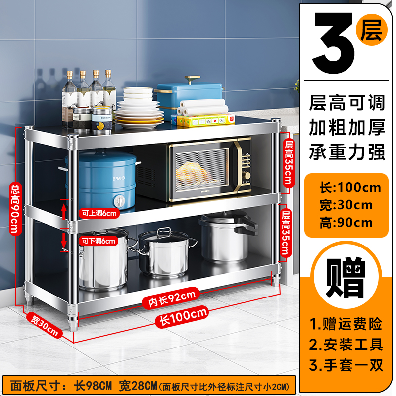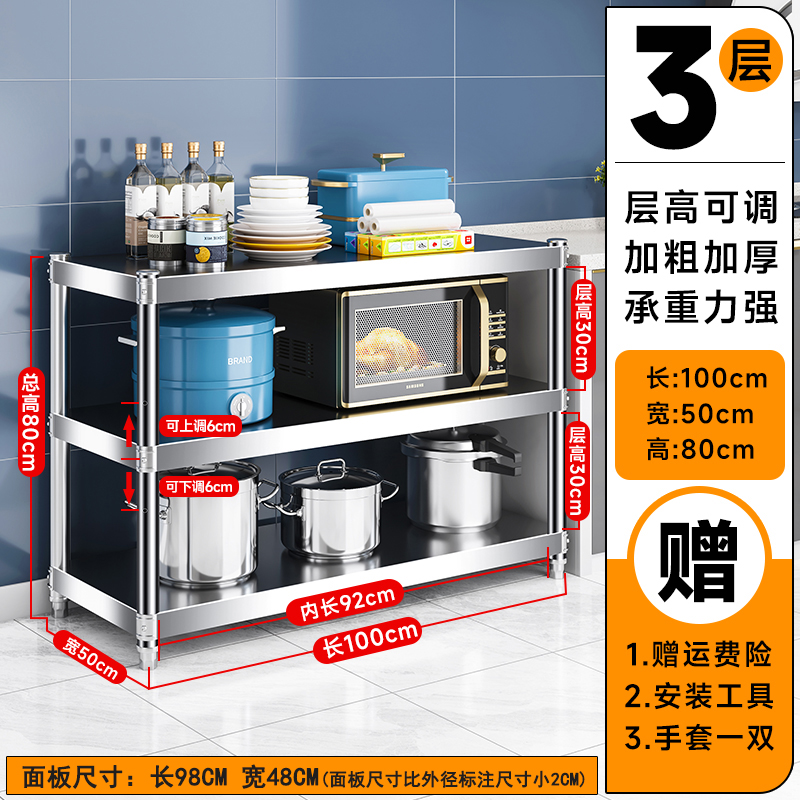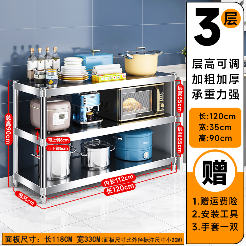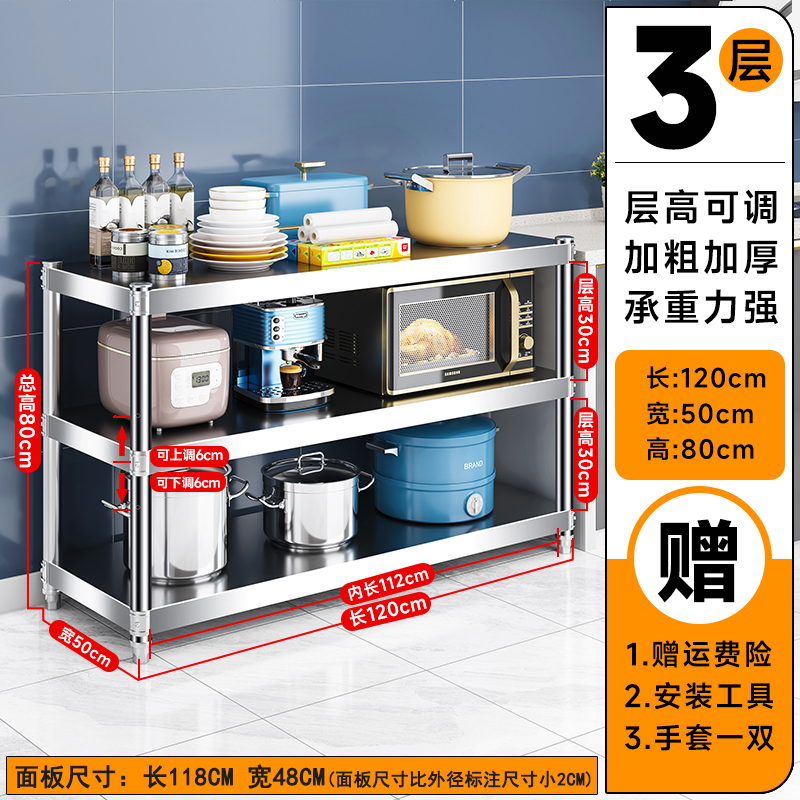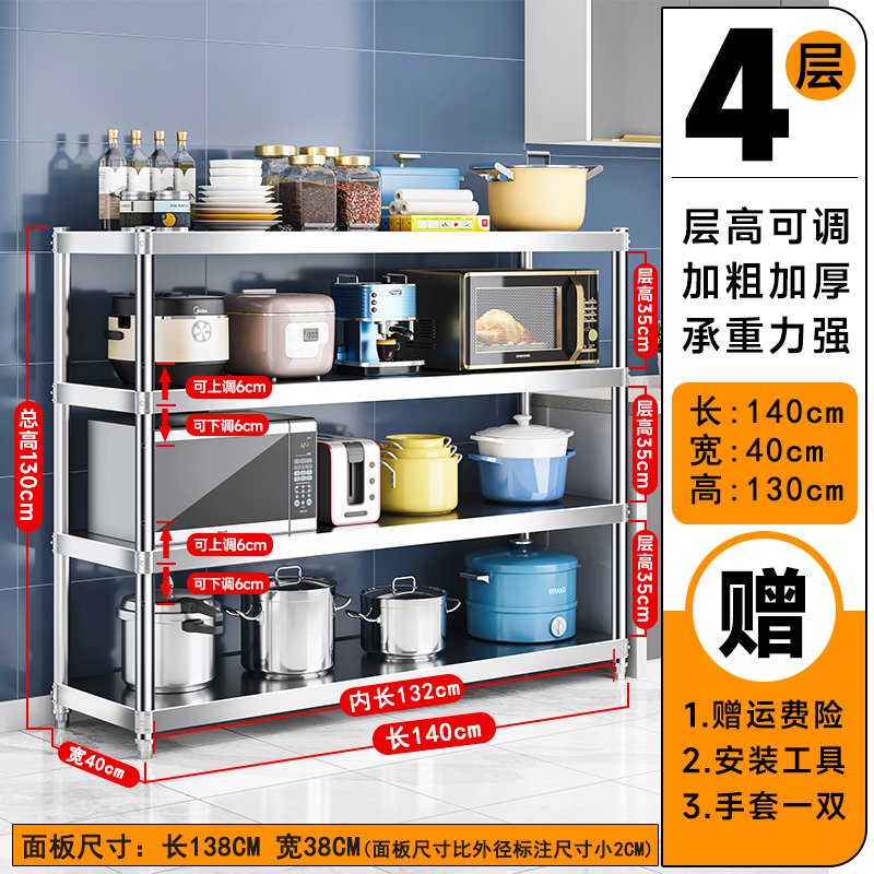 주방 랙 캐비닛 스테인레스 스틸 선반 캐비닛 다기능 스토리지 가정용 스토브 랙 바닥 스탠딩 전자 레인지 랙스토어 가기