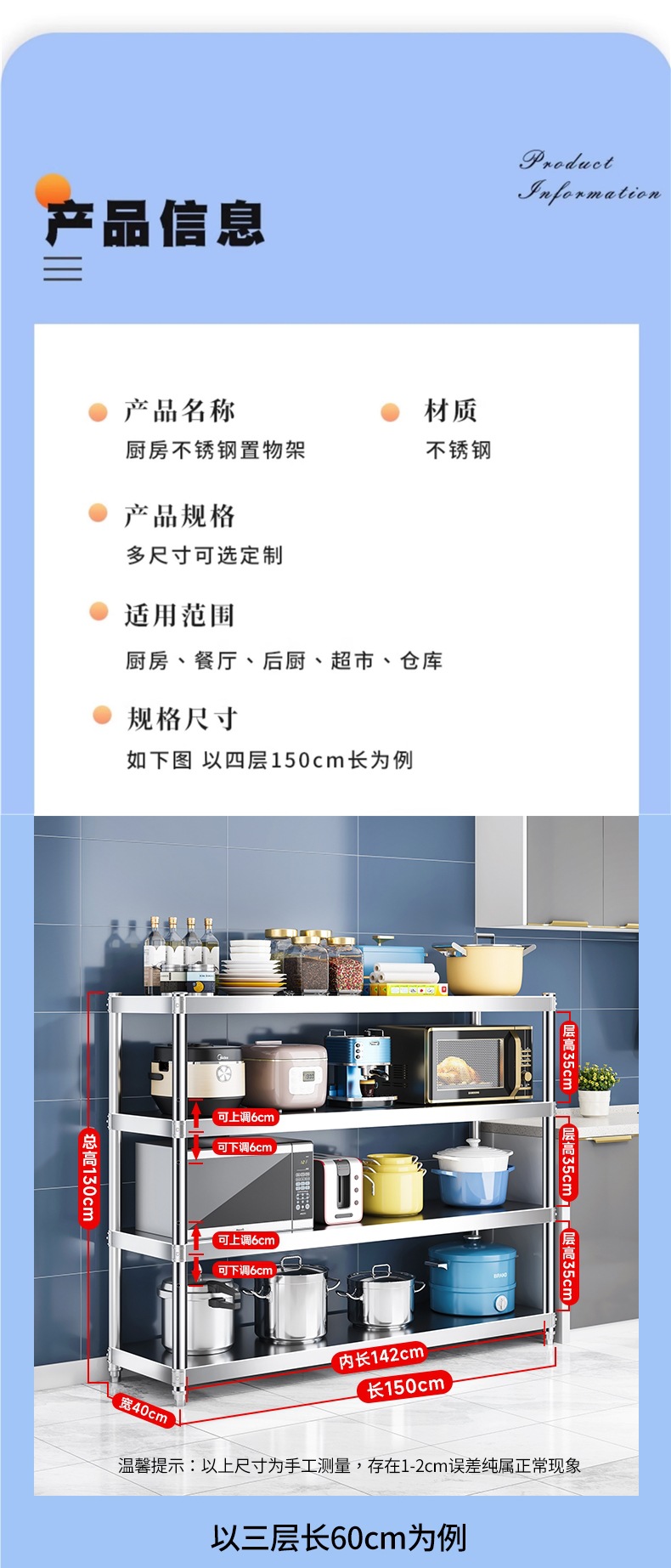 • 길이 60cm, 폭 40cm, 높이 130cm, 4단, 두께 강화 ♜♜